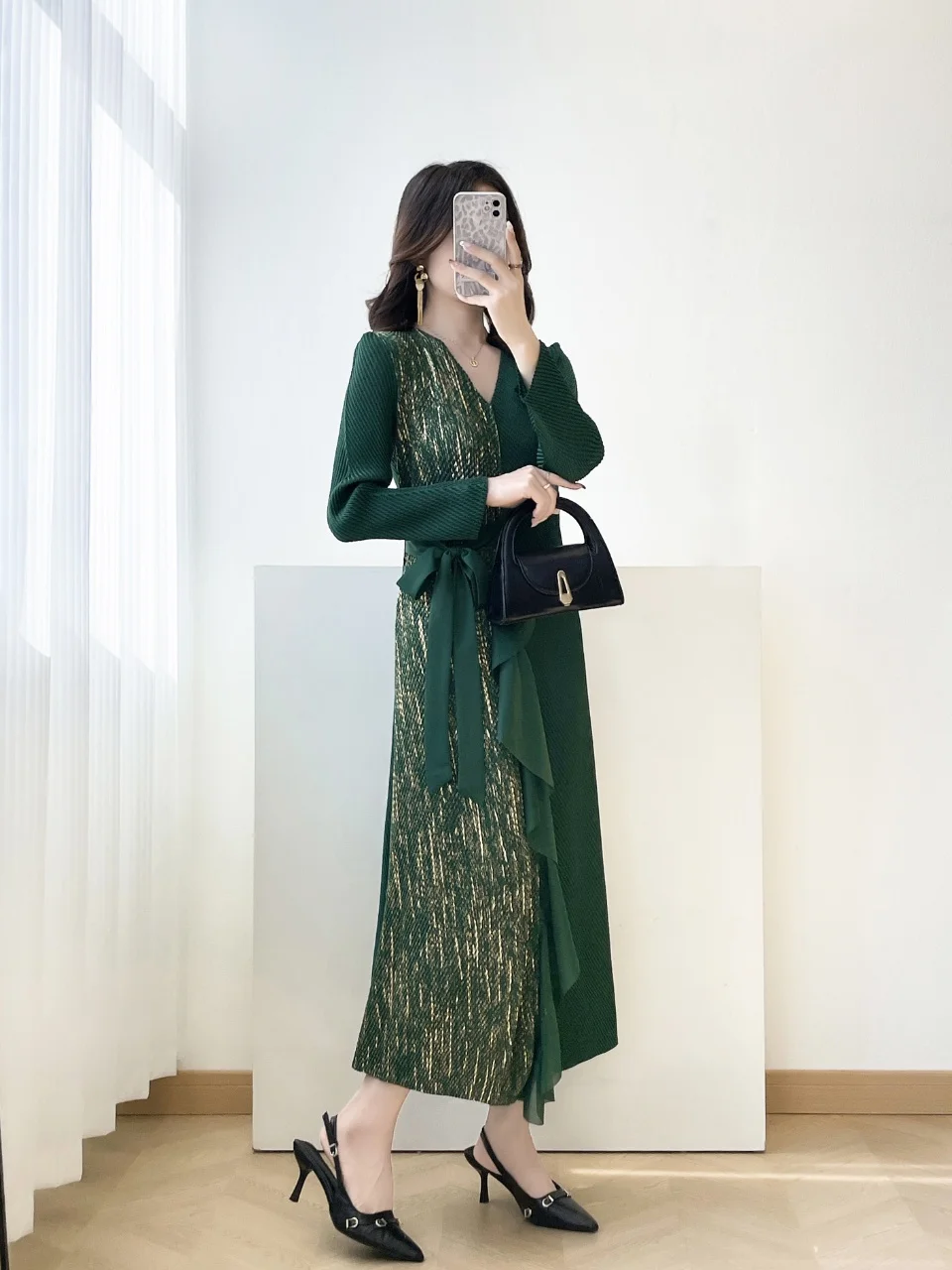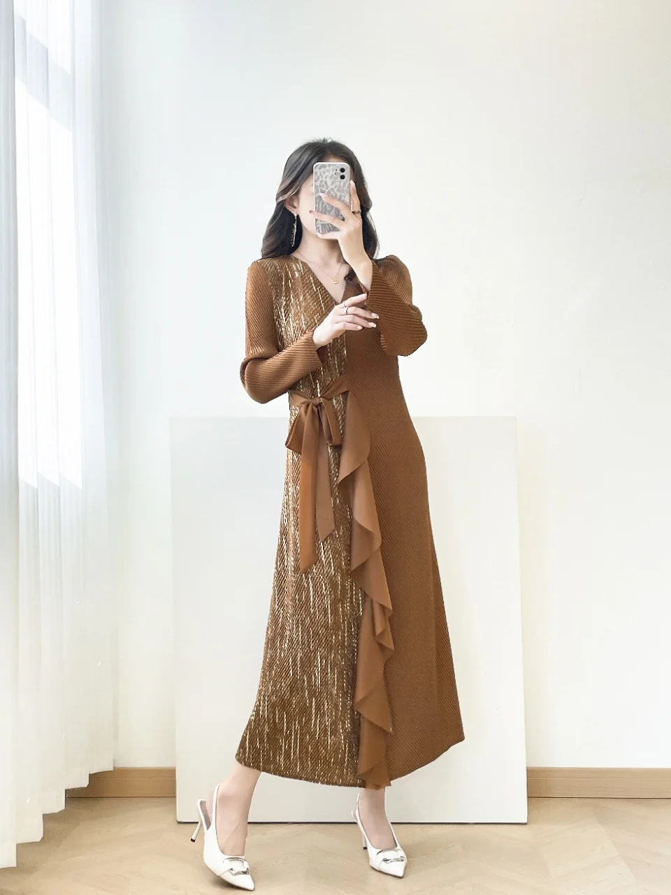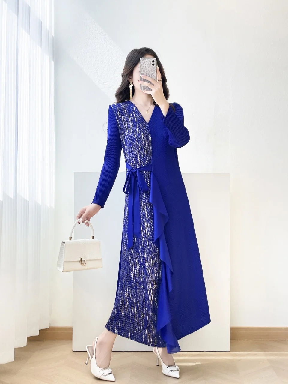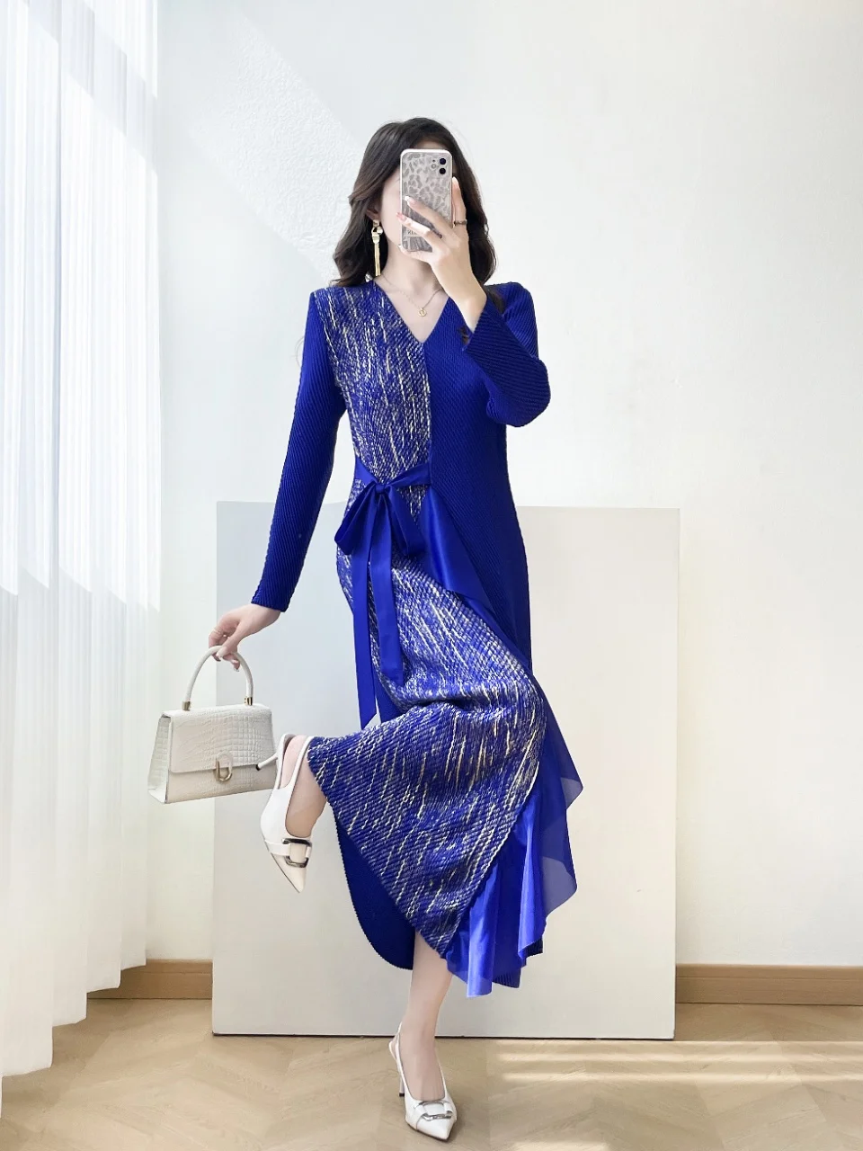 2026 Latest Dress: Luxury Elegant Pleated Dress + Asymmetrical Ruffle & Bow Waist Detail Women's Dress