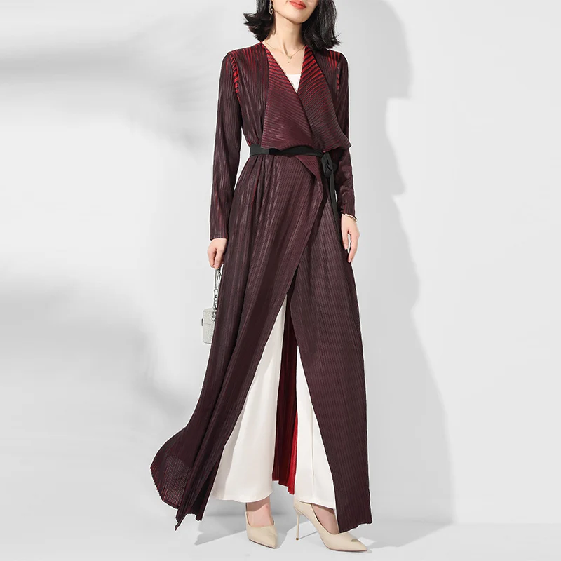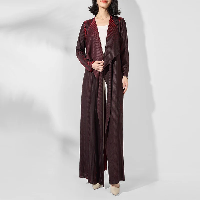 Free-Size High-End Polyester Pleated Long Coat Dress for Women Autumn Season Loose Open Abaya Muslim Style From Dubai Abaya