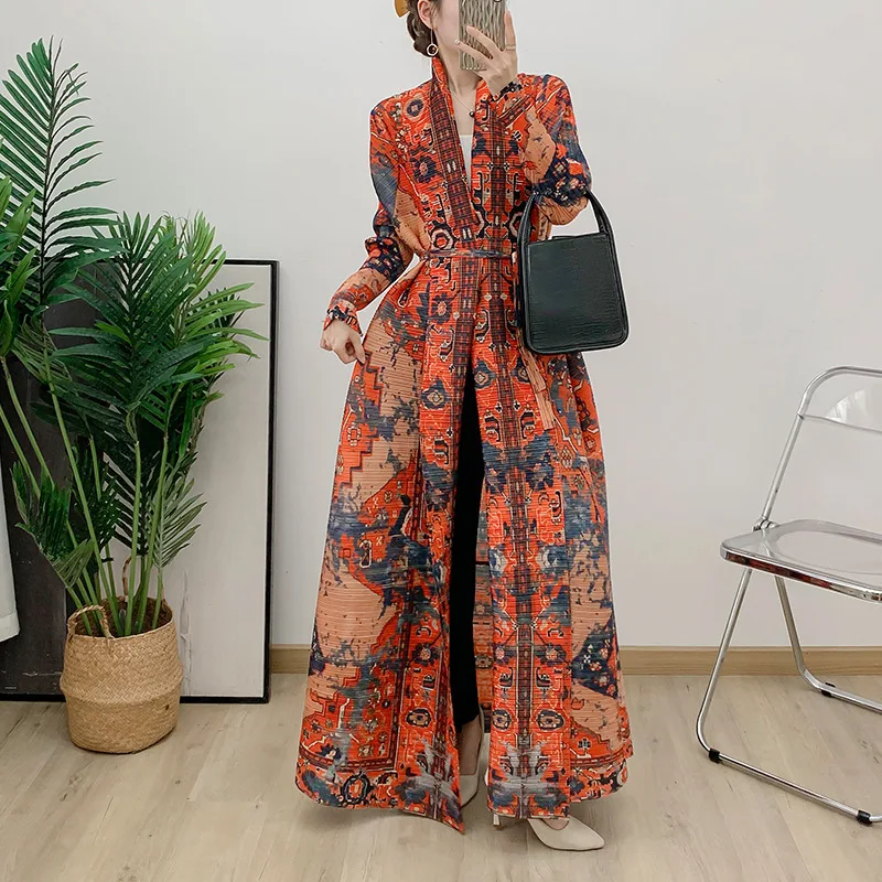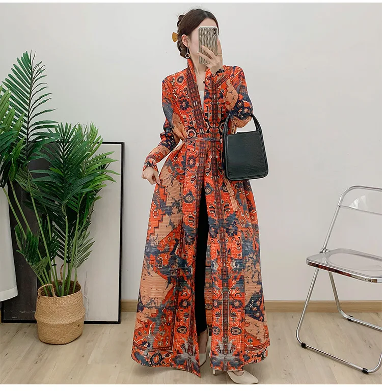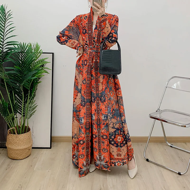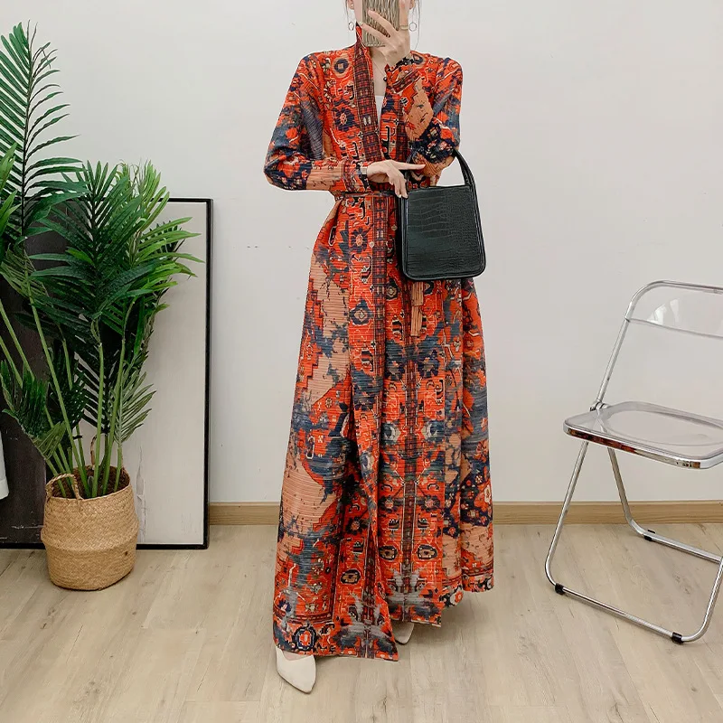 Direct From the Factory New Women's Pleated Abaya High Quality Loose Casual Muslim Elegant Abaya Lapel Printed Coat