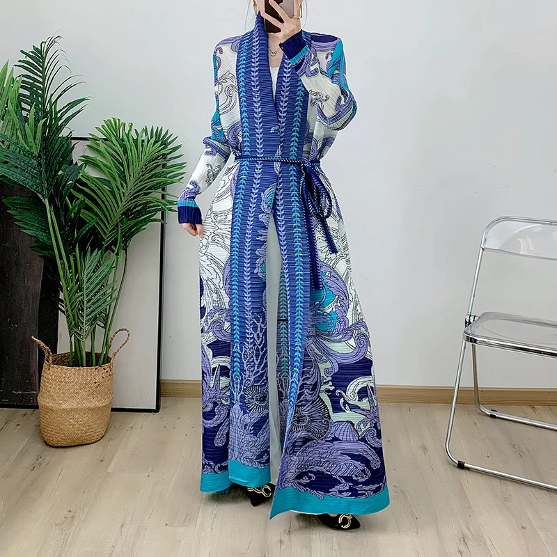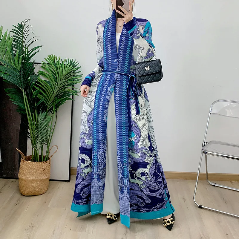 Middle East Arab Abaya Latest Elastic Printed Casual Coat Ladies Elegant Ababy Miyake Pleated Dress Women's Robes