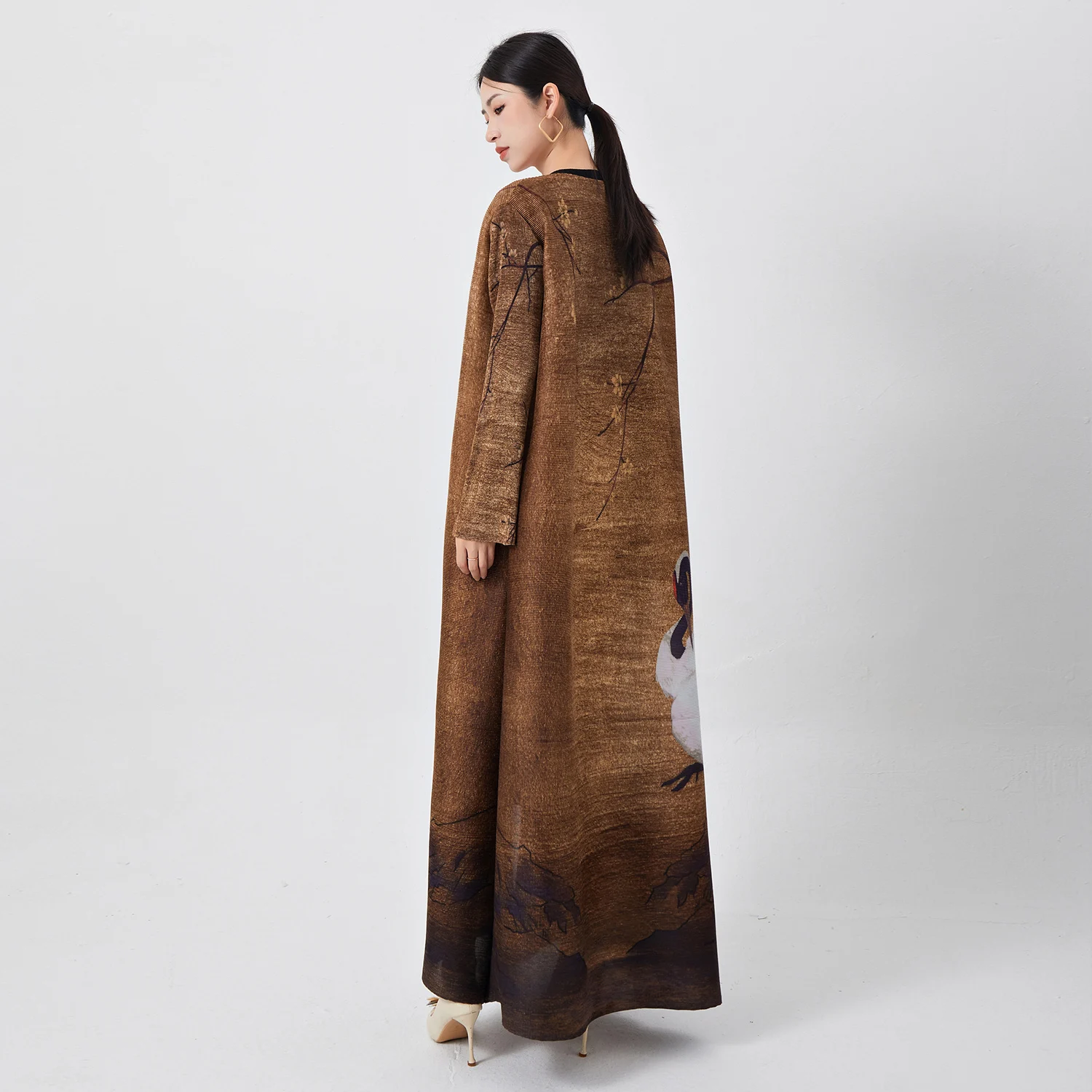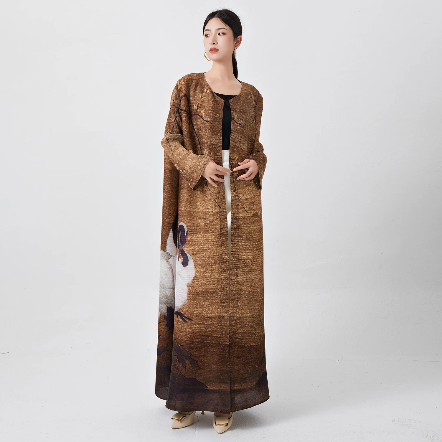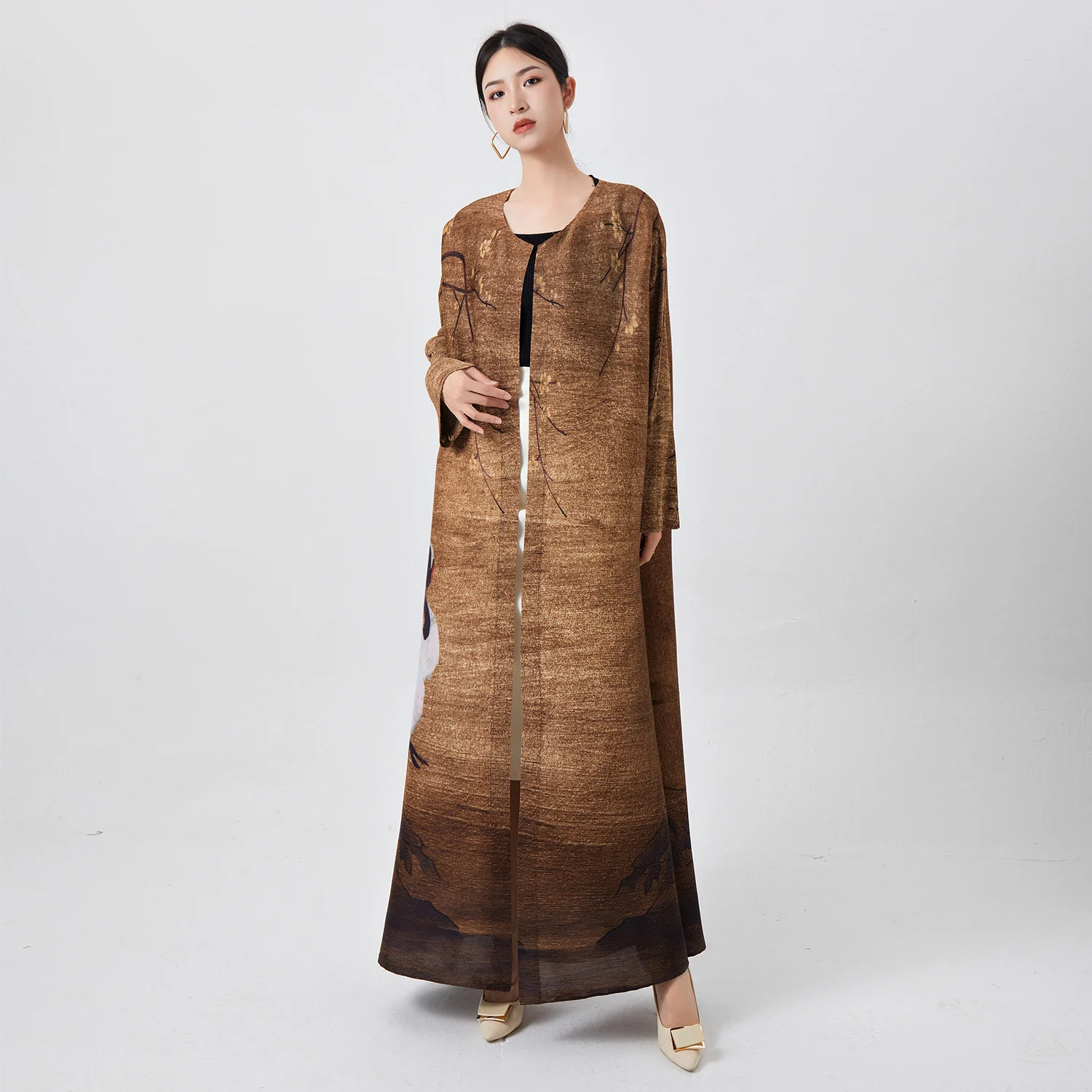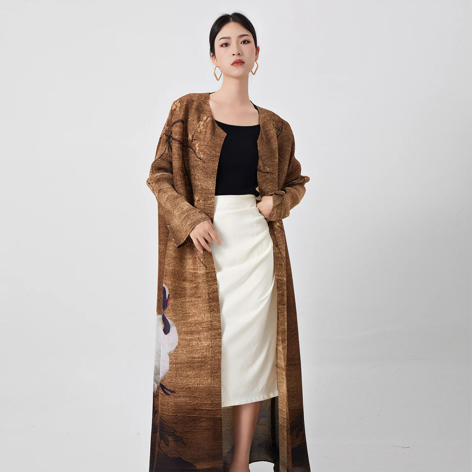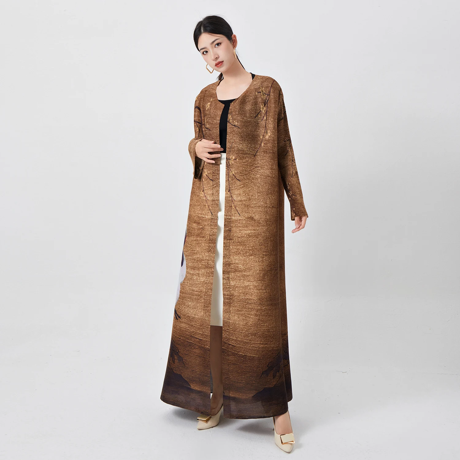 Factory Miyake Women's High Quality Pleated Coat Robe Fashionable Long Cardigan Jacket Plus Size Loose Stretch Trench Coat