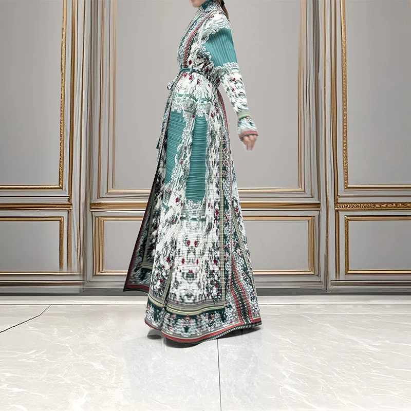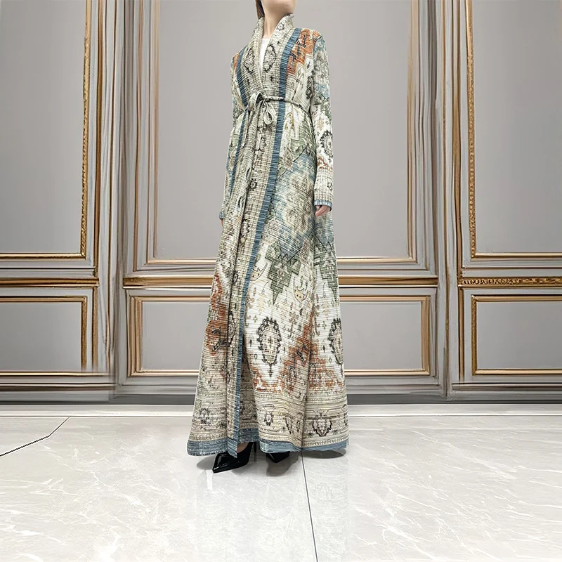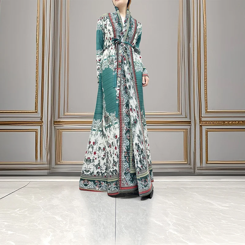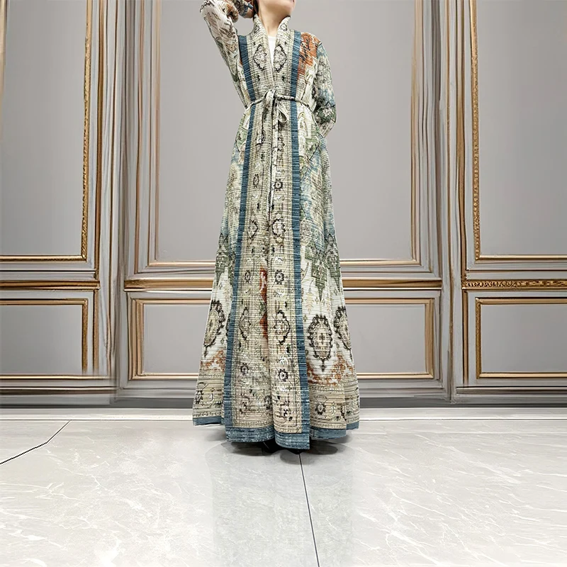 2025 Latest Design Women Elegant Abaya Stretch Plus Size Printed Robes Arabic Traditional Abaya Miyake Pleated Abaya