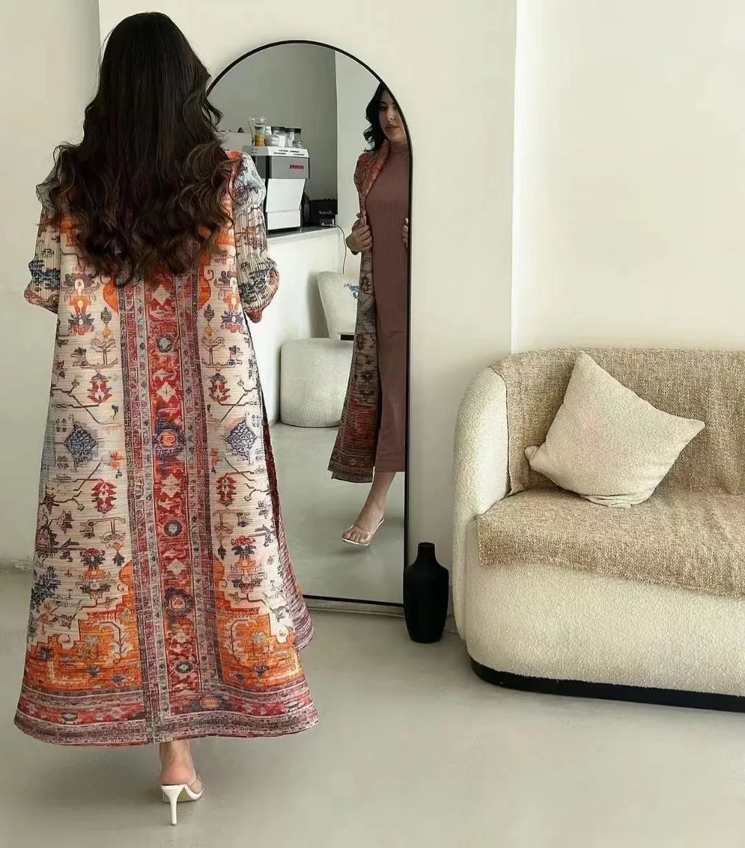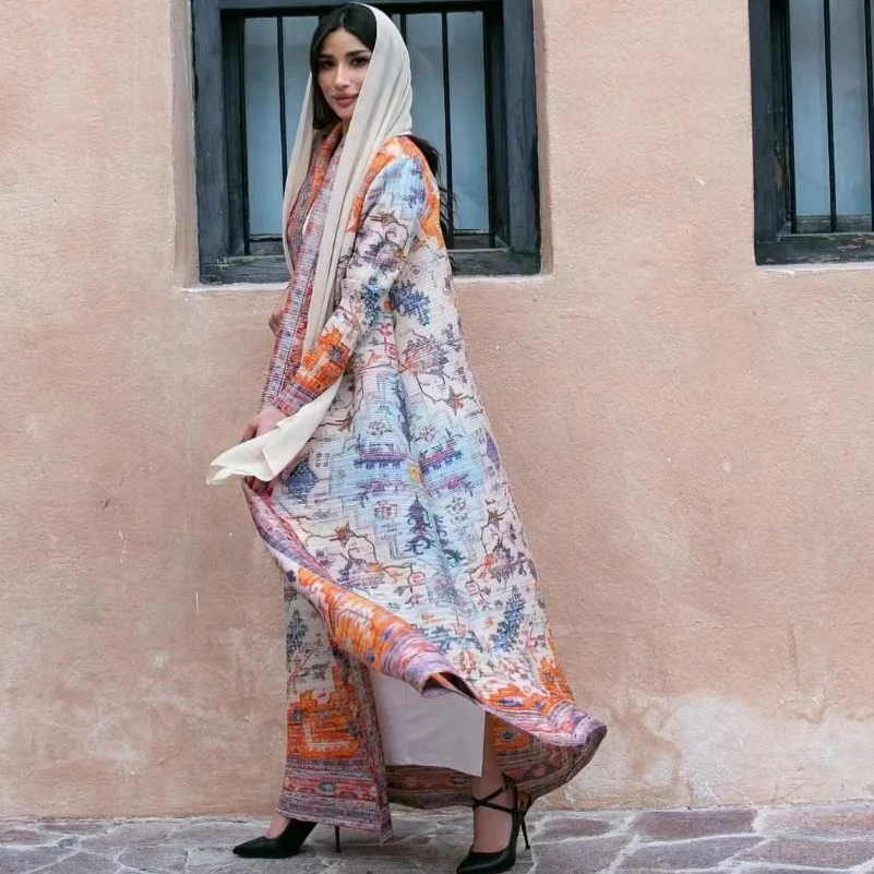High Quality Printed Women Robe Plus Size Windbreaker With Pleated Design Factory Miyake Traditional Muslim Abaya