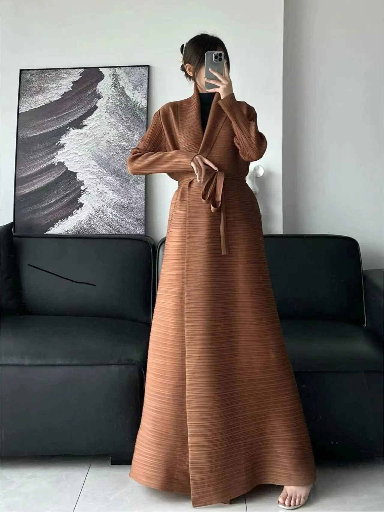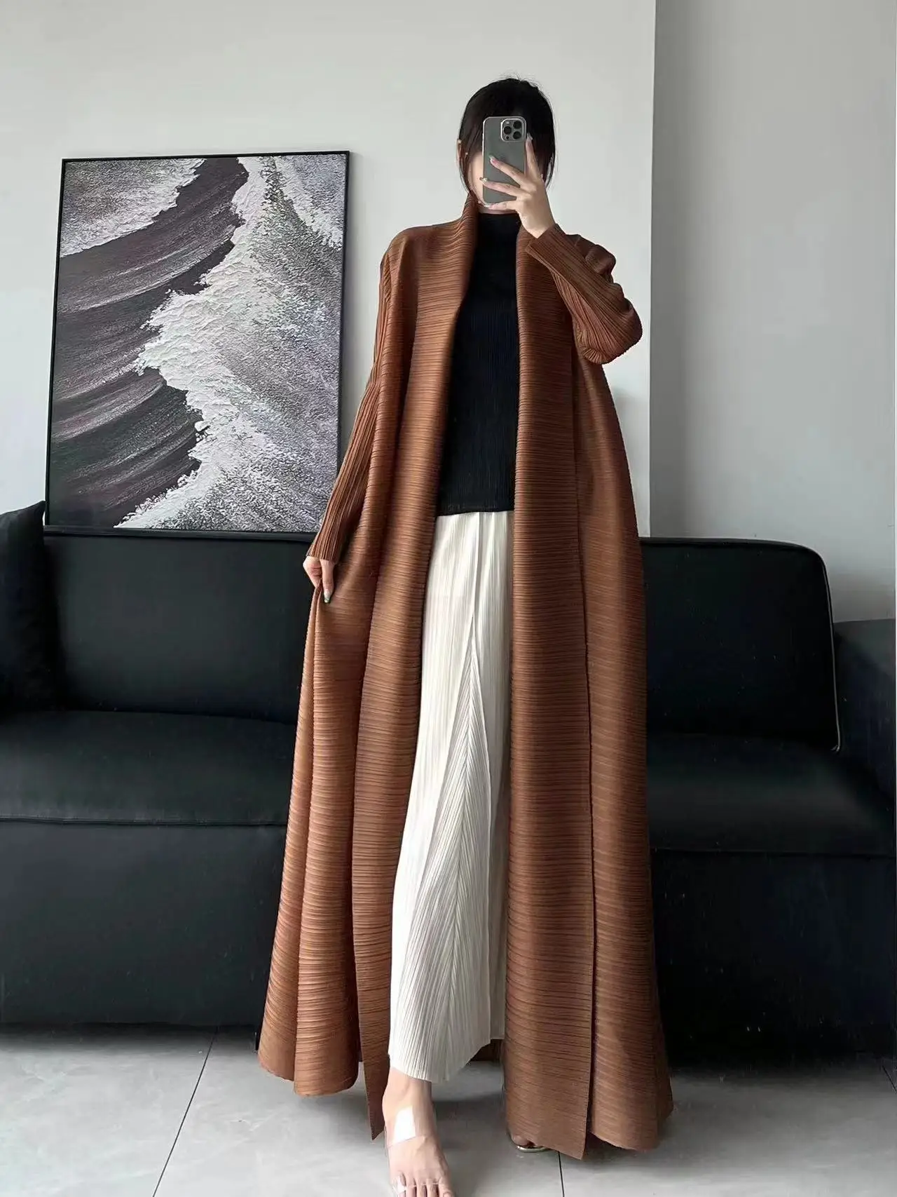 Middle Eastern Miyake Women Pleated Cardigan Summer Design Plus Size Solid Color Robe Coat Traditional Muslim Casual Long Abaya