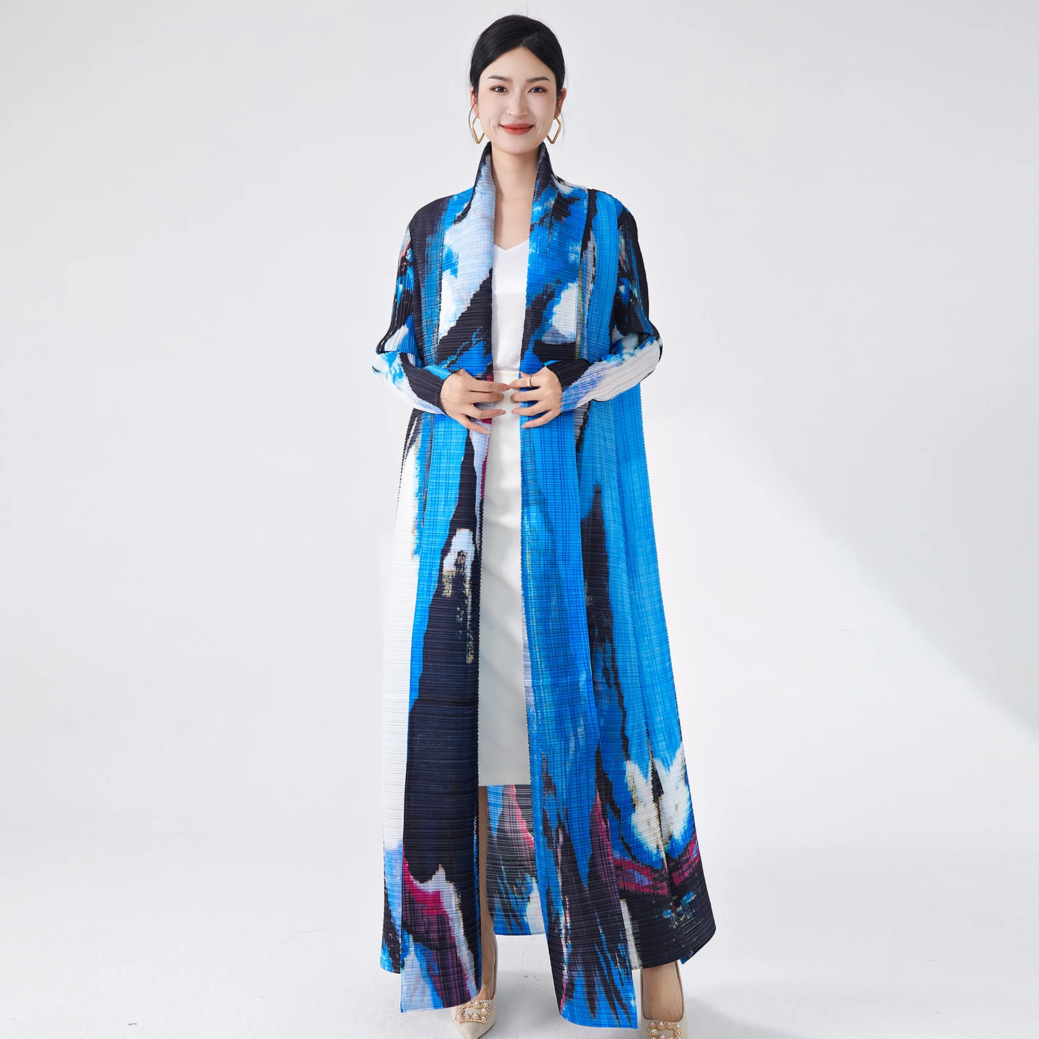 2025 Latest Design Manufacturer Custom Islamic Muslim Women Pleated Printed Long Modest Dress Modesty Open Abaya