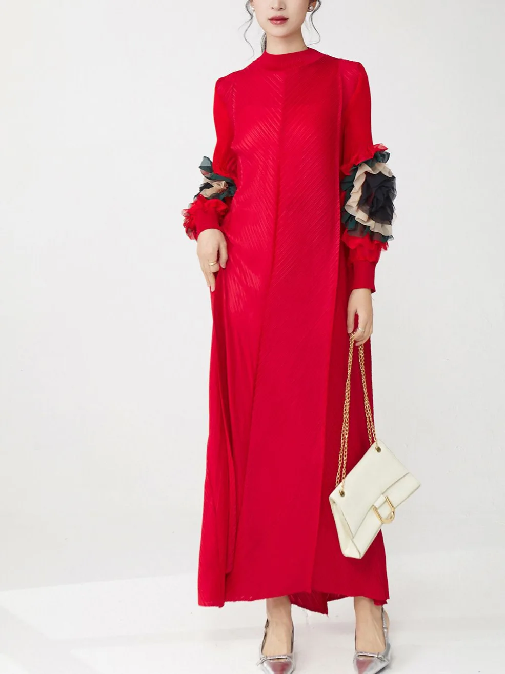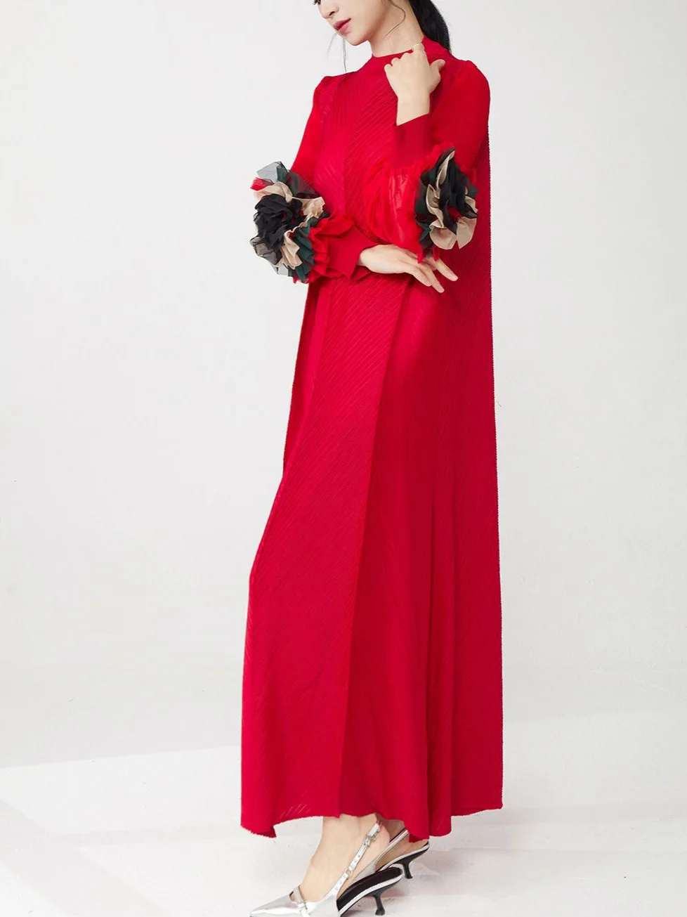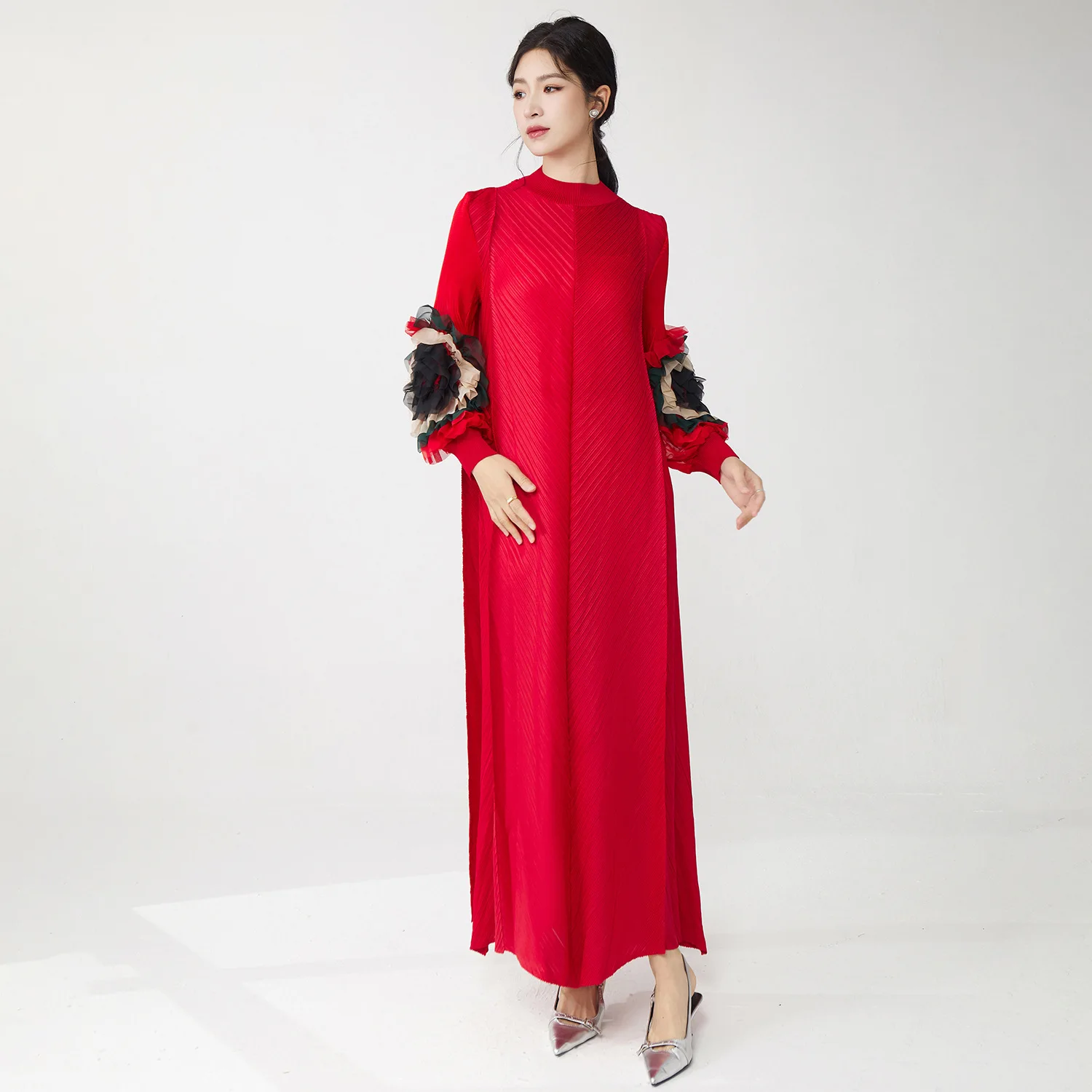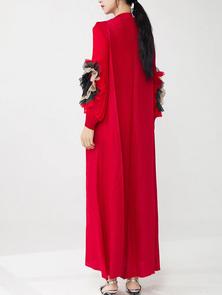 Factory-made Women's Fashion Dress Loose Plus Size Long Sleeves Dress High Quality Elastic Floral Pattern Miyake Pleated Dress