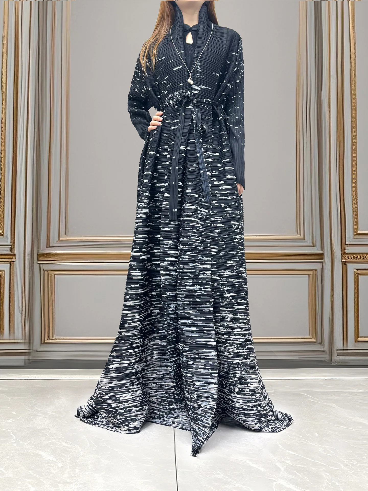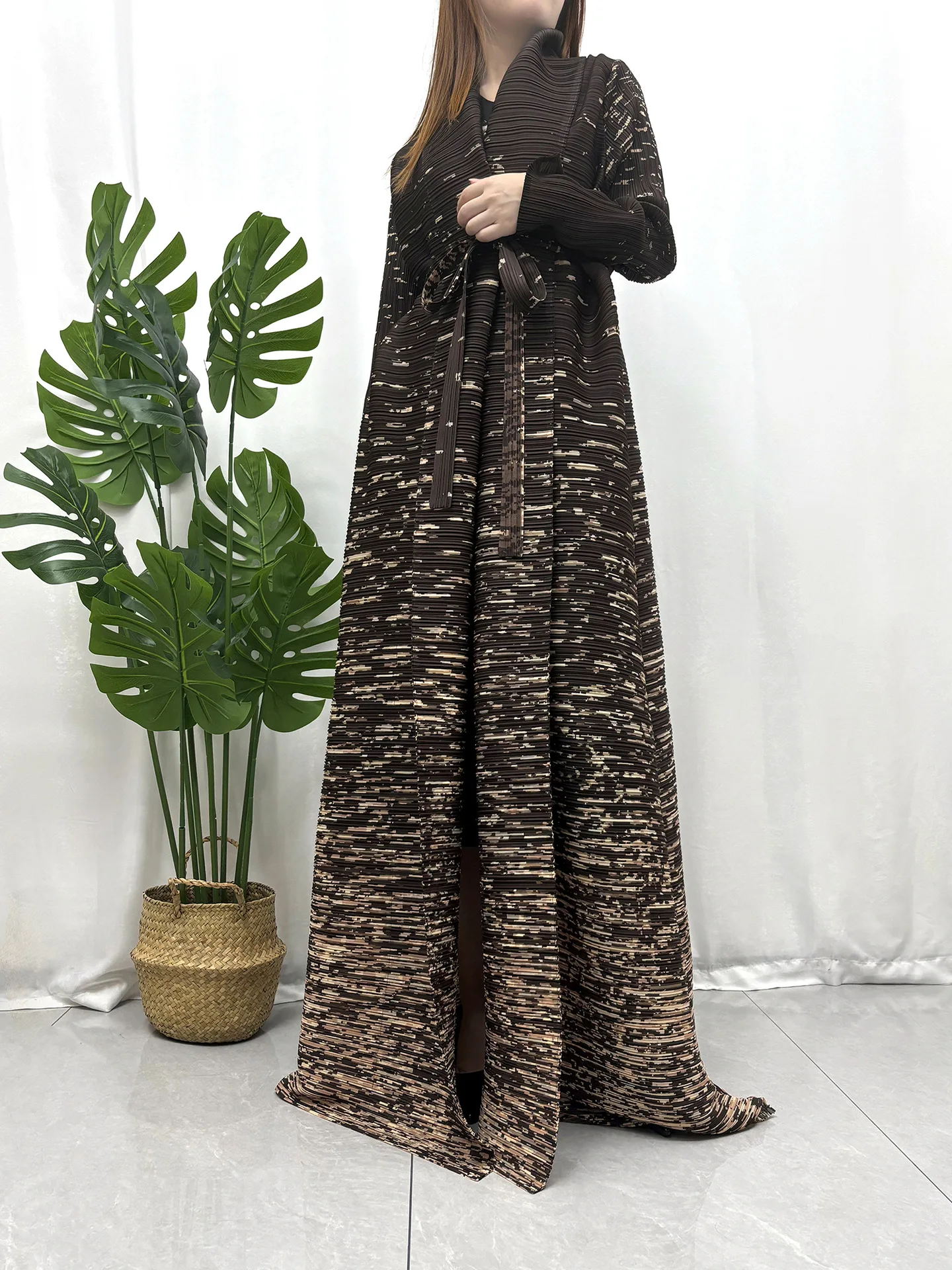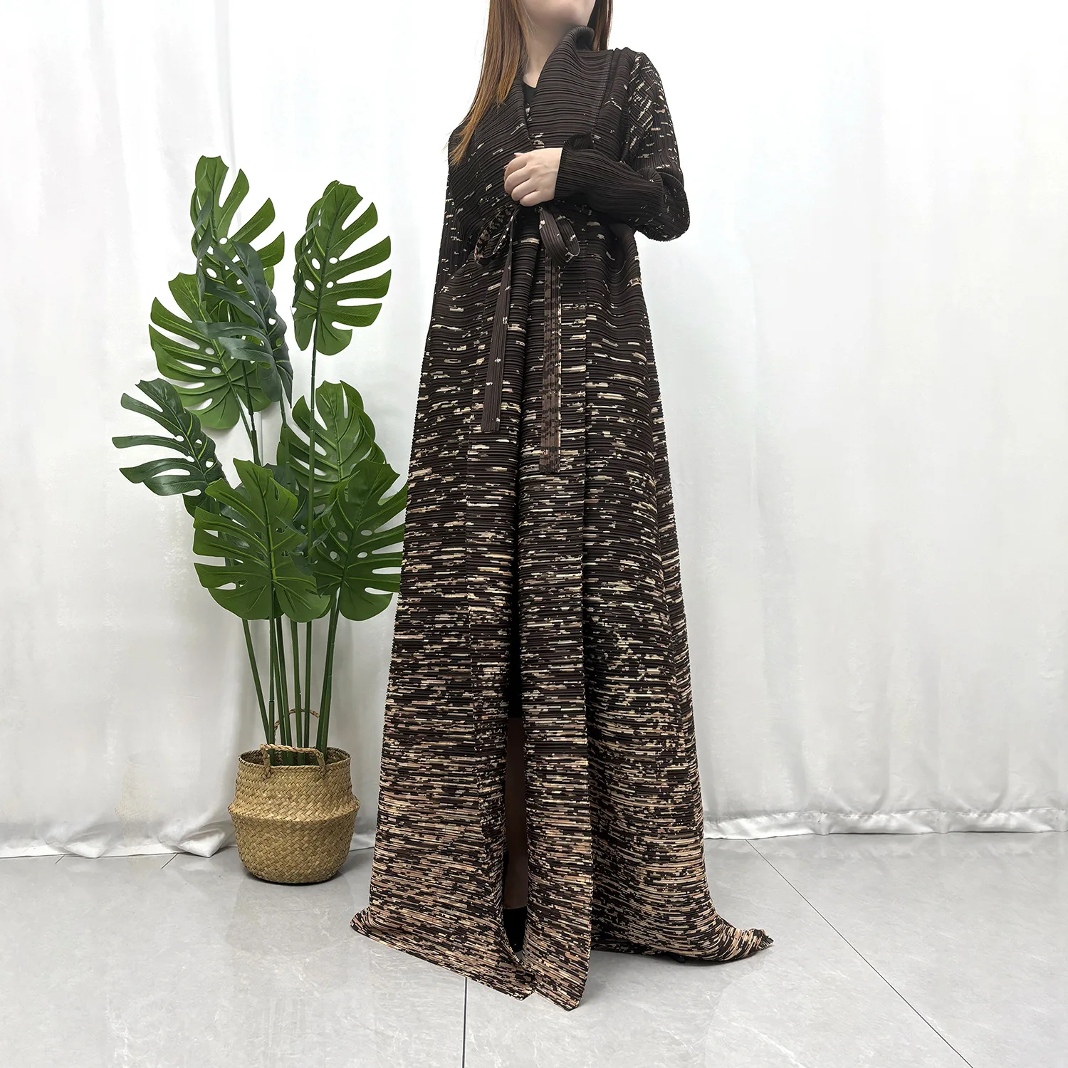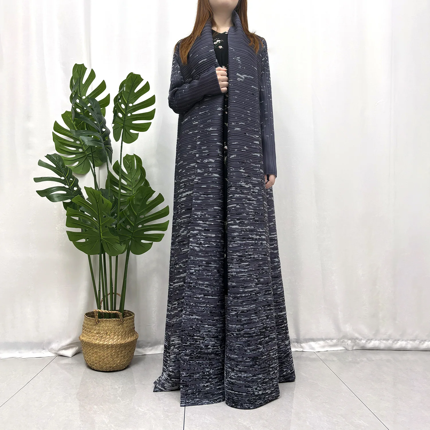 Factory Wholesale Miyake Pleated Abaya Design Sense Loose Print Casual Abaya Free Size Ladies Elegant Abaya