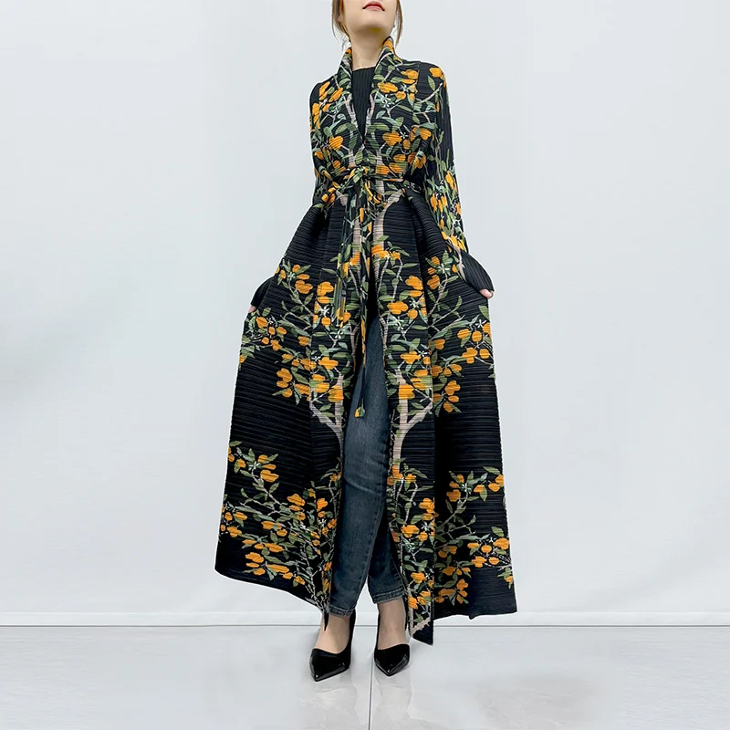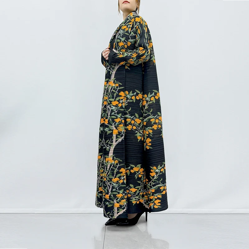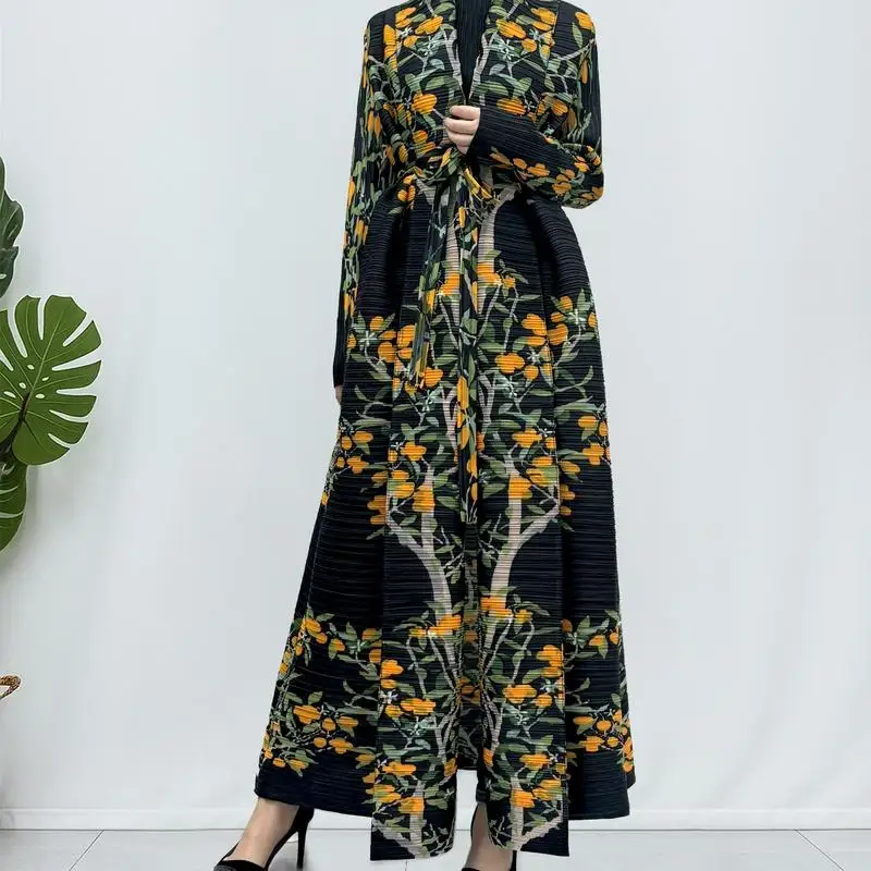 Fast Shipping Women's Fashion Abaya Loose Casual Robe Polyester Fabric Printed Traditional Abaya Miyake Pleated Robe Arabic