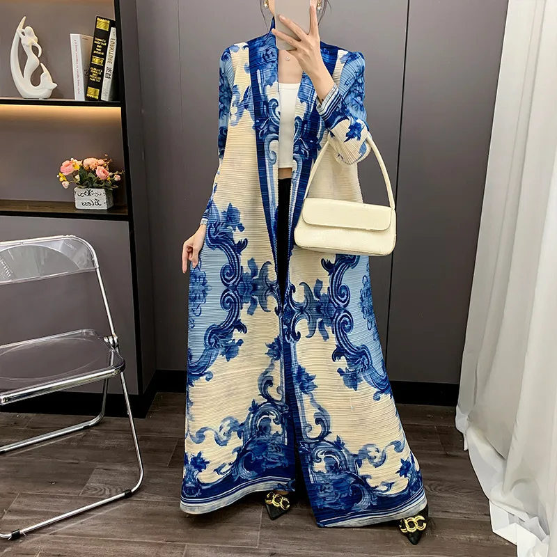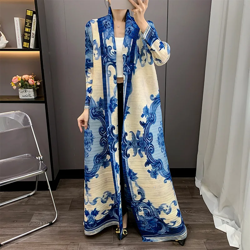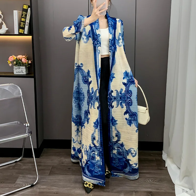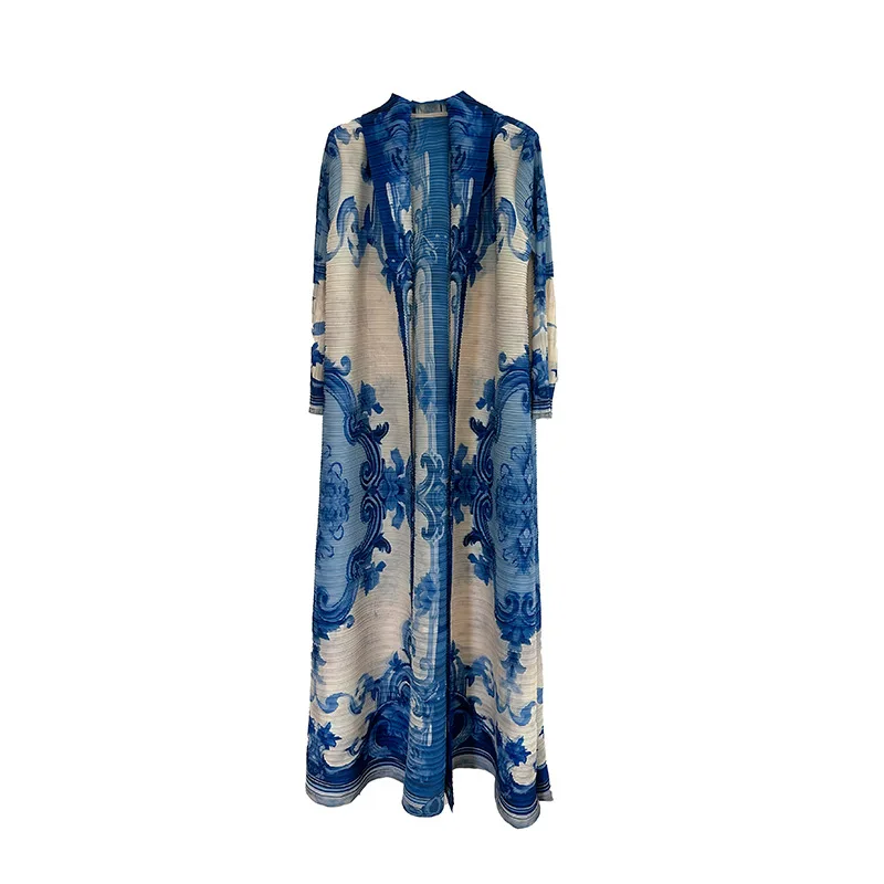 Factory Wholesale Women's Fashion Abaya Stretch Printed Loose Robe Miyake Pleated Robe Free Size Muslim Traditional Abaya