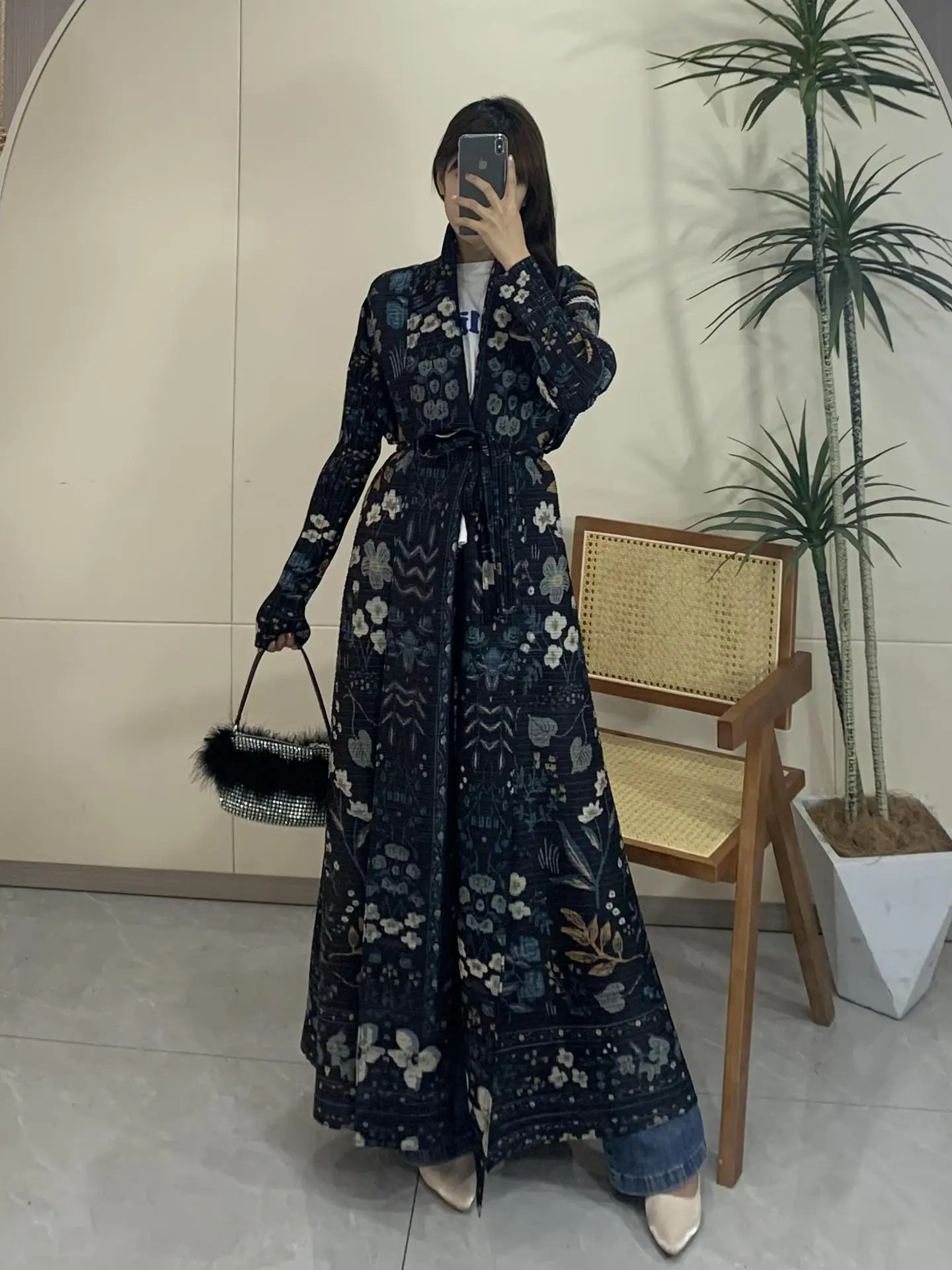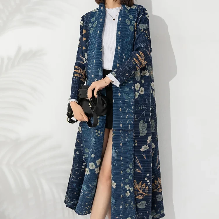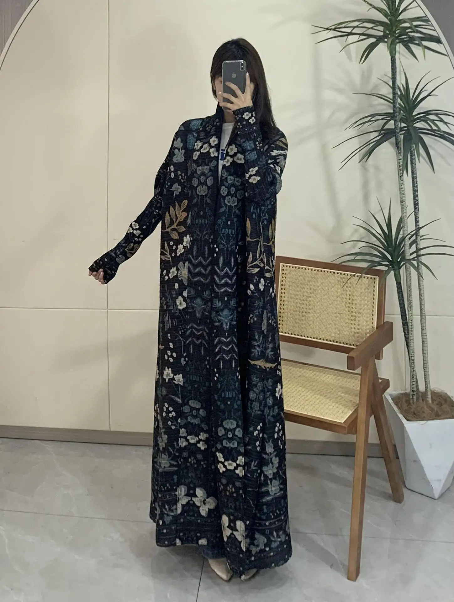High Quality Factory Women's Robe Plus Size Windbreaker Traditional Muslim Clothing Pleated Design Printed Abaya