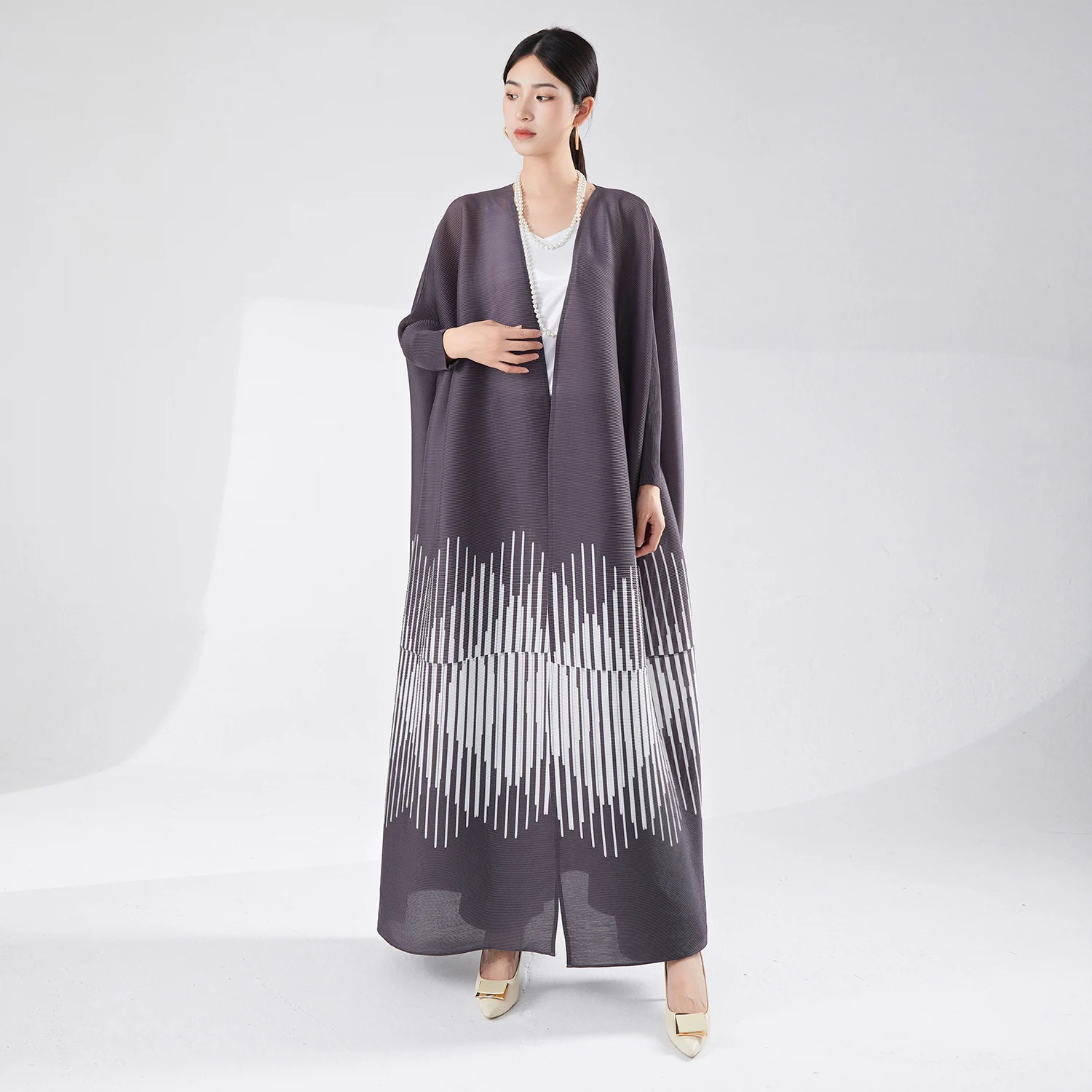 2025 New Modest Abaya Women Elegant Muslim Cardigan Dress Middle Eastern Traditional Style Miyake Pleated Plus Size Abaya