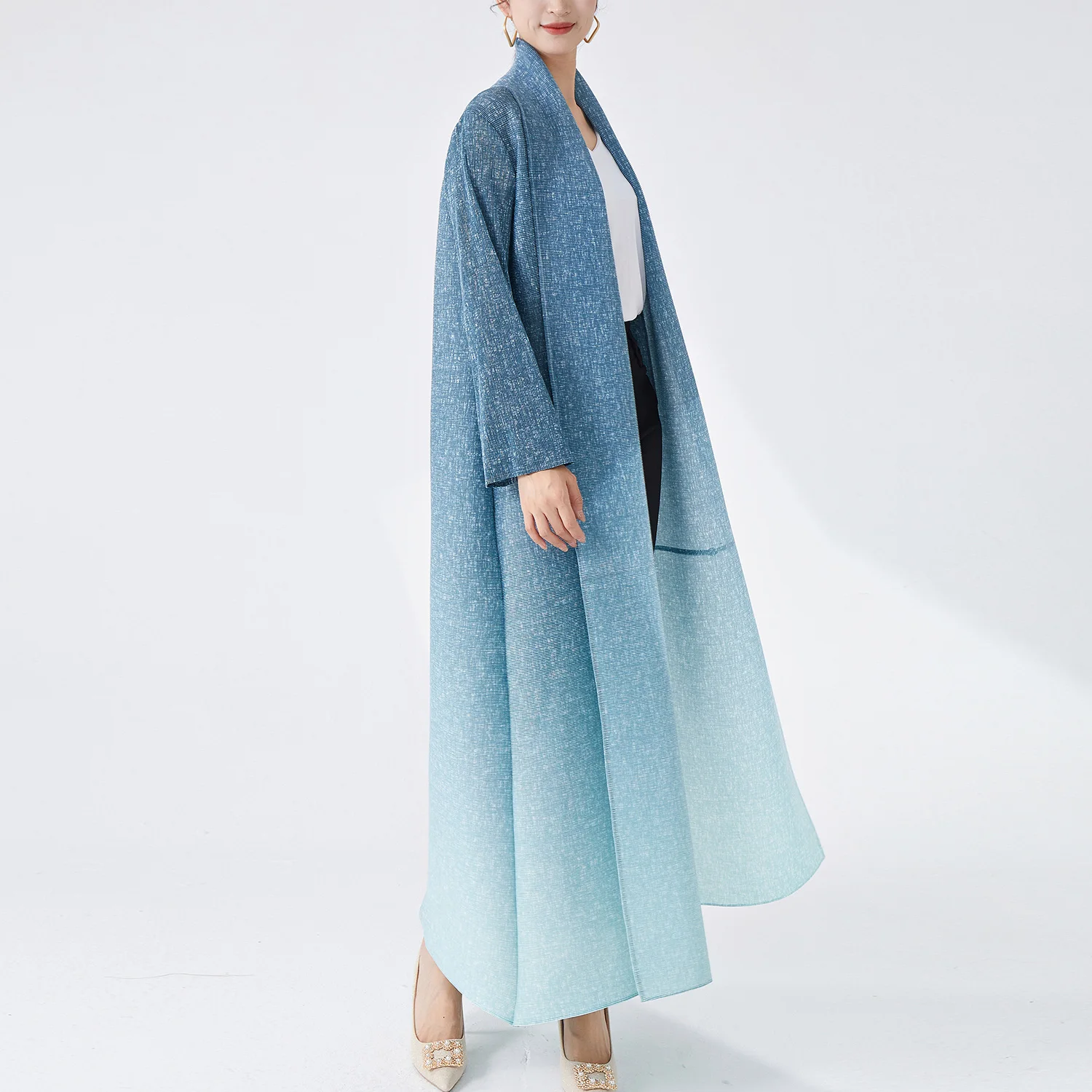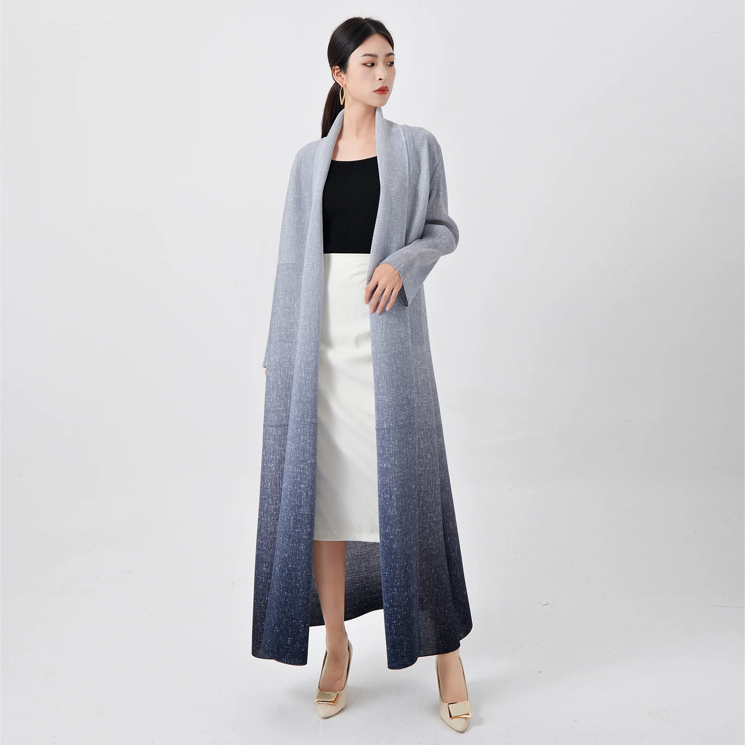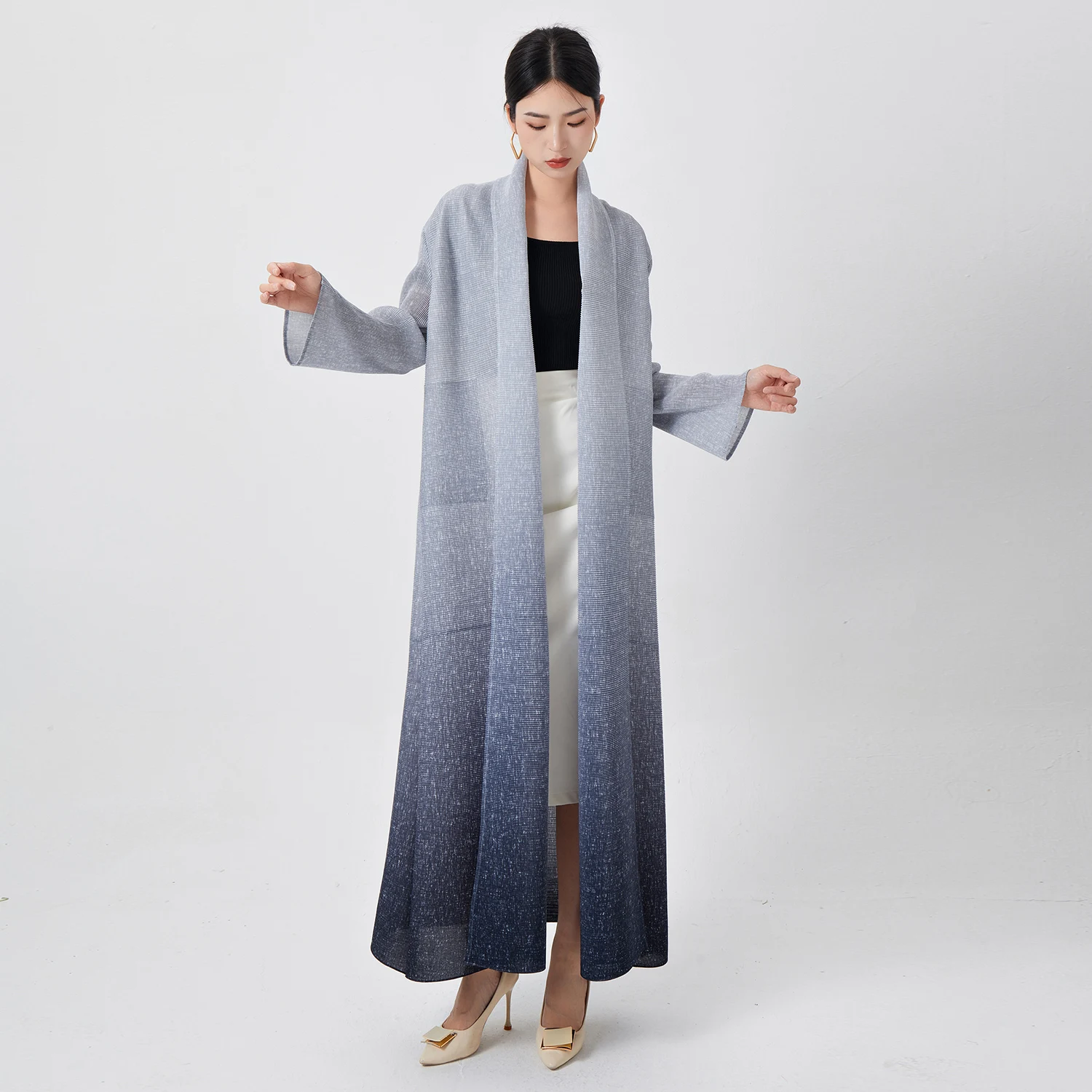 Miyake 2025 New Design Women's Pleated Lapel Long Sleeve Gradient Robe Custom Laid-Back Elegant Dubai Style Abaya
