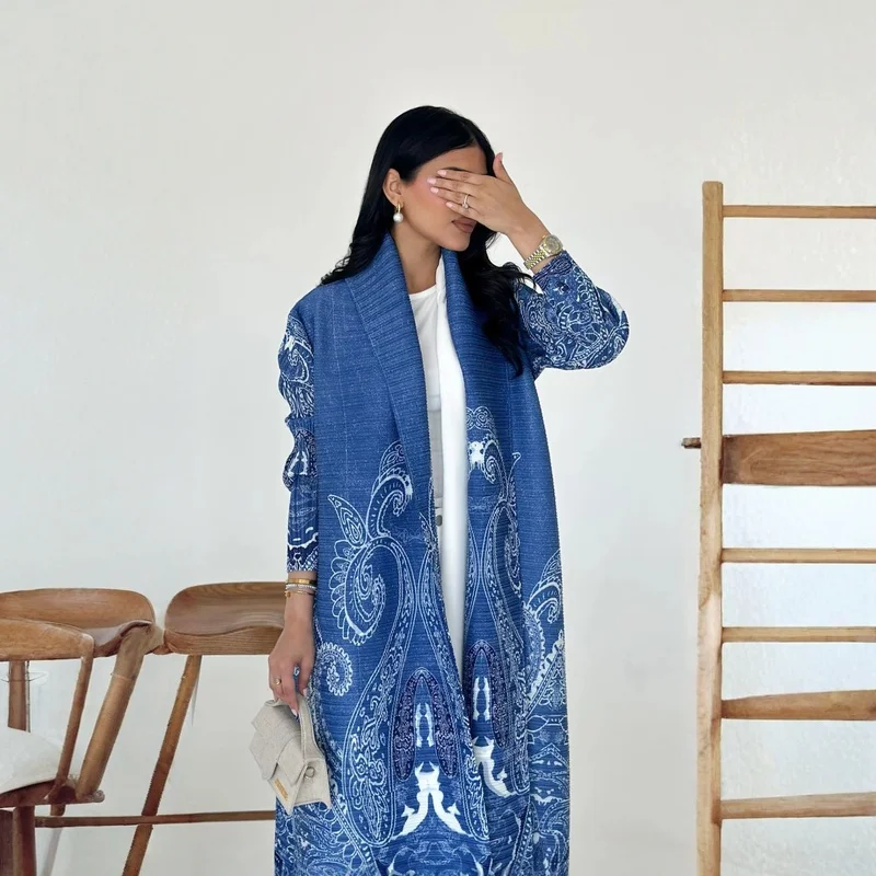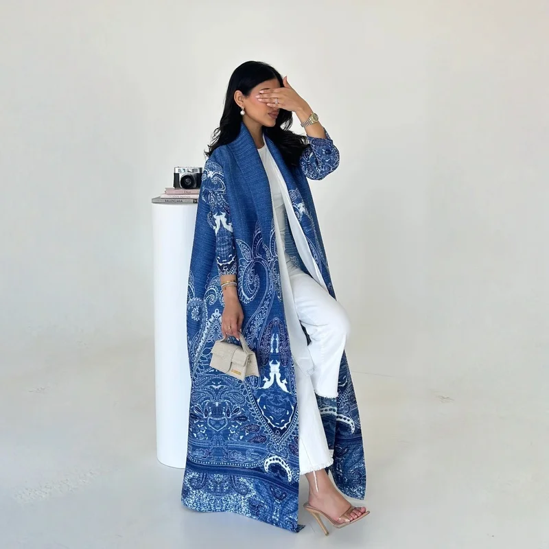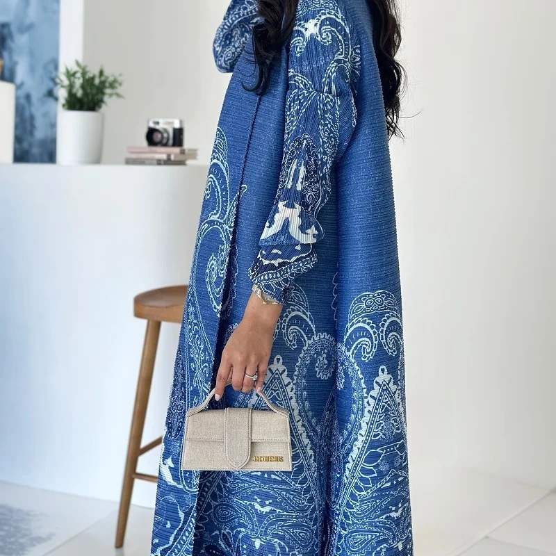 Muslimah Clothing Wholesale Women's Fashion Abaya Design Print Loose Casual Abaya Polyester Miyake Abaya Dubai