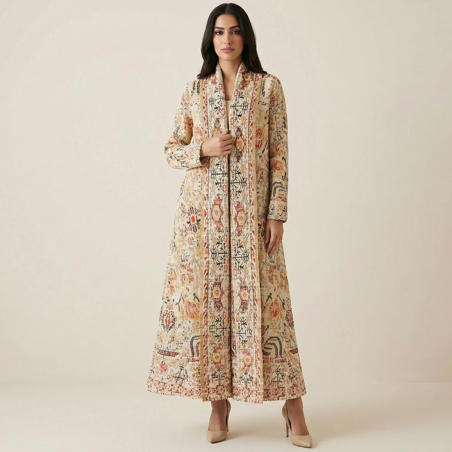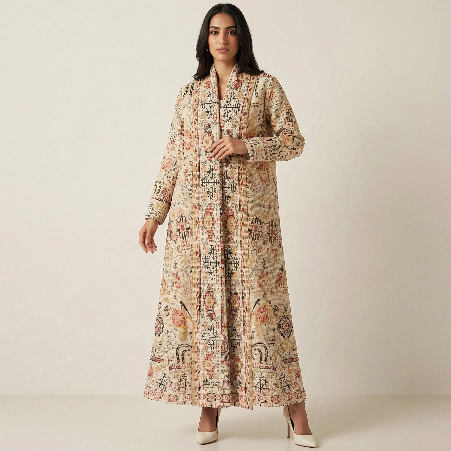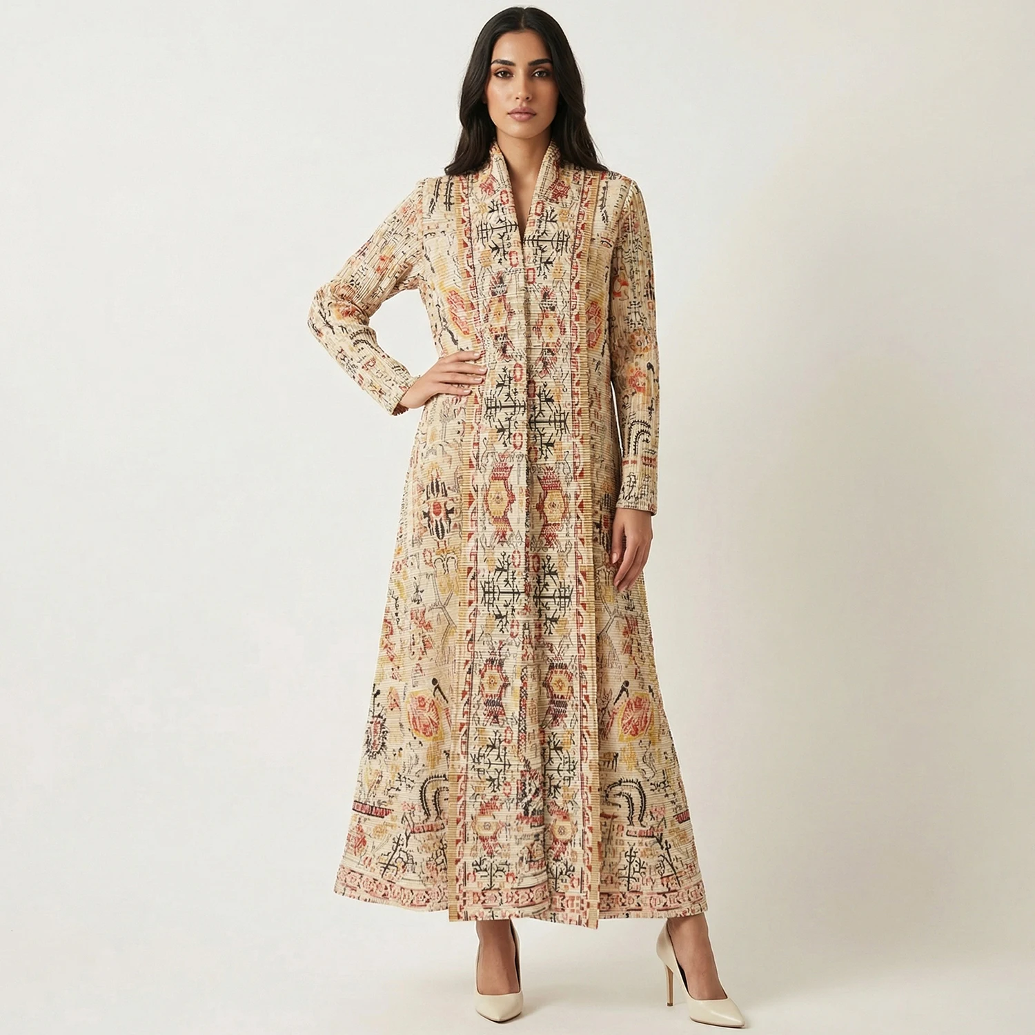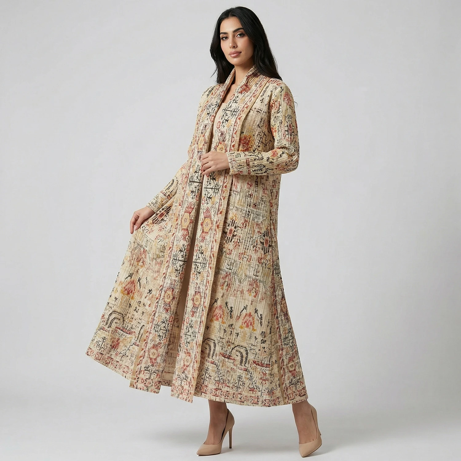 Arab Muslim Women's Fashion Abaya Loose Stretch Casual Abaya Factory Wholesale Women's Pleated Printed Long Robe
