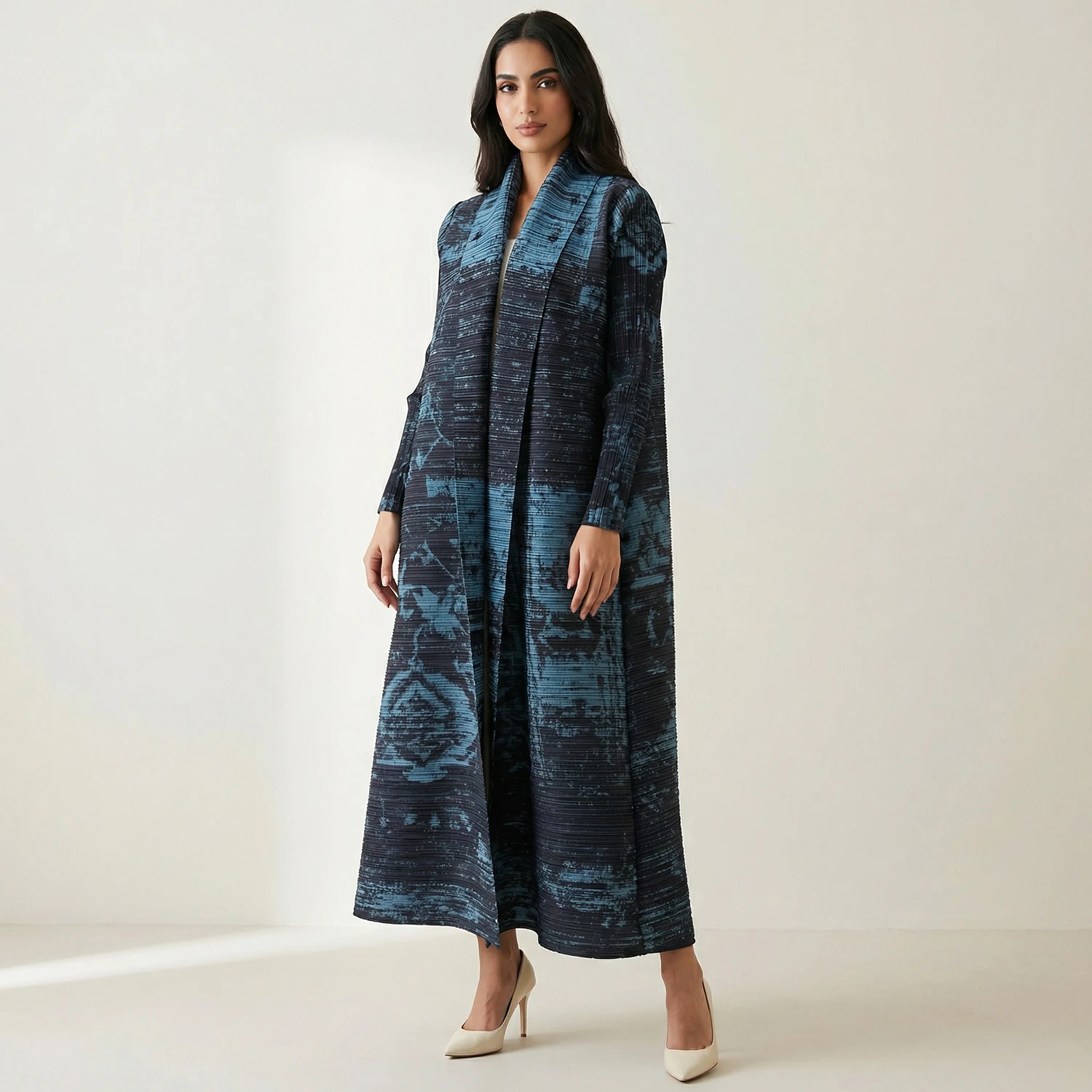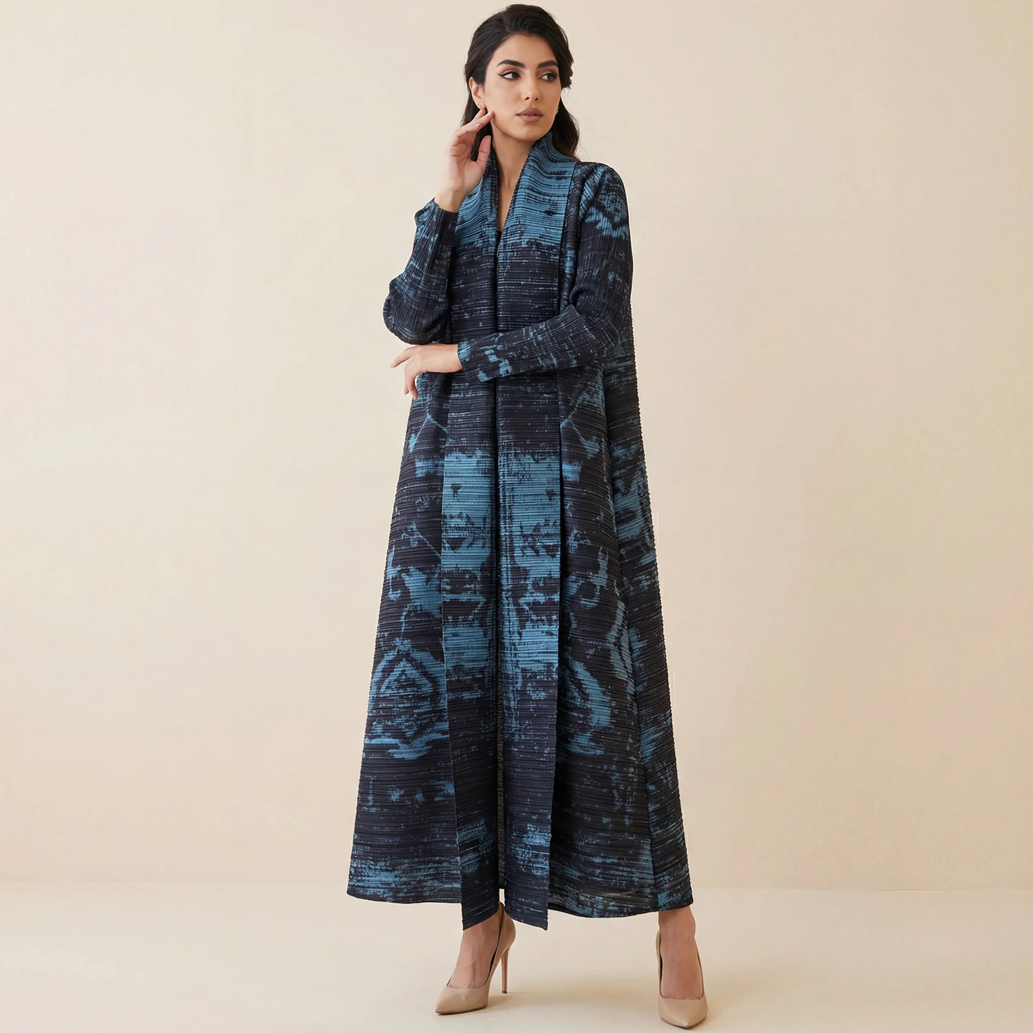 Wholesale Elegant Women's Abaya Muslim Arabic Abaya Loose Plus Size Casual Abaya Miyake Pleated Print Abaya