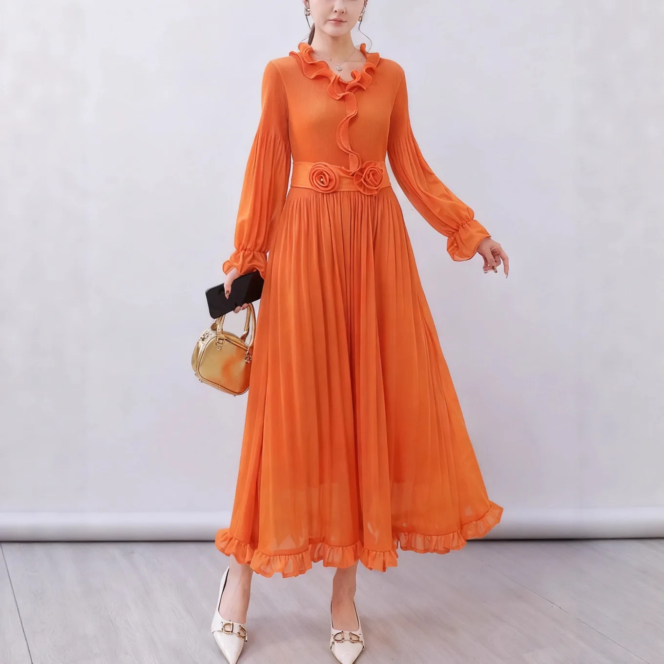 Wholesale Smocked Clothing Miyake Pleated Dress Stretch Casual Ruffle Dress Loose Women's Fashion Dress