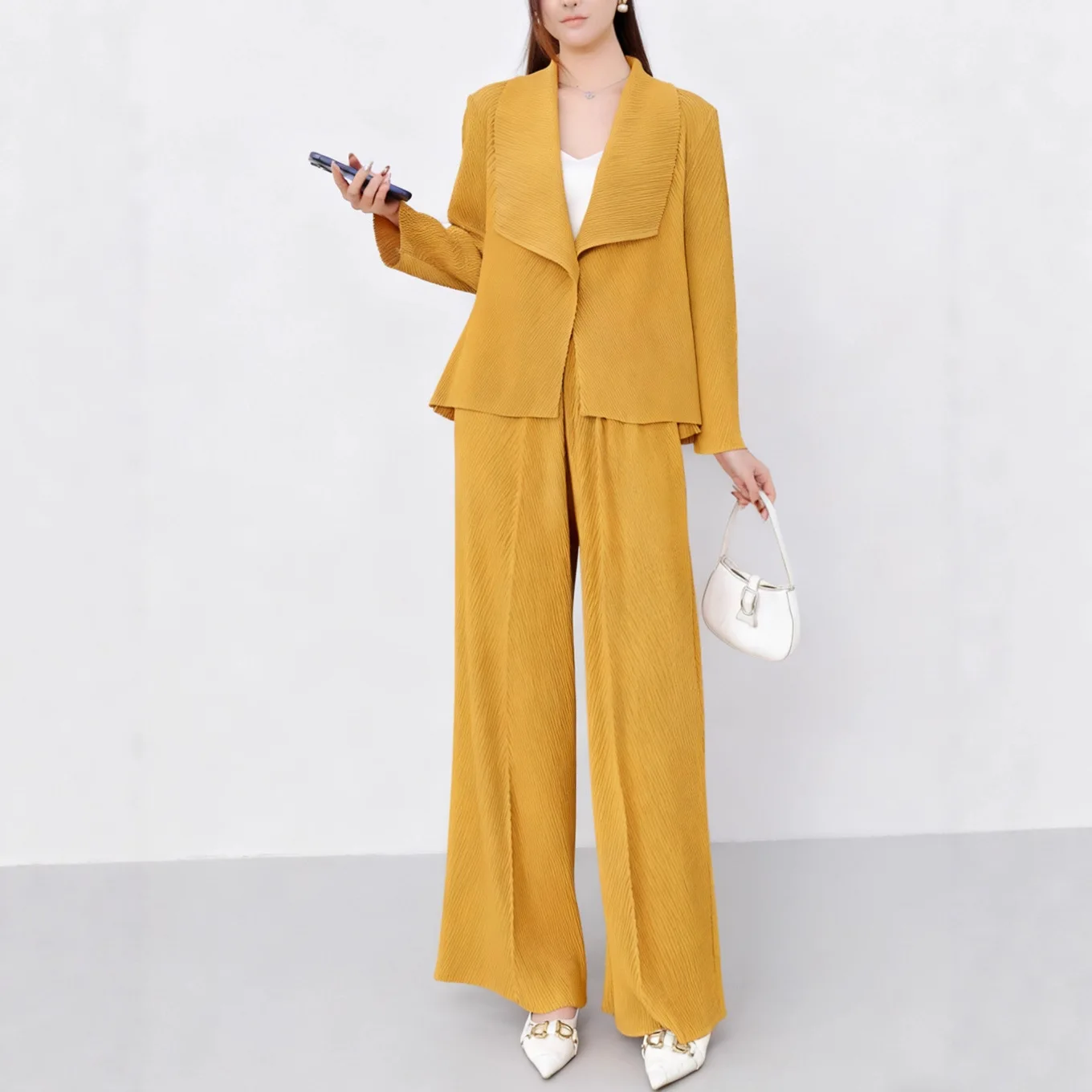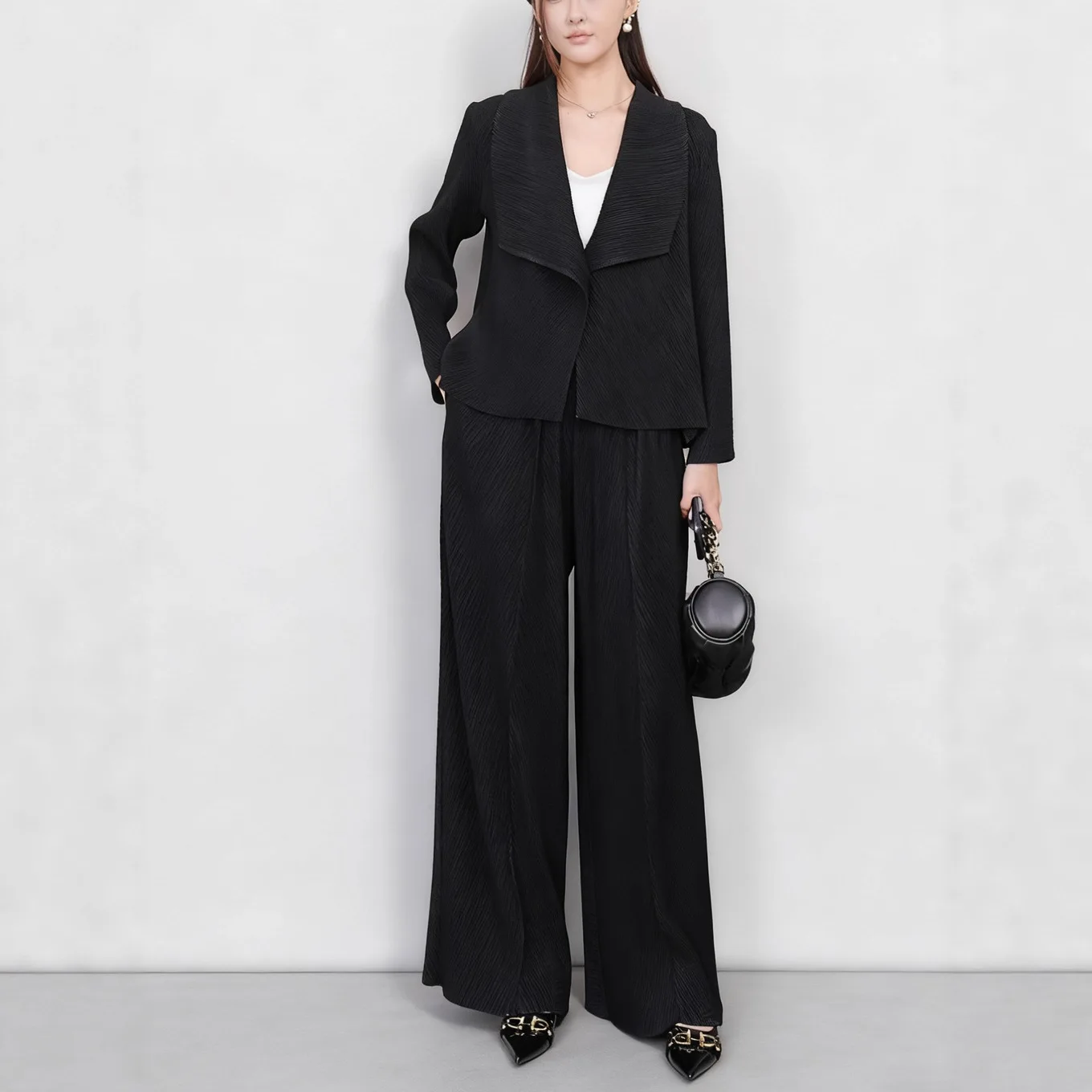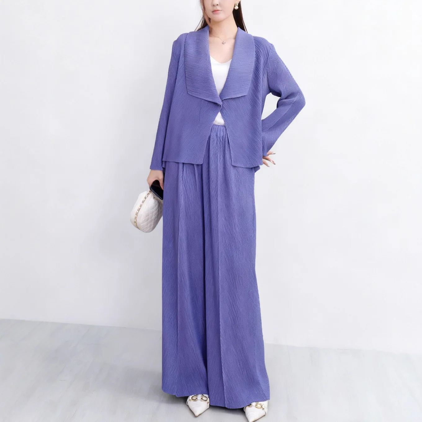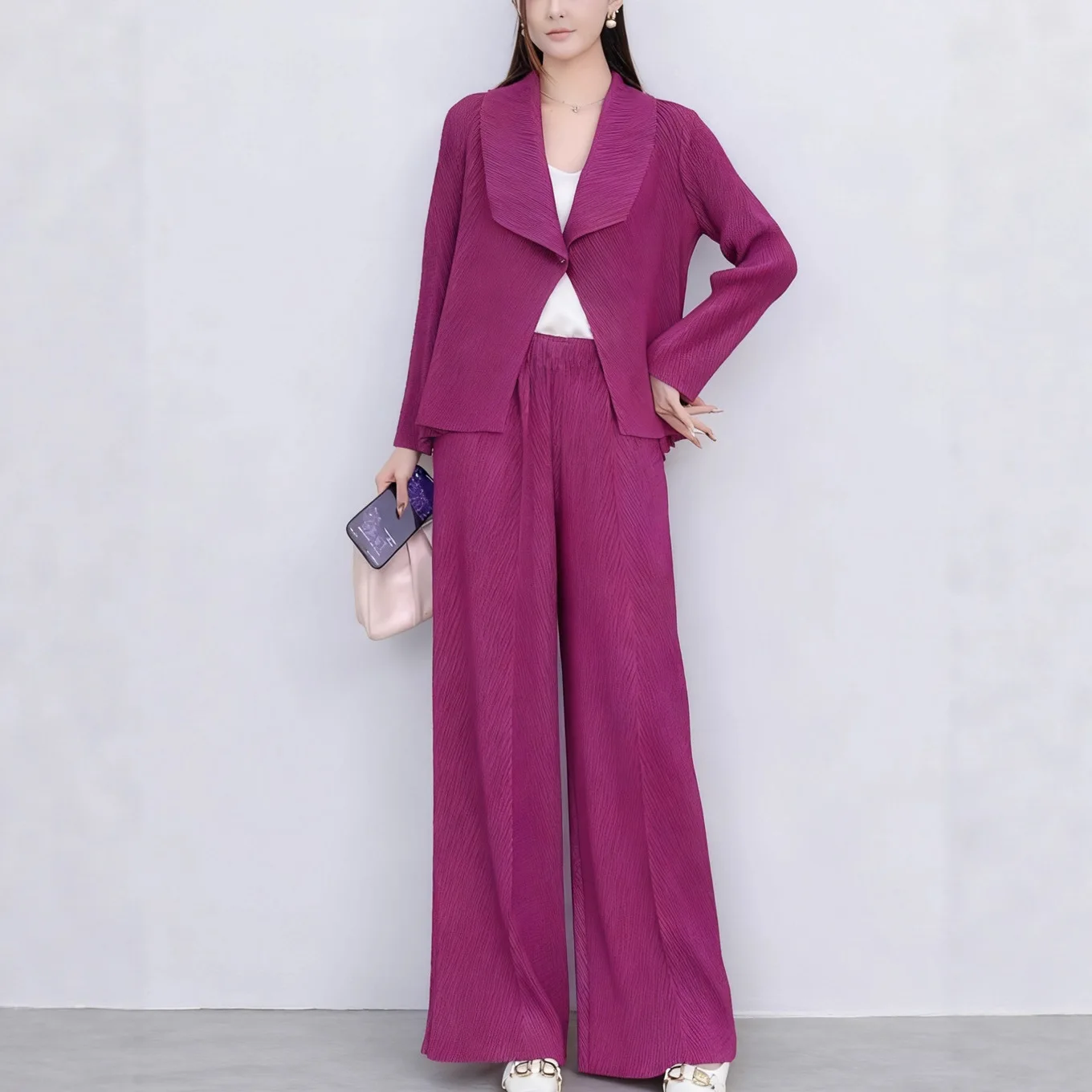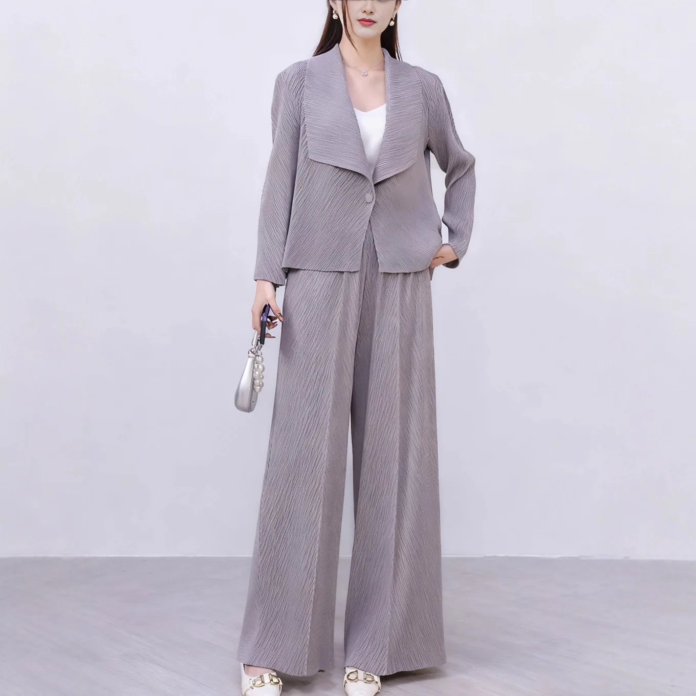 Women's Two-Piece Sets Autumn Fashionable Casual Top and Wide-Leg Pants Set Loose Miyake Pleated Set