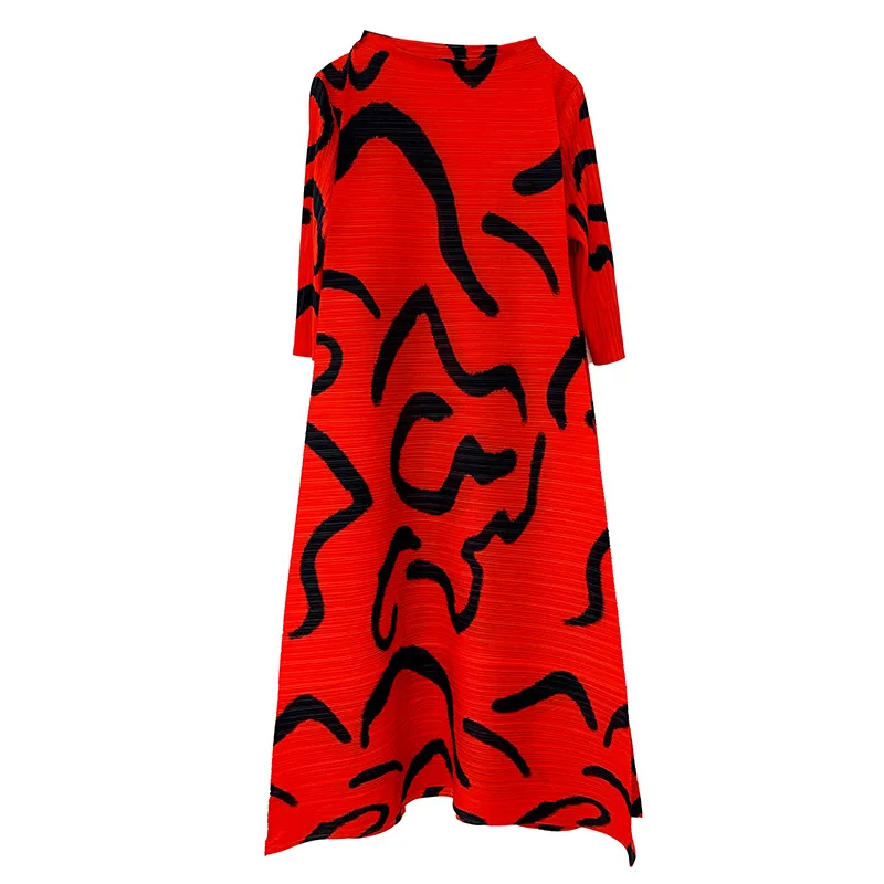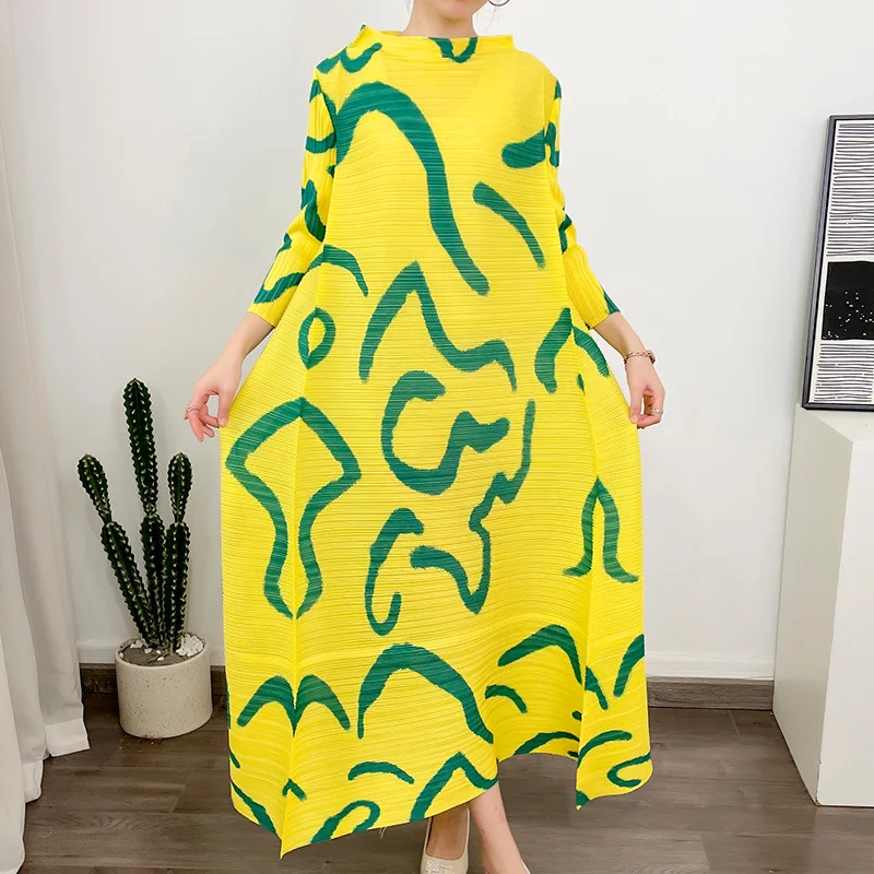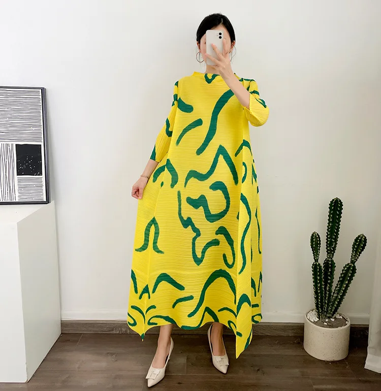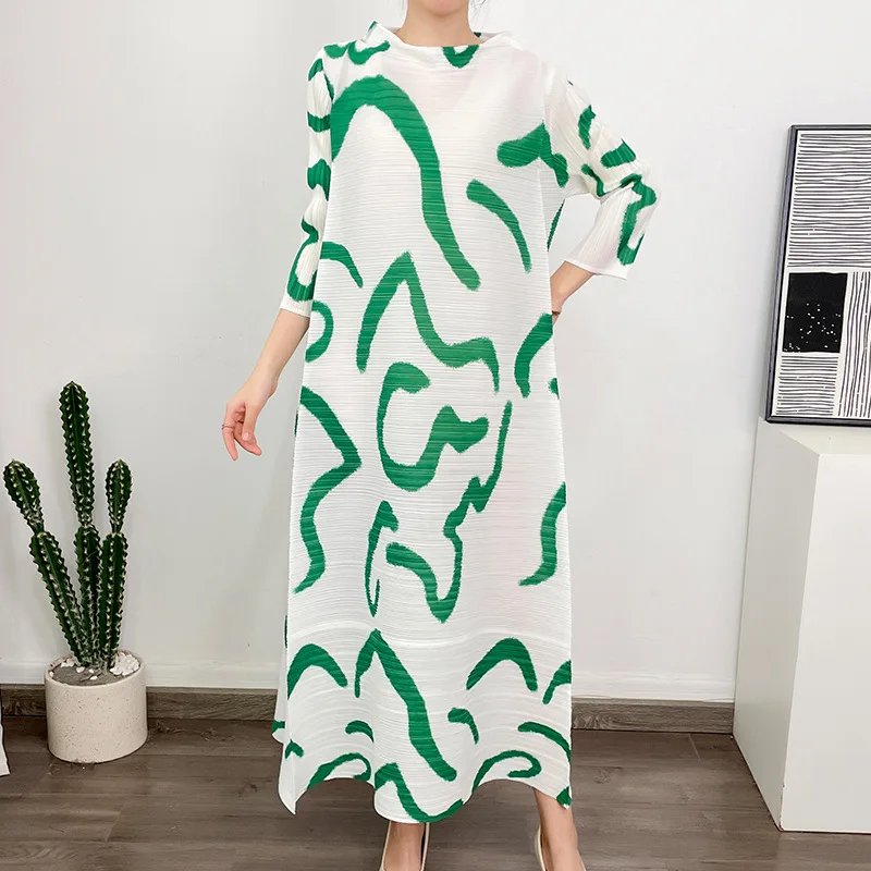 Miyake 2025 African Woman Fashion Printing Maxi Hot Sale Summer Plus Size Dress Women Elegant Pleated Dresses