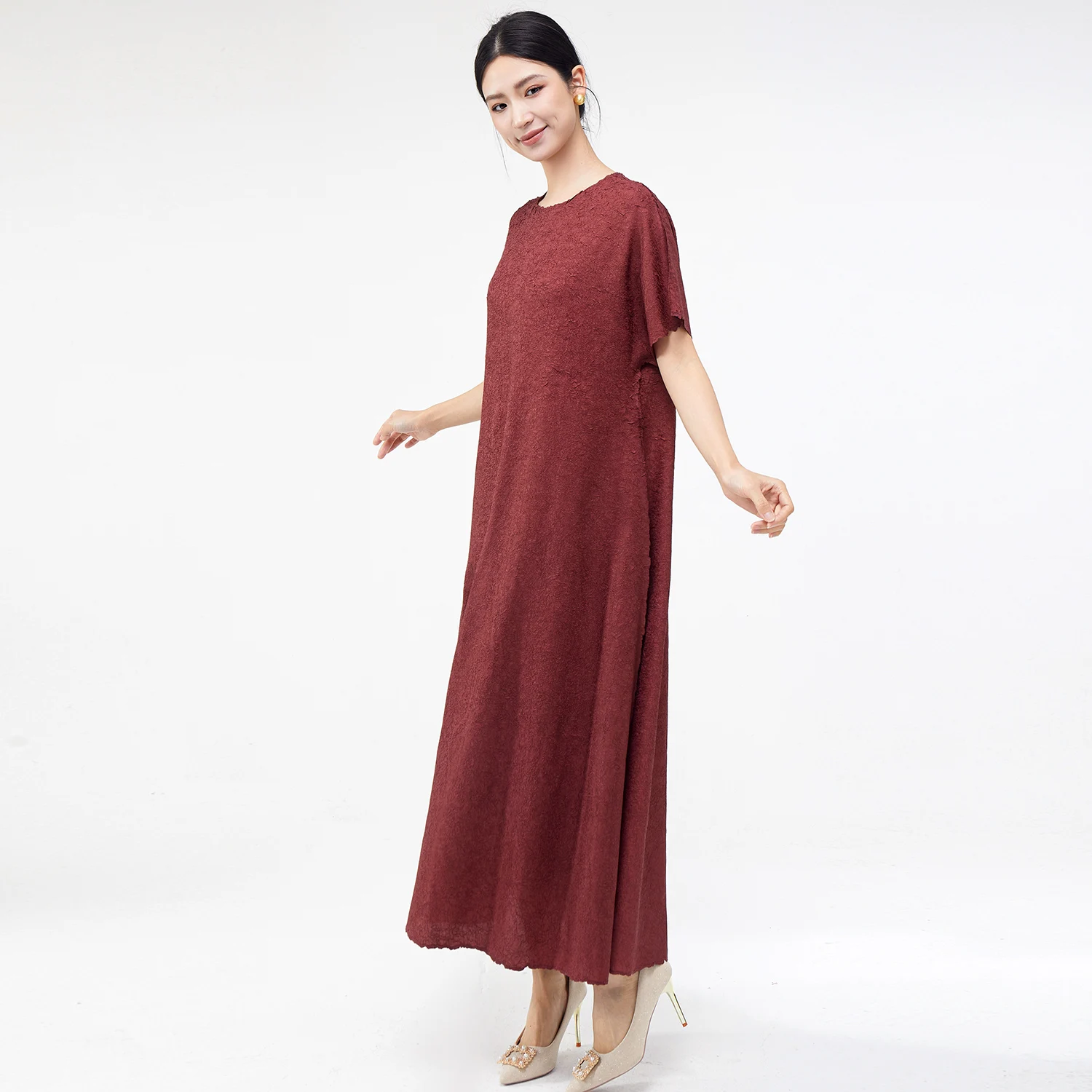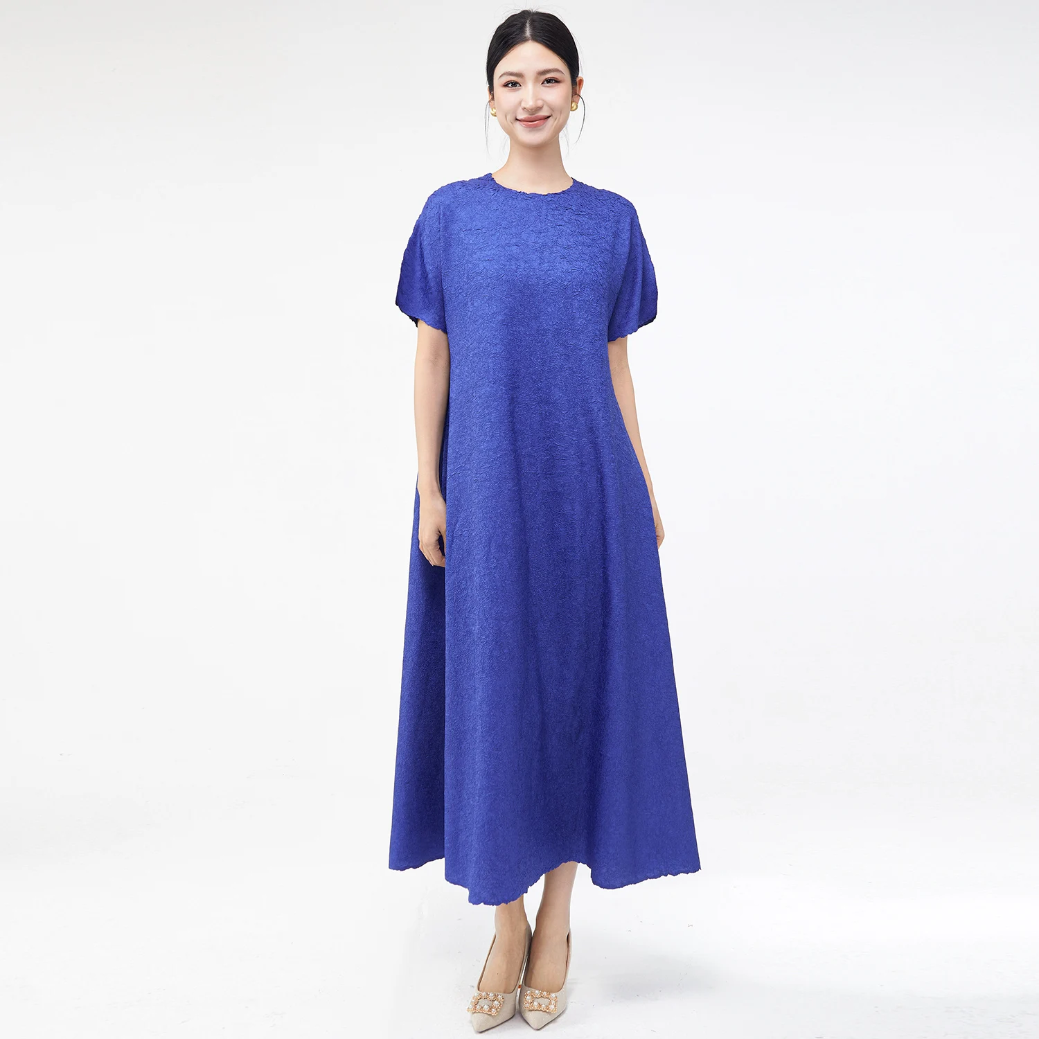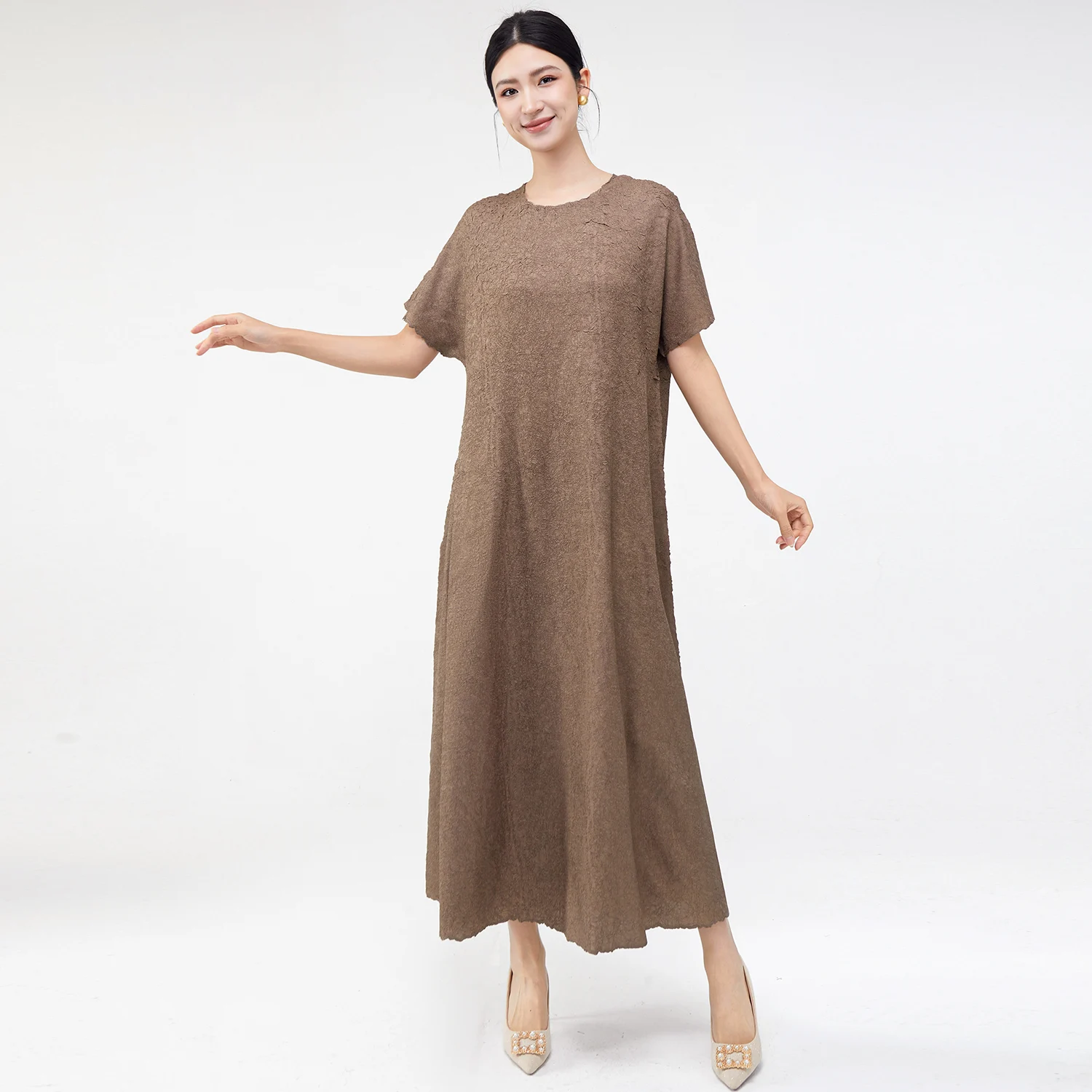2025 Latest Design Miyake Pleated Dress Graceful Design Casual Loose Short Sleeve Ladies Plus Size Dress