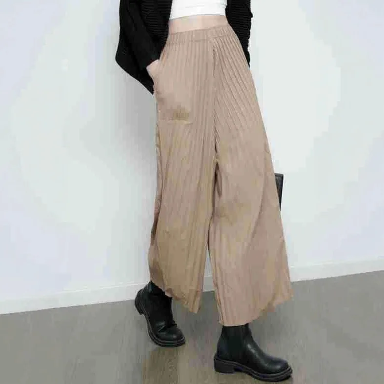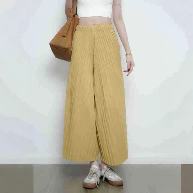 2025 New Women's Pleated Pants Stylish Hand-Pleated Wide-Leg Pants Free Size Loose and Casual Miyake Trousers