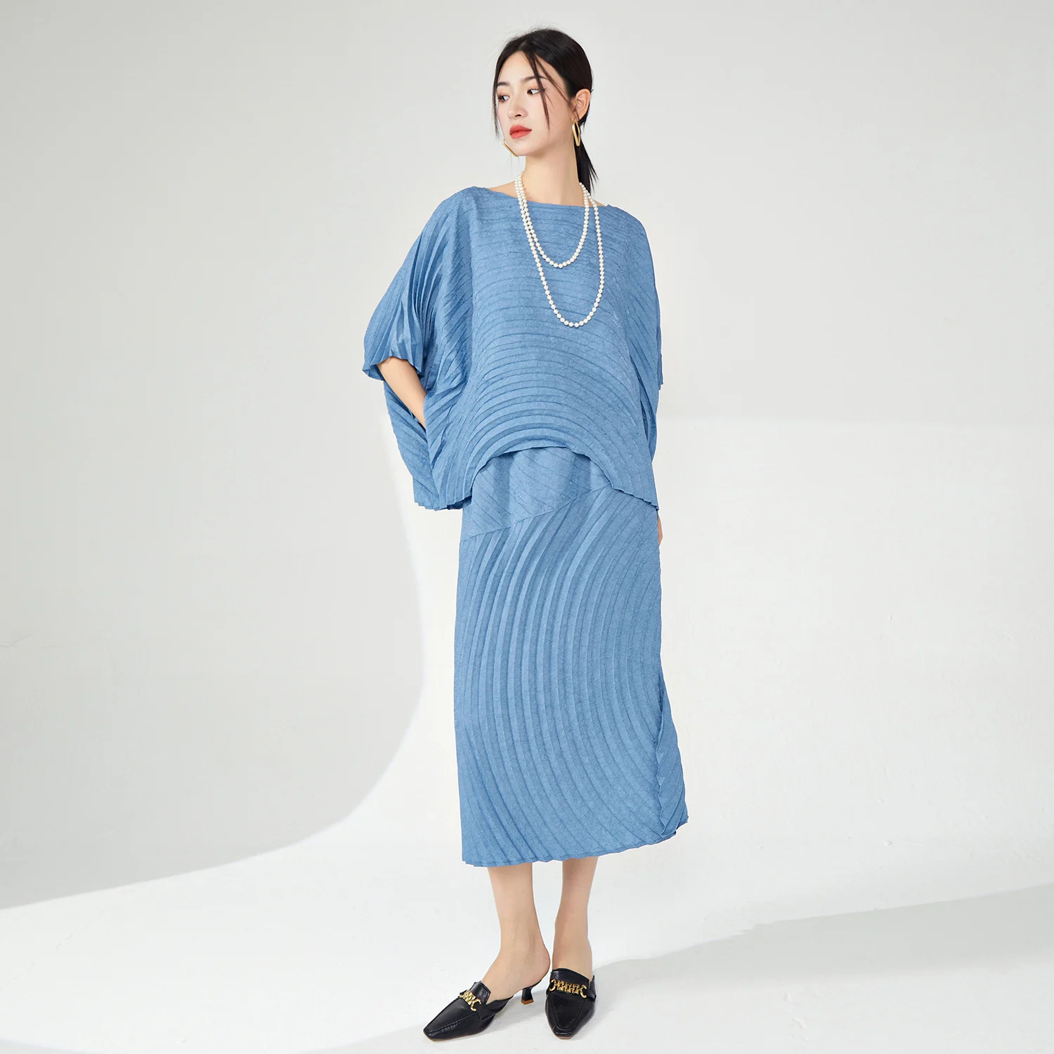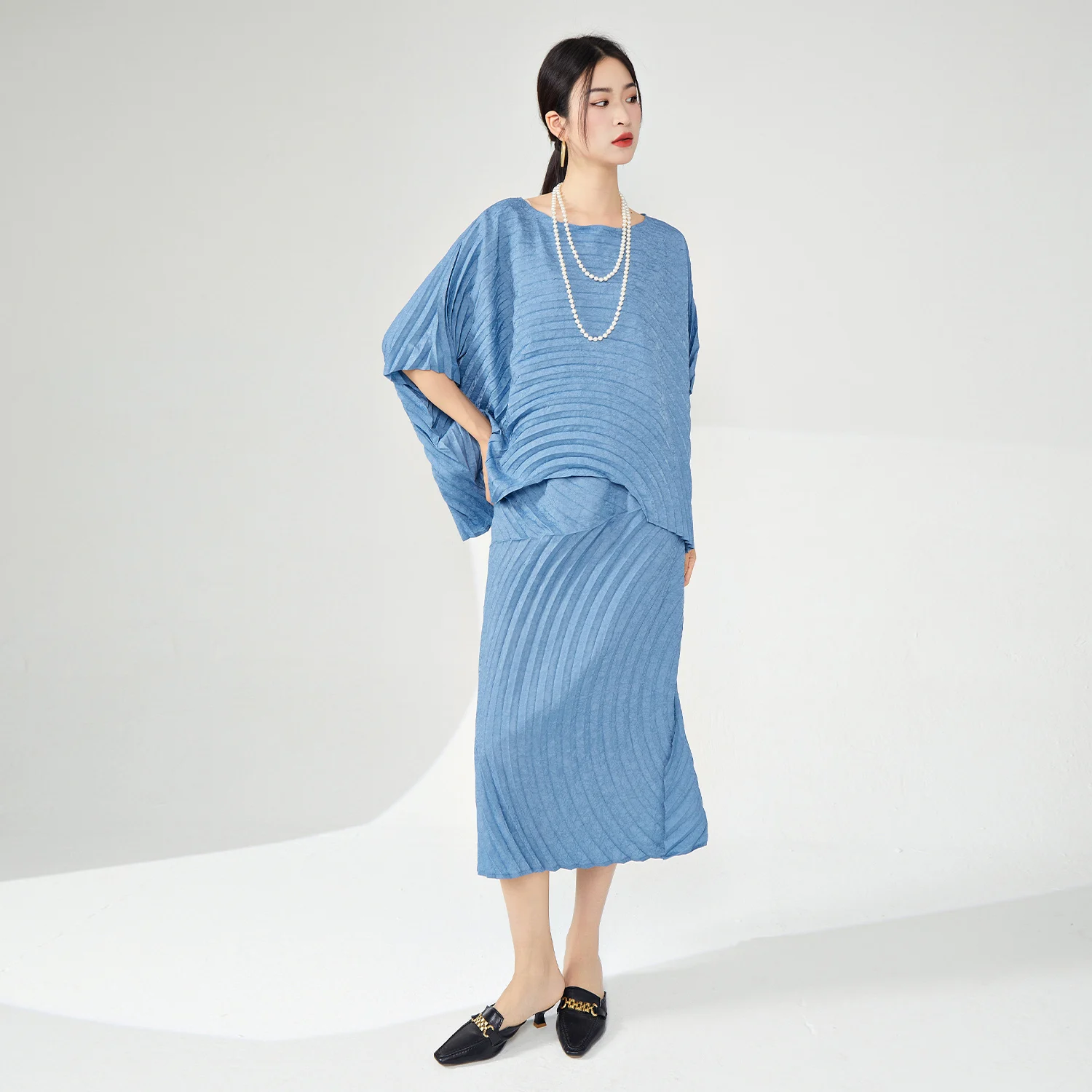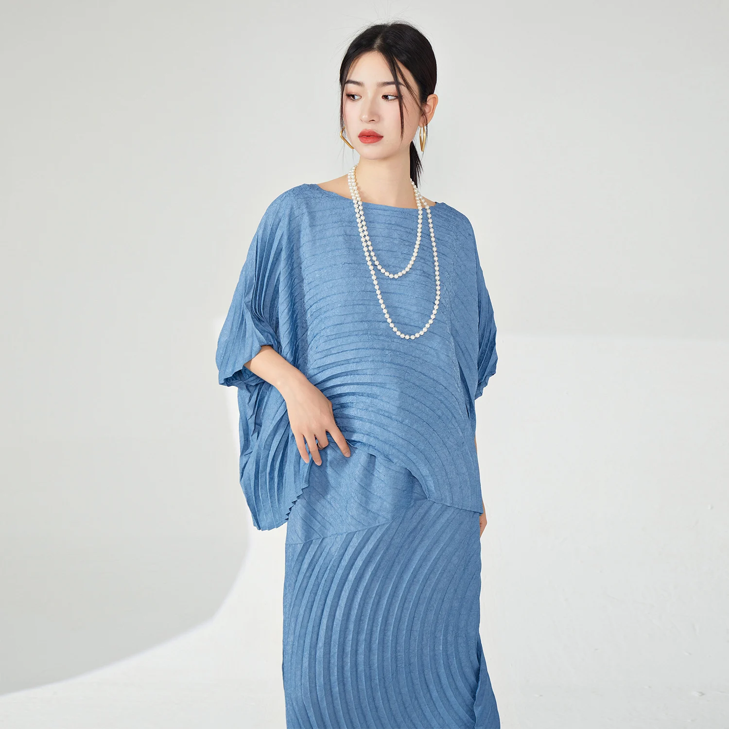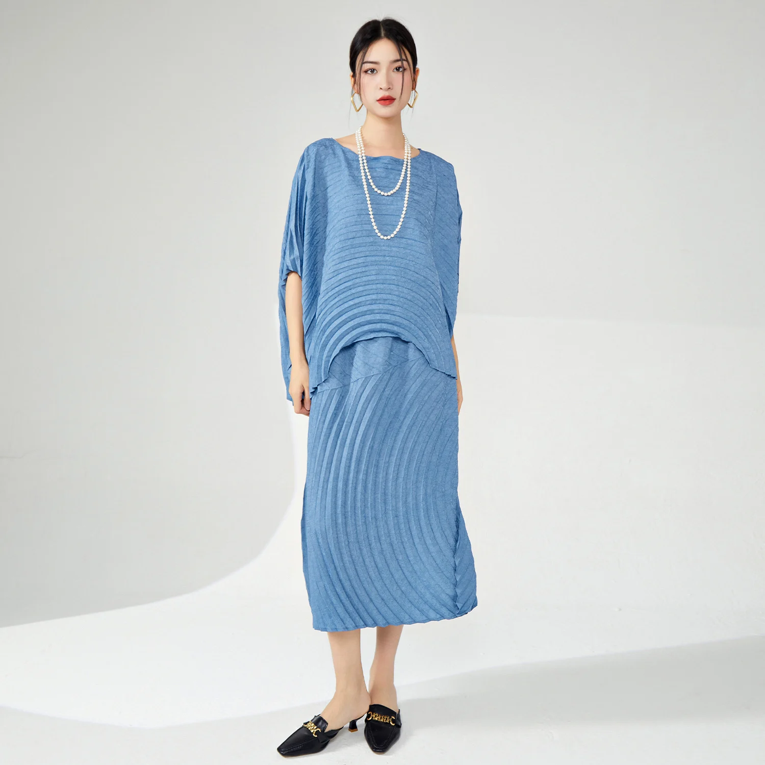 High Quality Large Size Women's Casual Two-Piece Set Loose Fit Pleated Skirt Top With Print Decoration Made Polyester Fabric