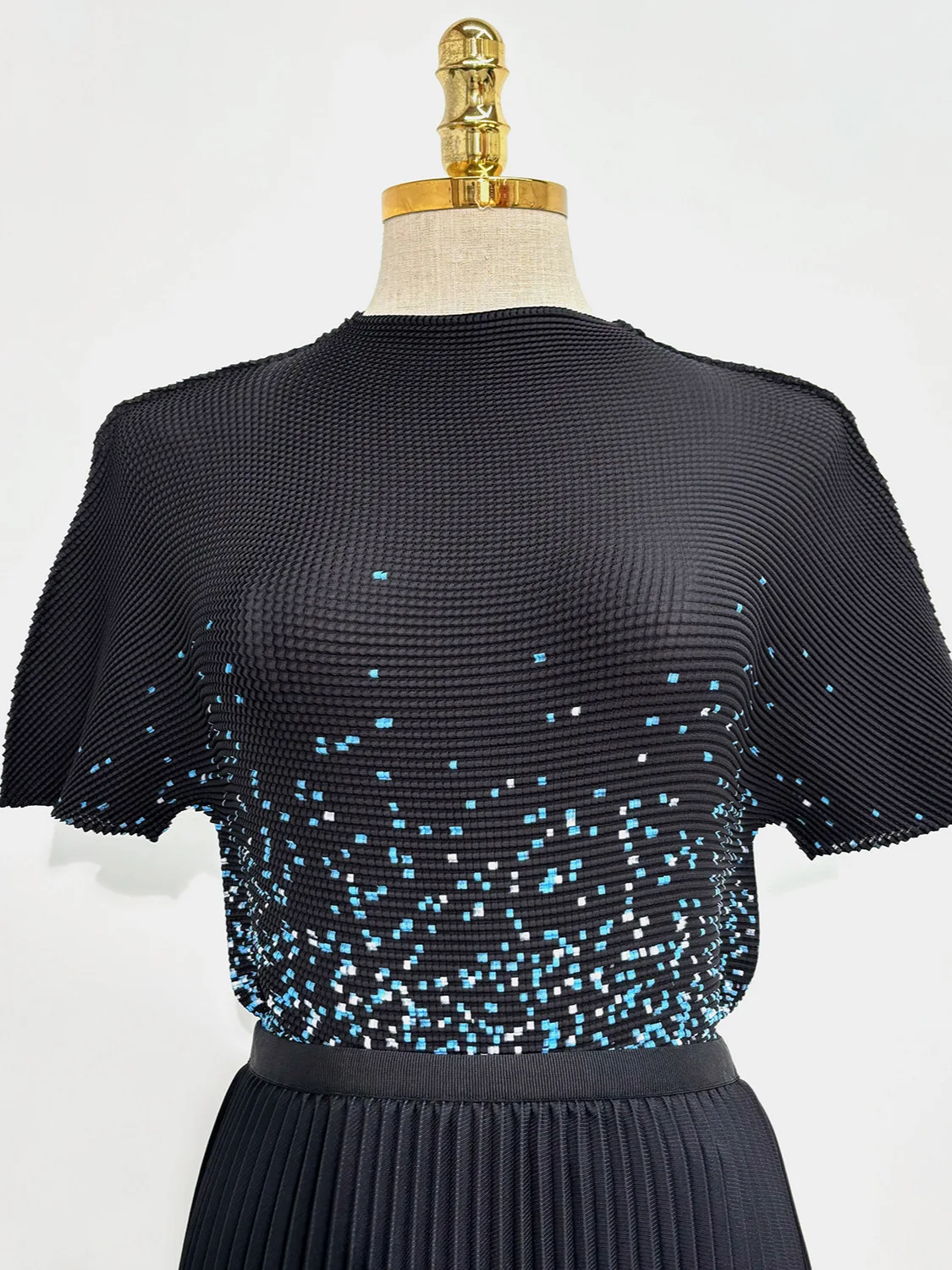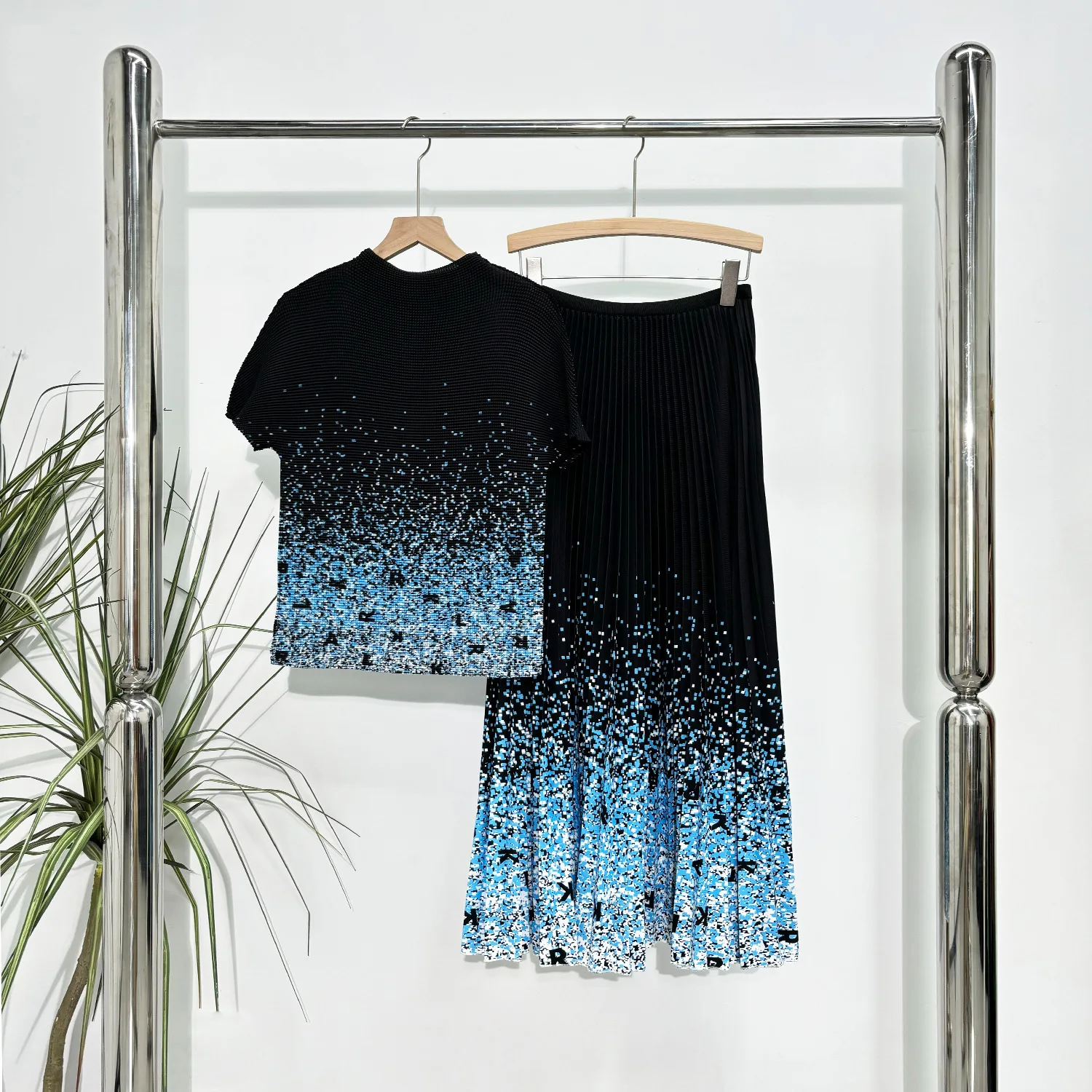 Factory Wholesale Women's Elegant Two-piece Summer Stretch Loose Short-sleeved Top and A-line Skirt Set