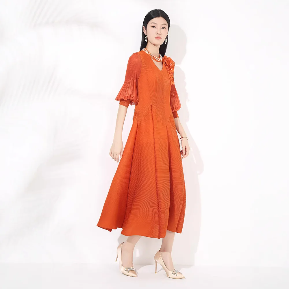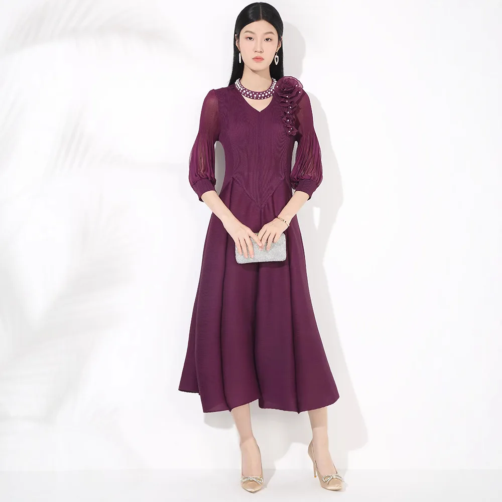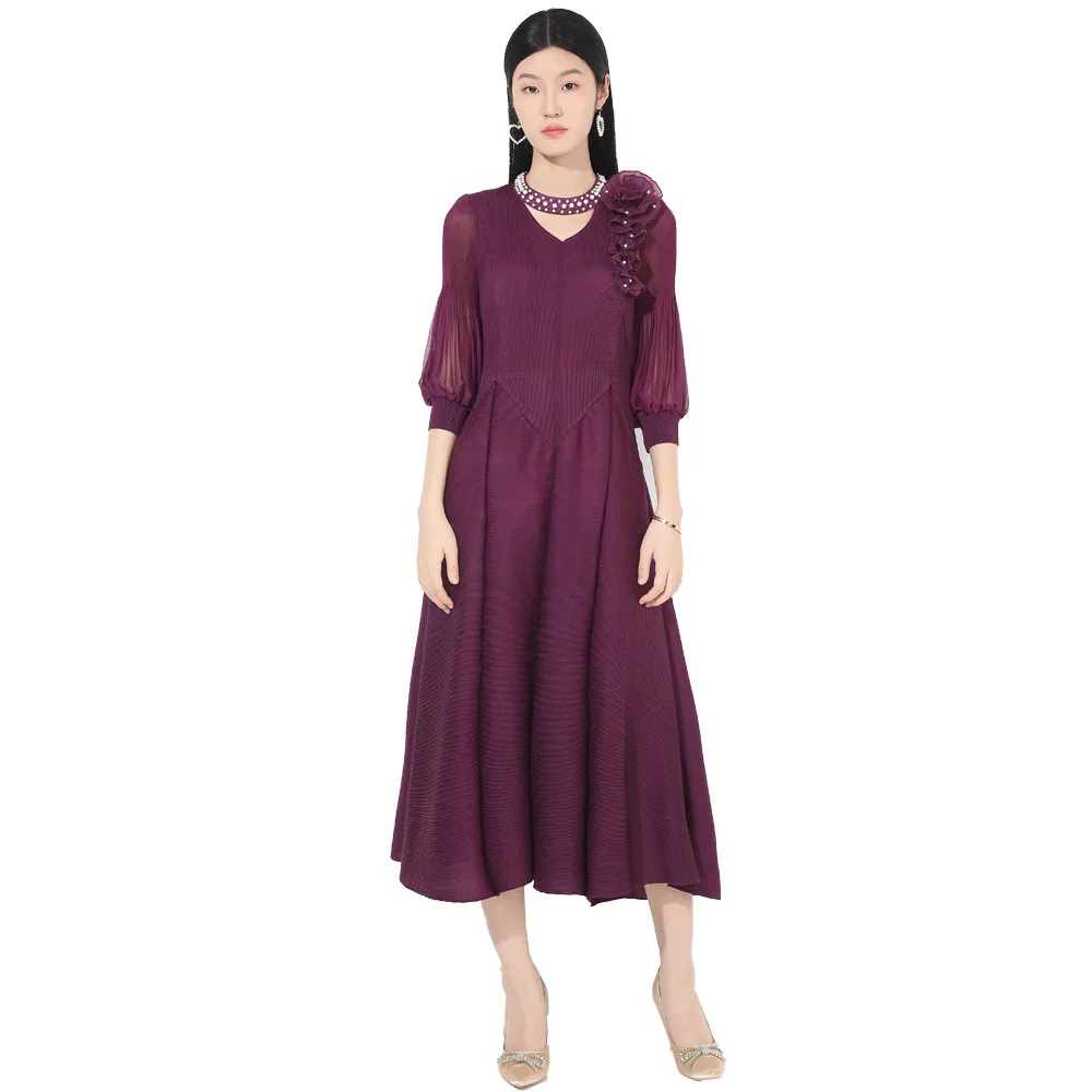 New Arrival 2025 Women Elegant Dress Design High Quality Stretch Polyester Casual Dress Miyake Pleated Dress
