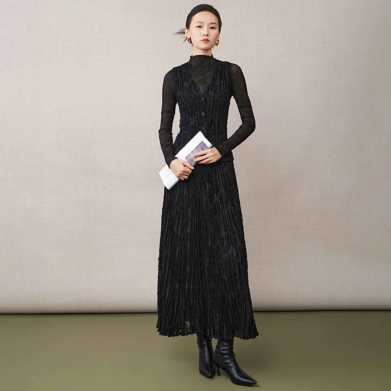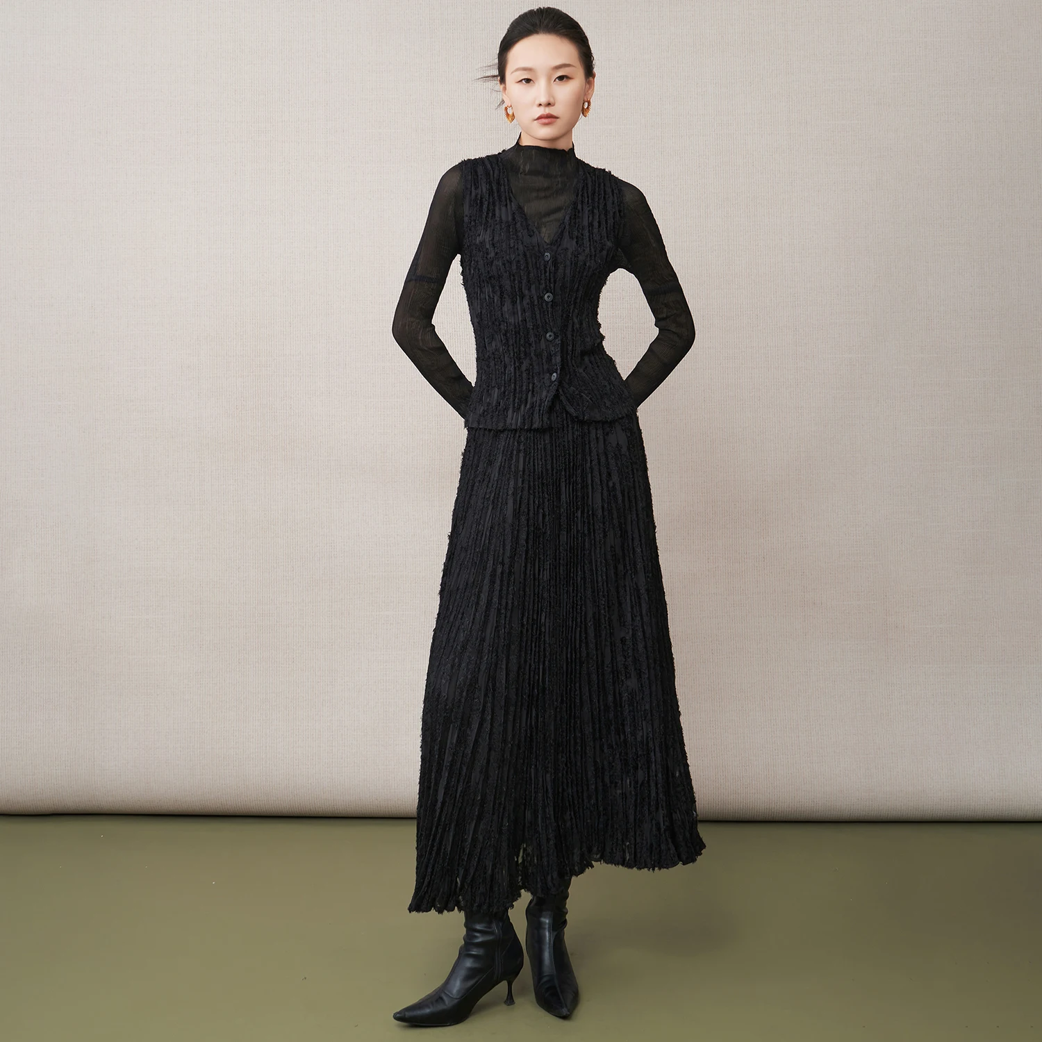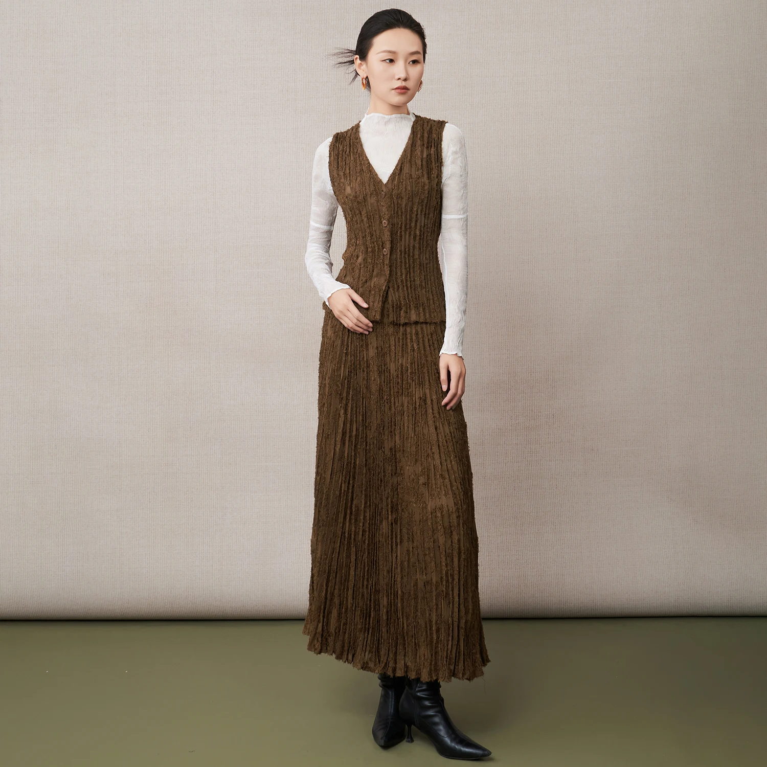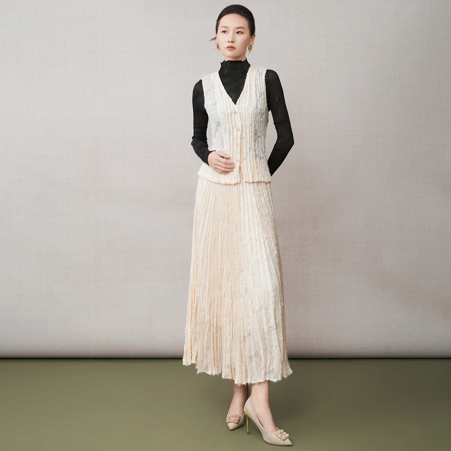 Factory Direct Women's Elegant Two-Piece Set Plush Vest Top and Skirt Set with High-Quality Miyake Pleated Set