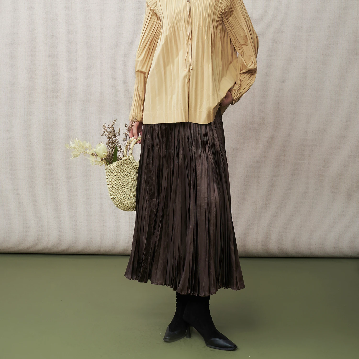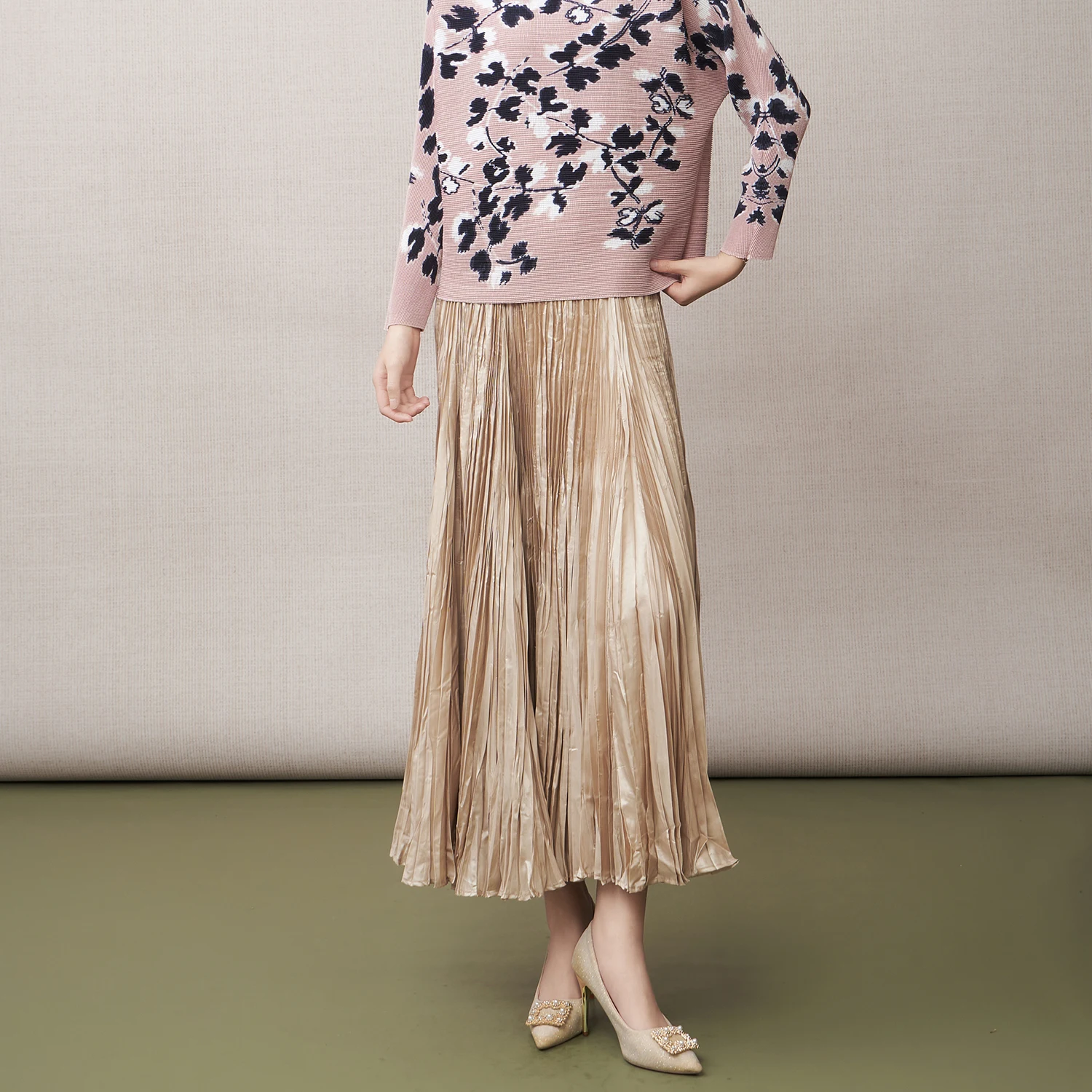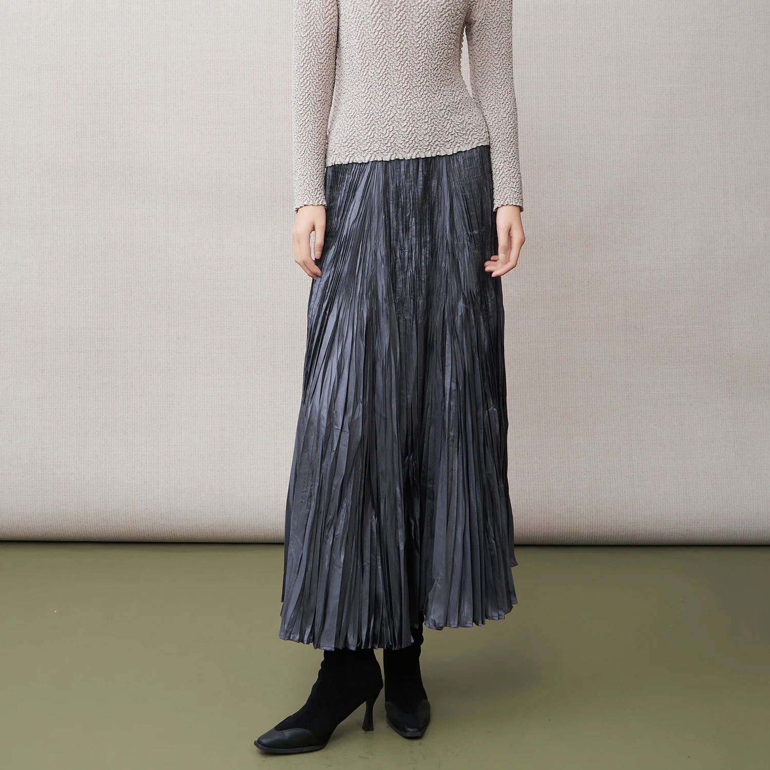2025 New Autumn Design Miyake Pleated Midi Skirt Solid Color Casual A-line Midi Skirt Elegant Midi Skirt for Women