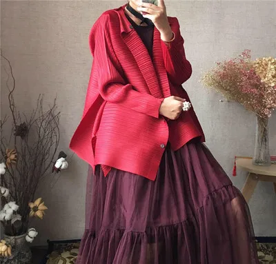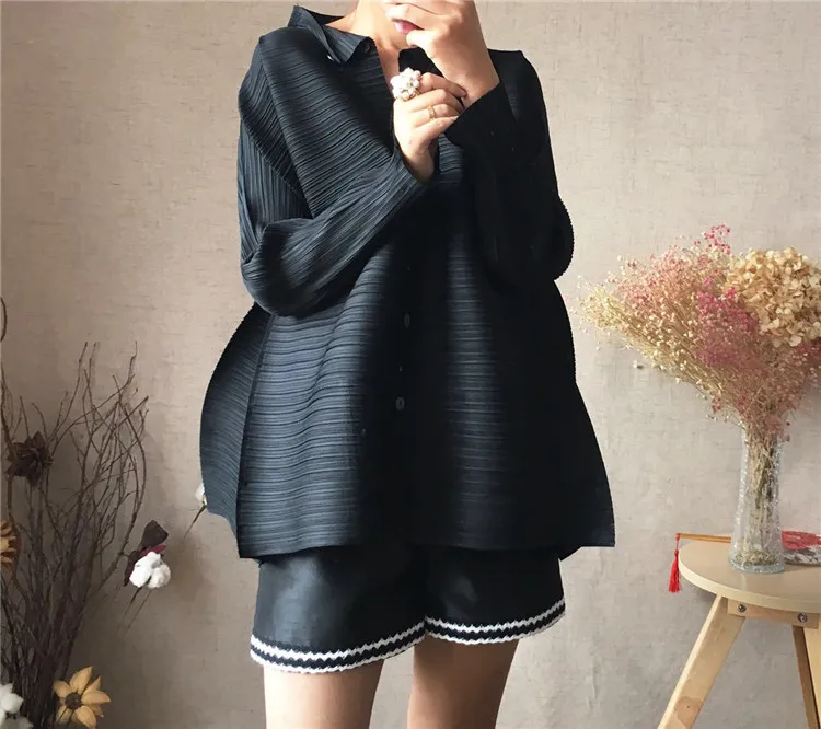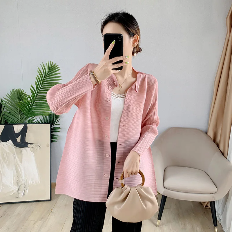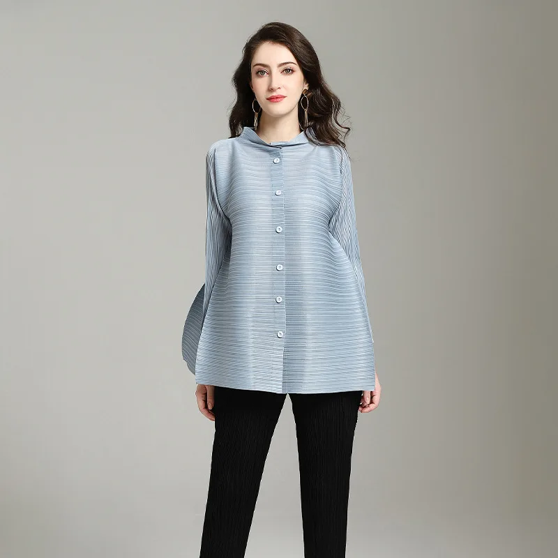 Wholesale Clothing Women Miyake Pleated Top Fashionable and Elegant Cardigan Button Down One Size Ladies T-Shirt