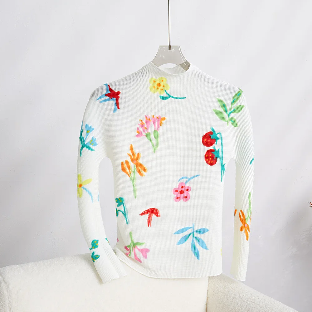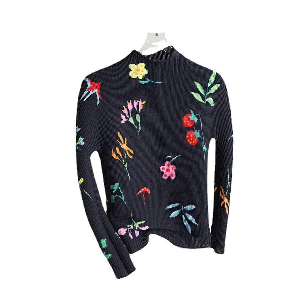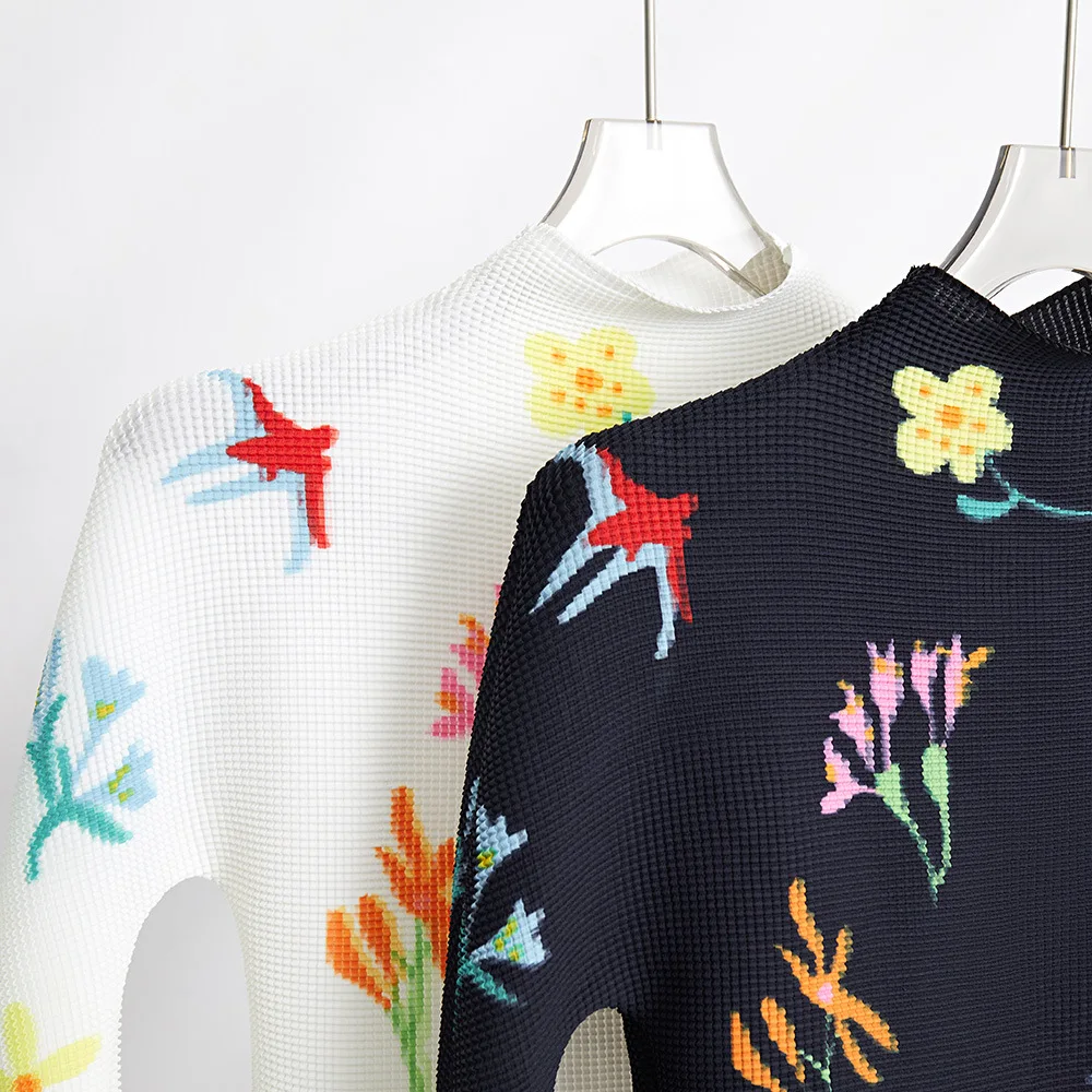 High Quality Wholesale Factory Miyake Pleated Flowers Top Women Casual Style Shirt Pleats Long-Sleeved T-Shirt