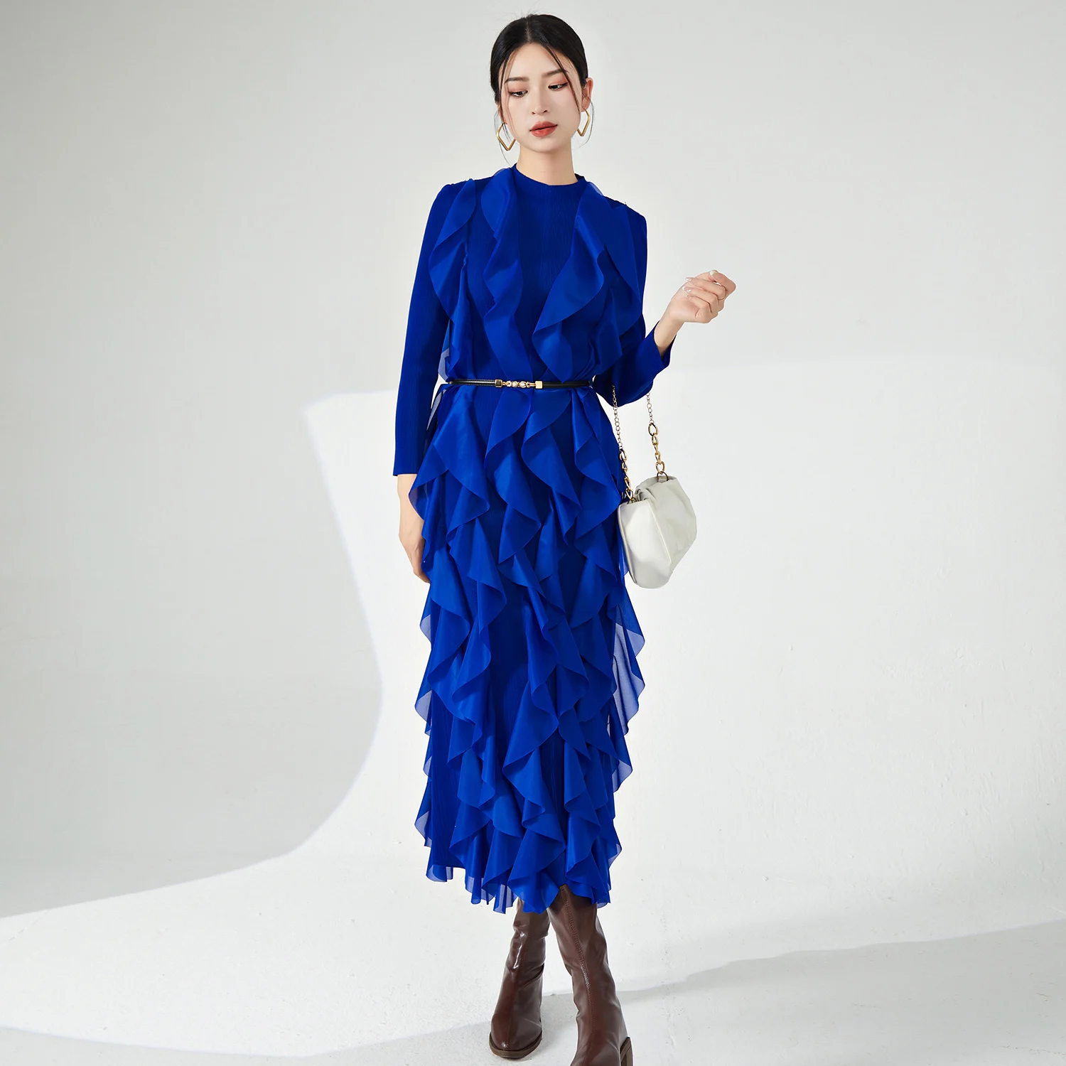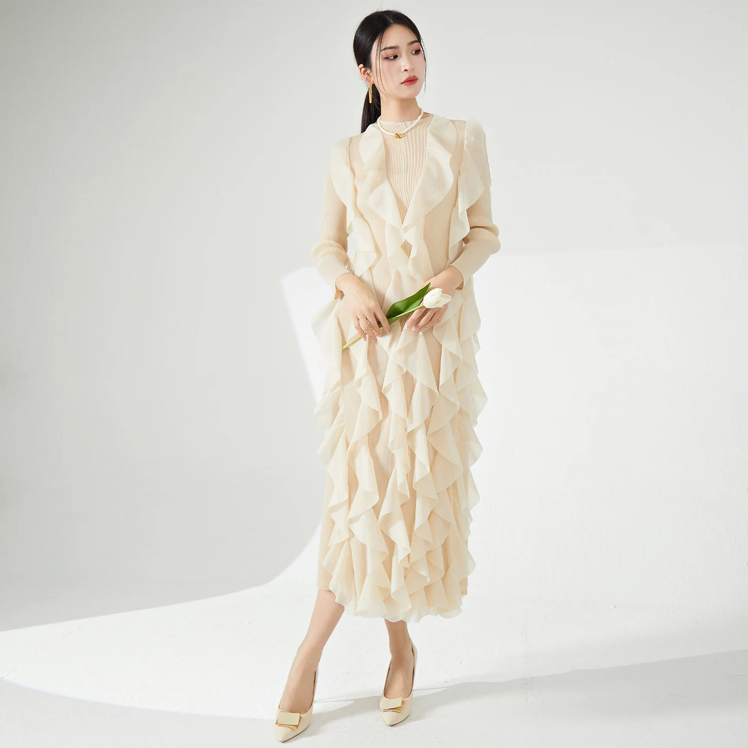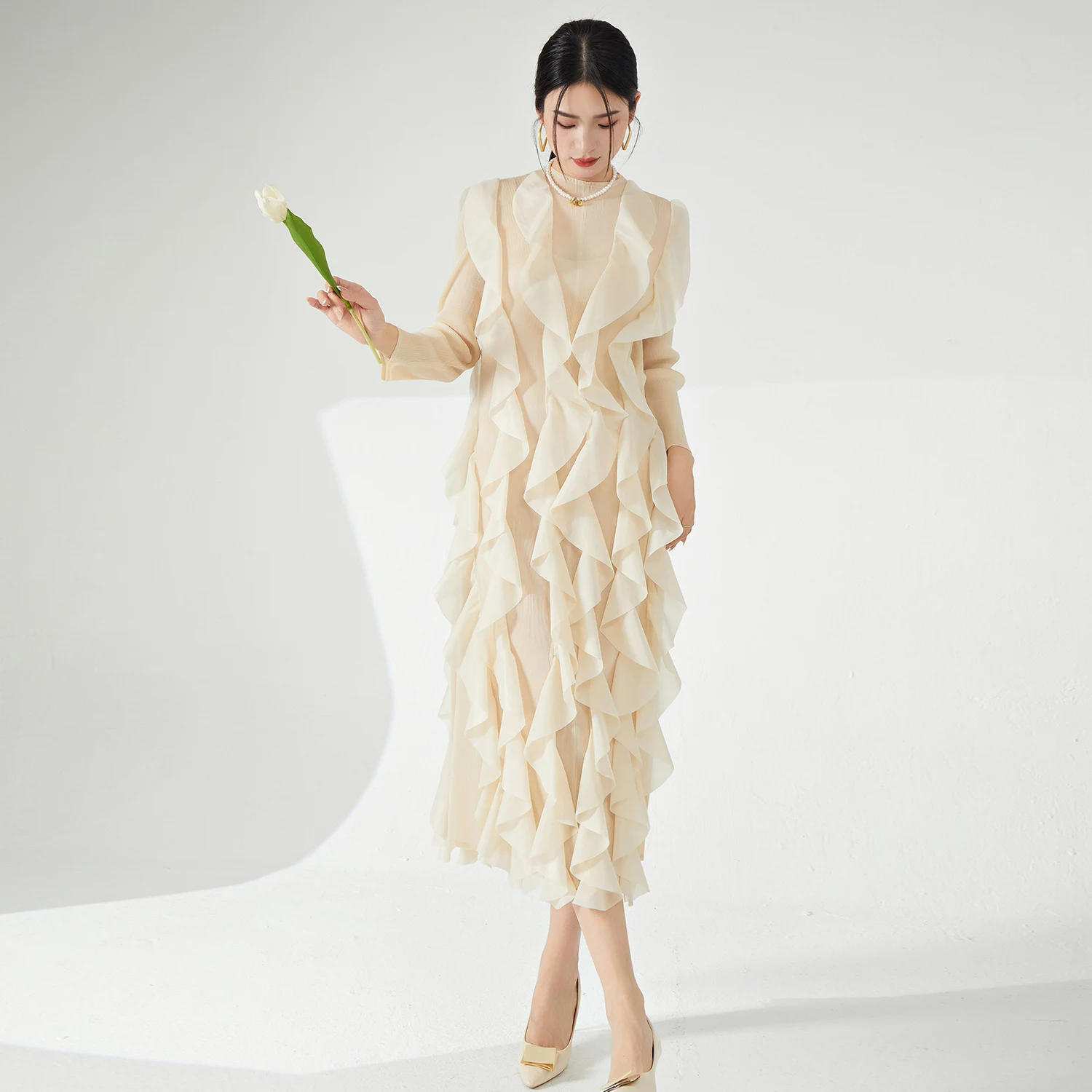 2025 Newest Miyake Women's Best Seller Casual Style Pleated Fabric Dress Elegant Irregular Personality Loose Stretch Long Dress