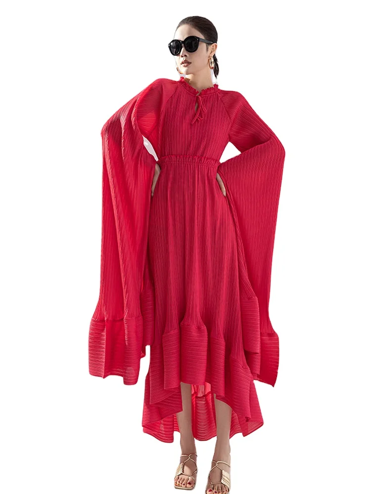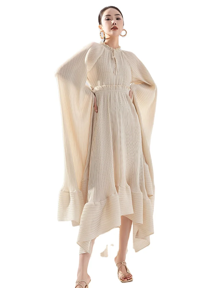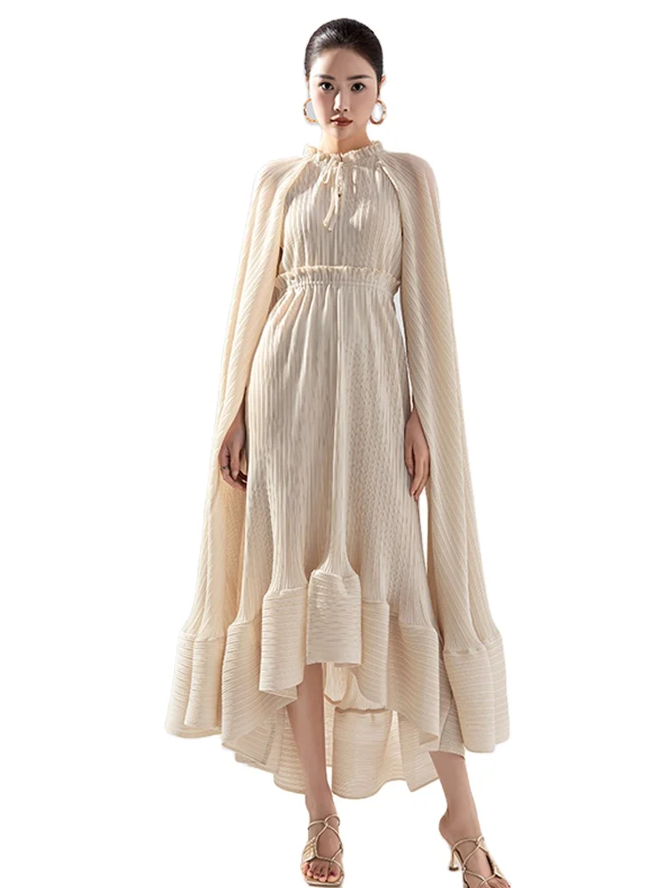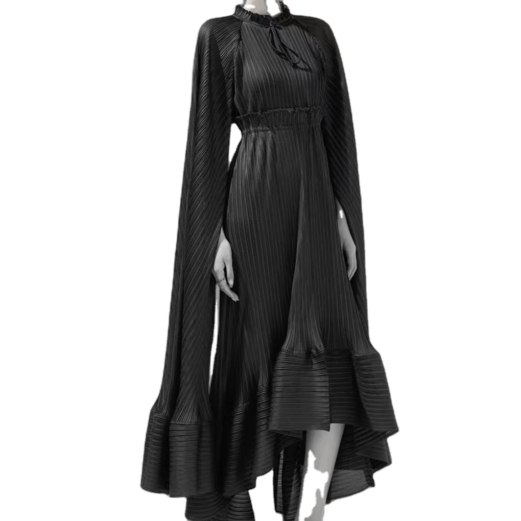 European American Style Women's Fashionable Loose Temptation Long Dress Ruffle Collar Cape Design Dress Plus Size Women