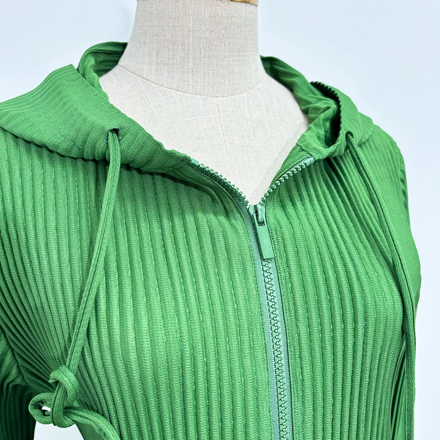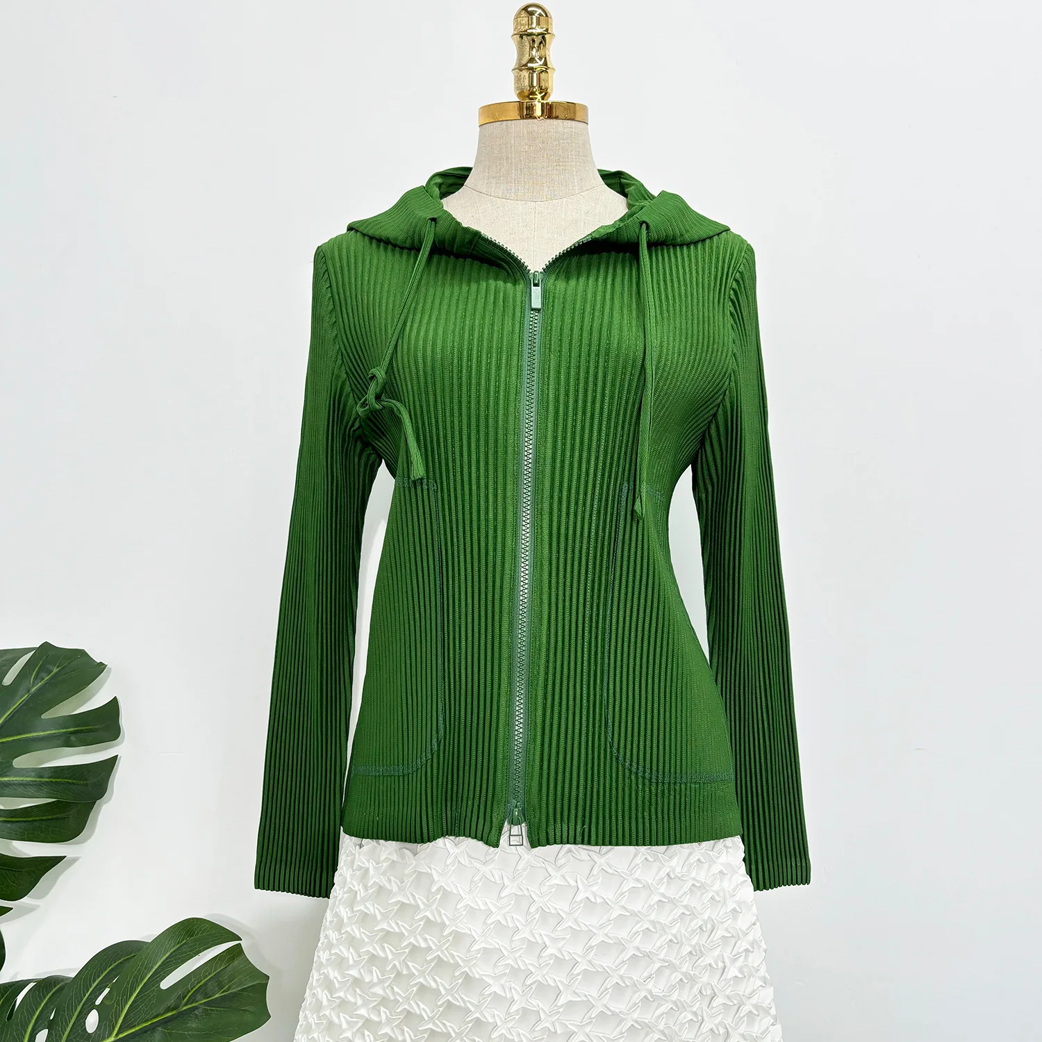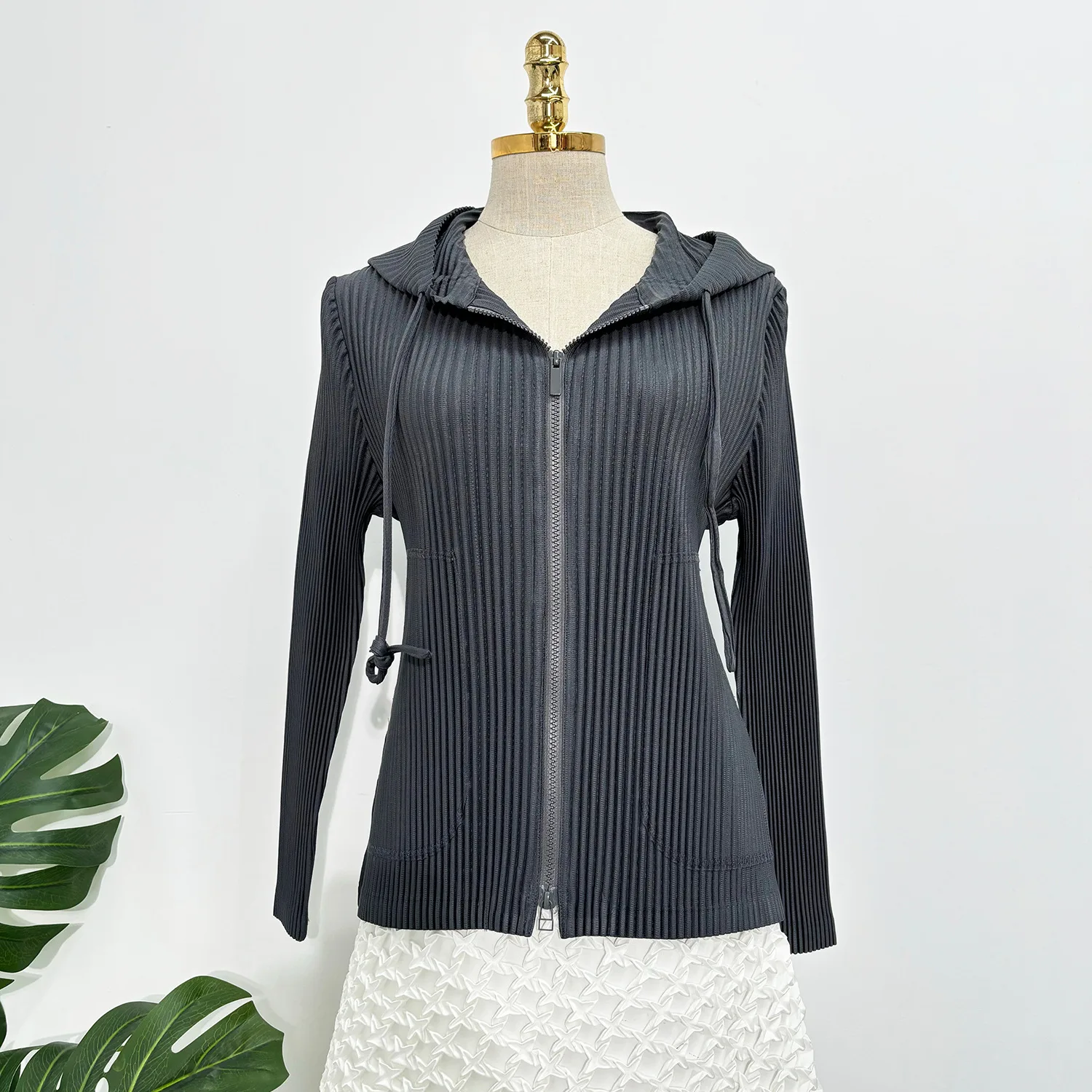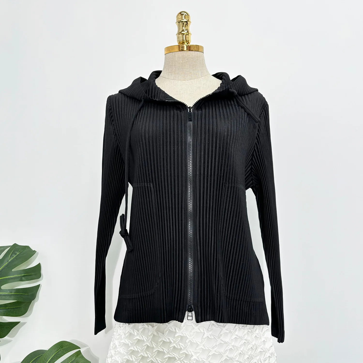 2025 Latest Autumn Women's Fashion Top High-Quality Solid Color Hooded Jacket Miyake Pleated Top