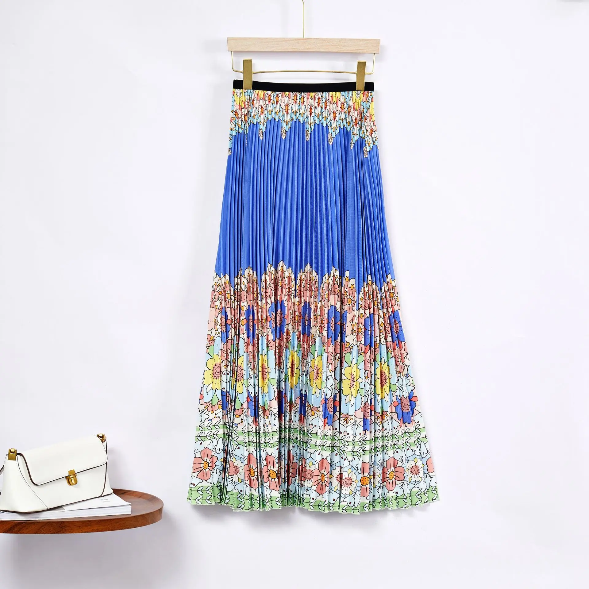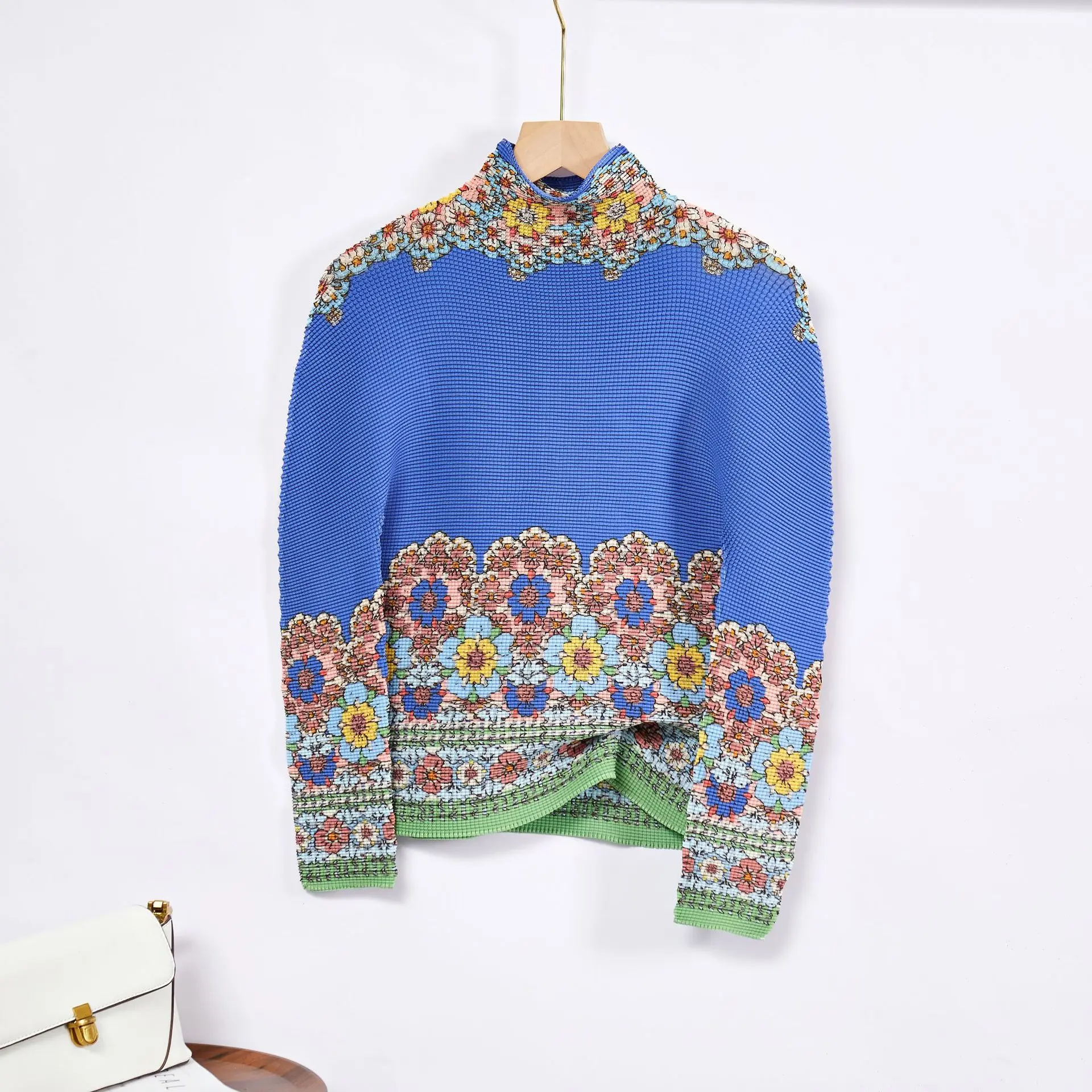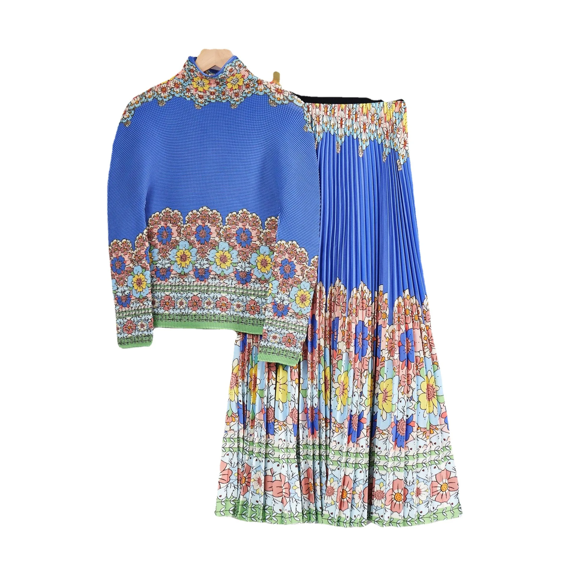 Wholesale Fashion Direct Women's Elegant Two-Piece Set Stretch Printed Long-Sleeved Top and Skirt Miyake Pleated Set