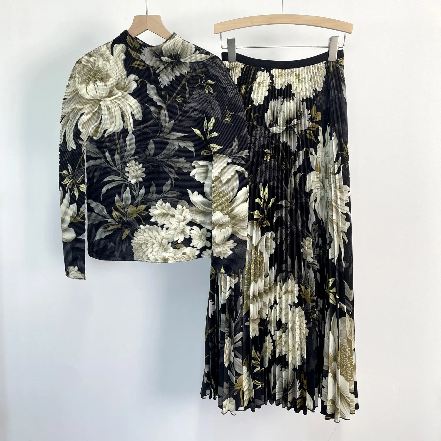Fast Shipping Miyake Pleated Two-piece Design Loose Elastic Printed Casual Set Women's Elegant Set