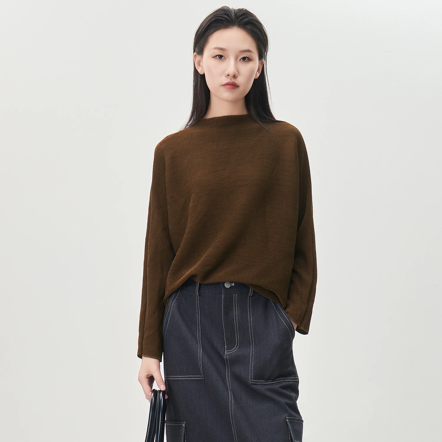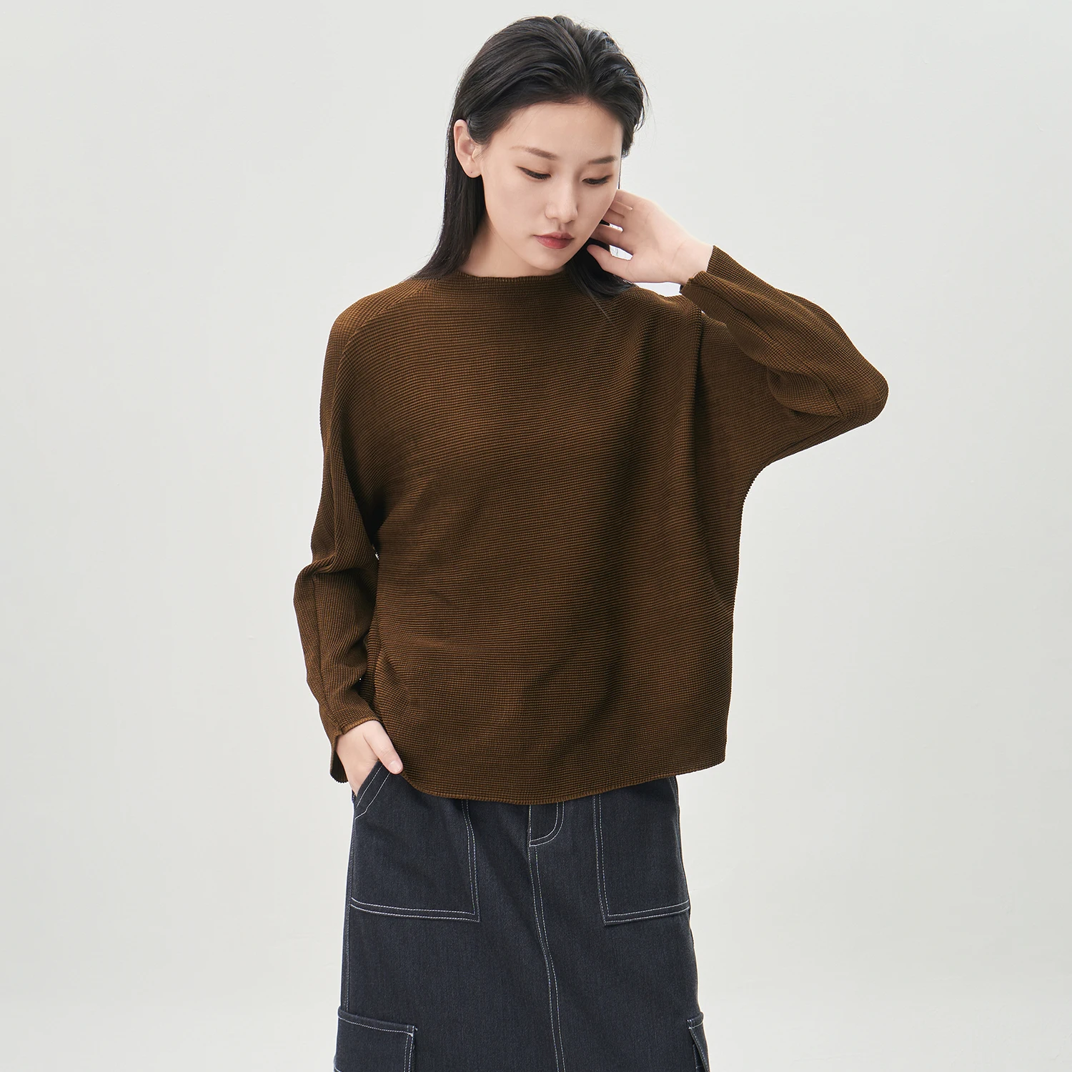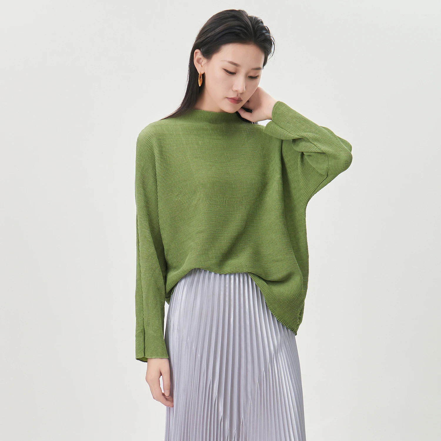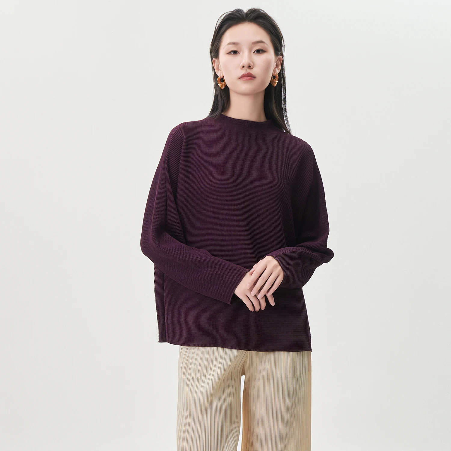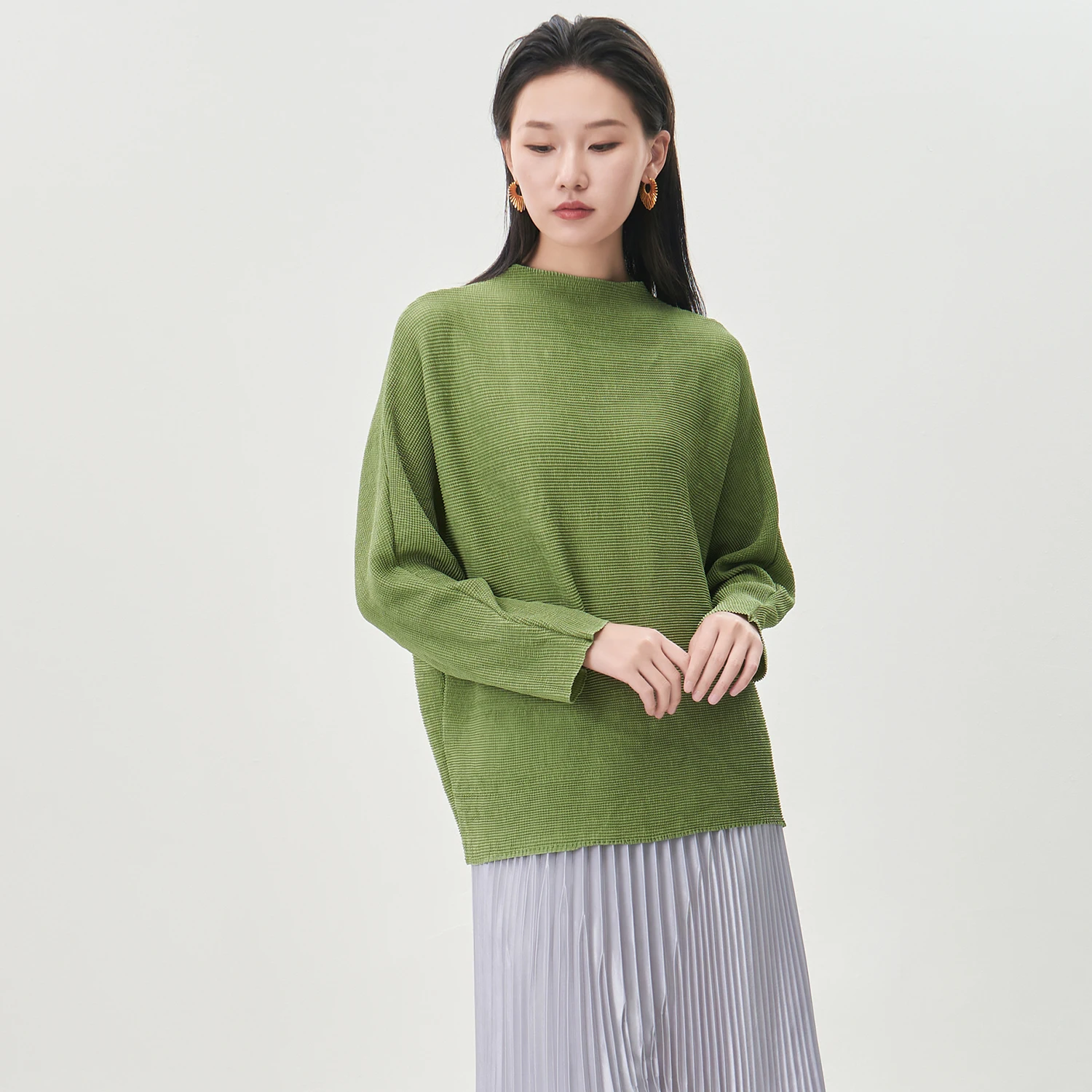 Miyake Long-sleeved T-shirt High Quality Women's Fashion Shirt Loose Large Size Solid Color Casual Top