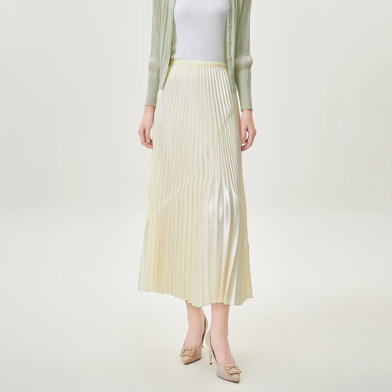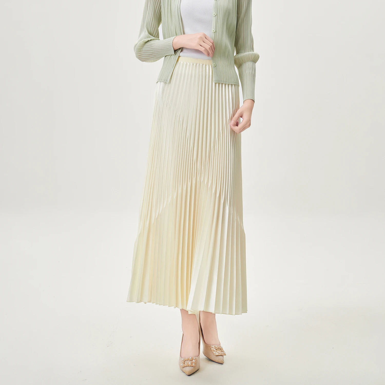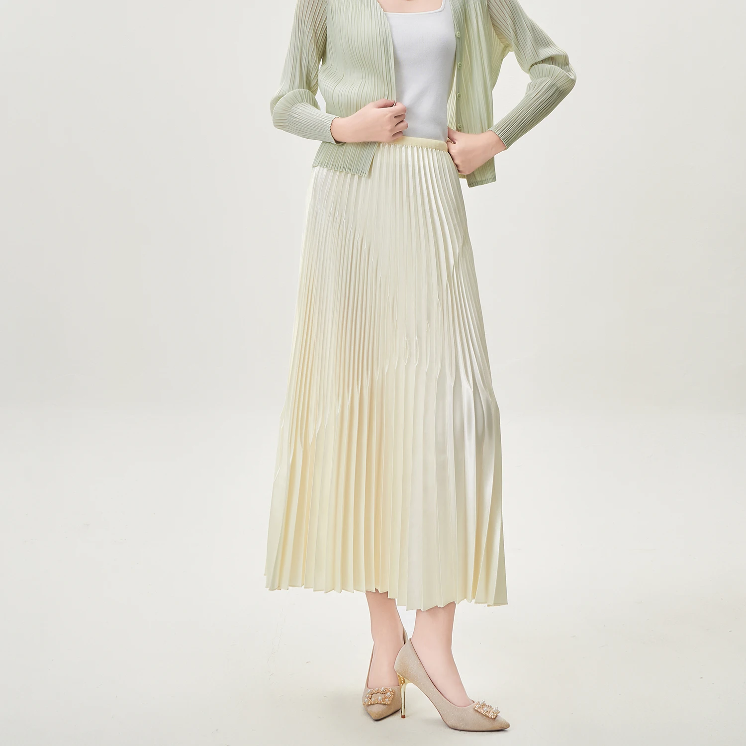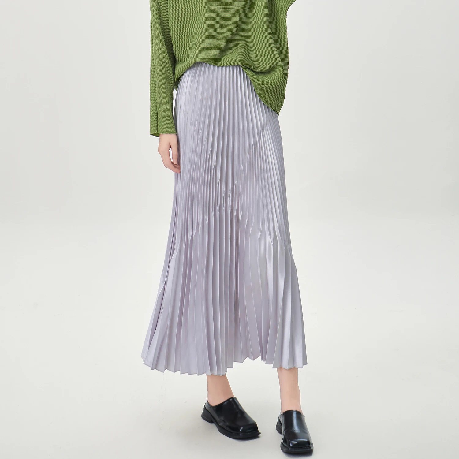 2025 Latest Design Miyake Pleated Skirt Design Solid Color Loose Casual A-line Skirt Ladies Elegant Skirt Factory Wholesale