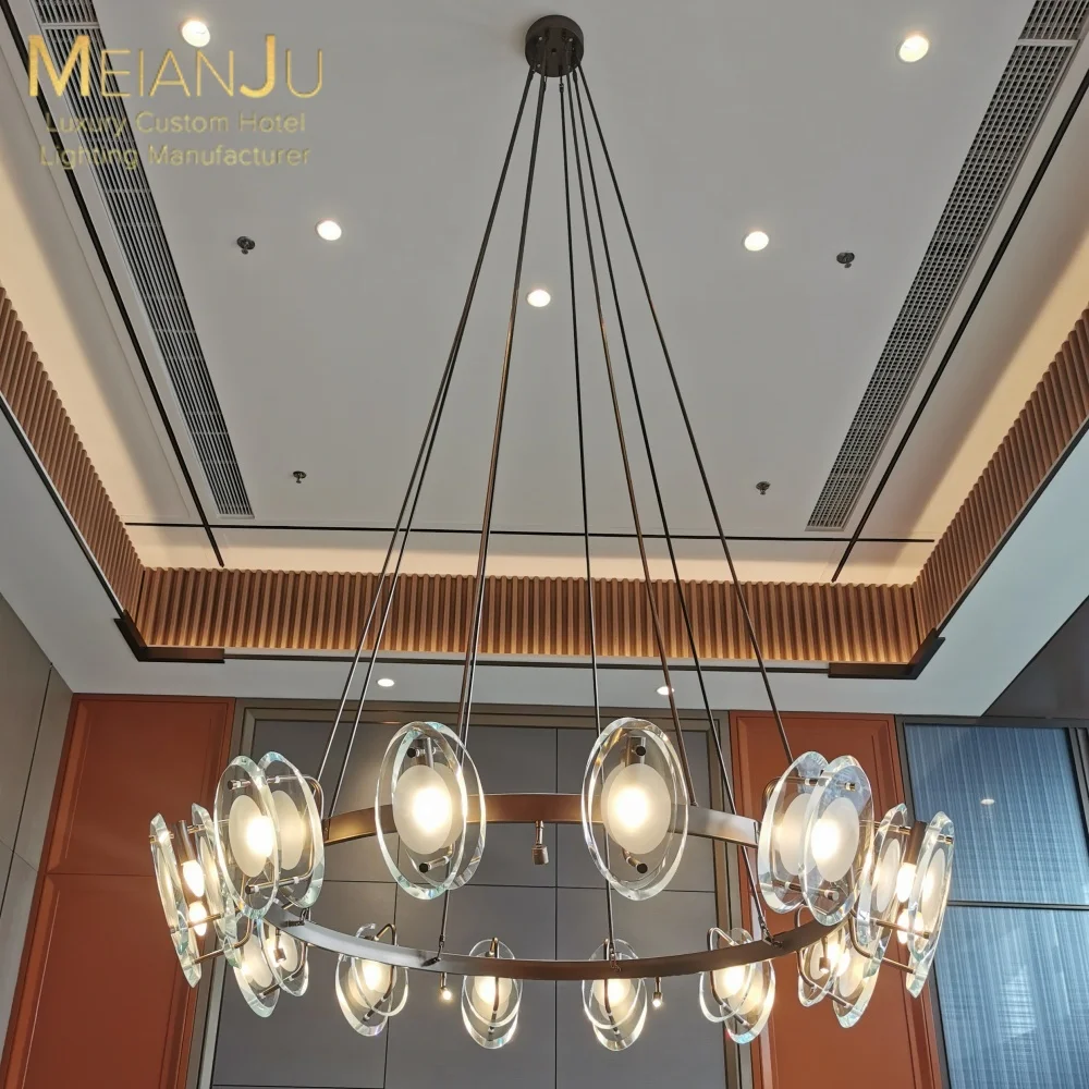 Wedding Hall Chandelier Hotel Hanging Pendant Light Customized Amber Crystal Chandelier Lighting for Lobby