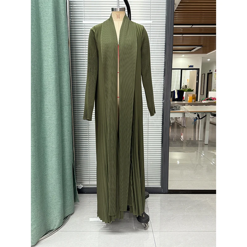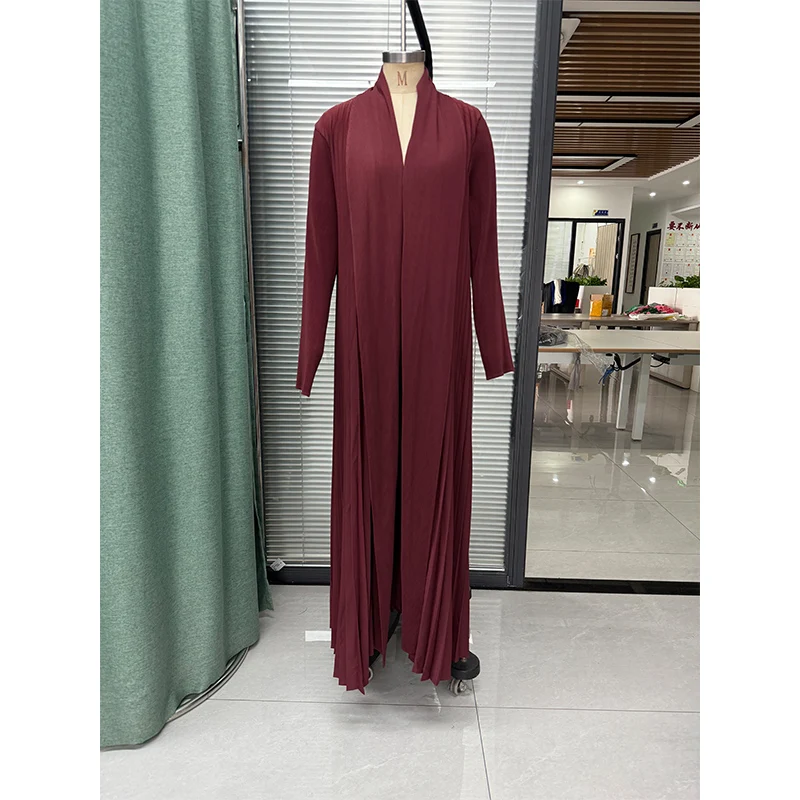 2025 Latest Design Women's Pleated Abaya High Quality Fashion Loose Arabic Abaya Solid Color Ladies Elegant Abaya