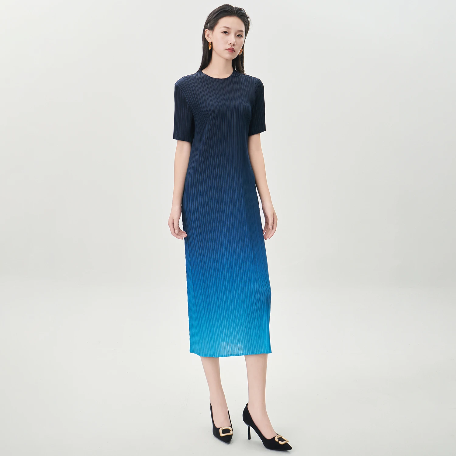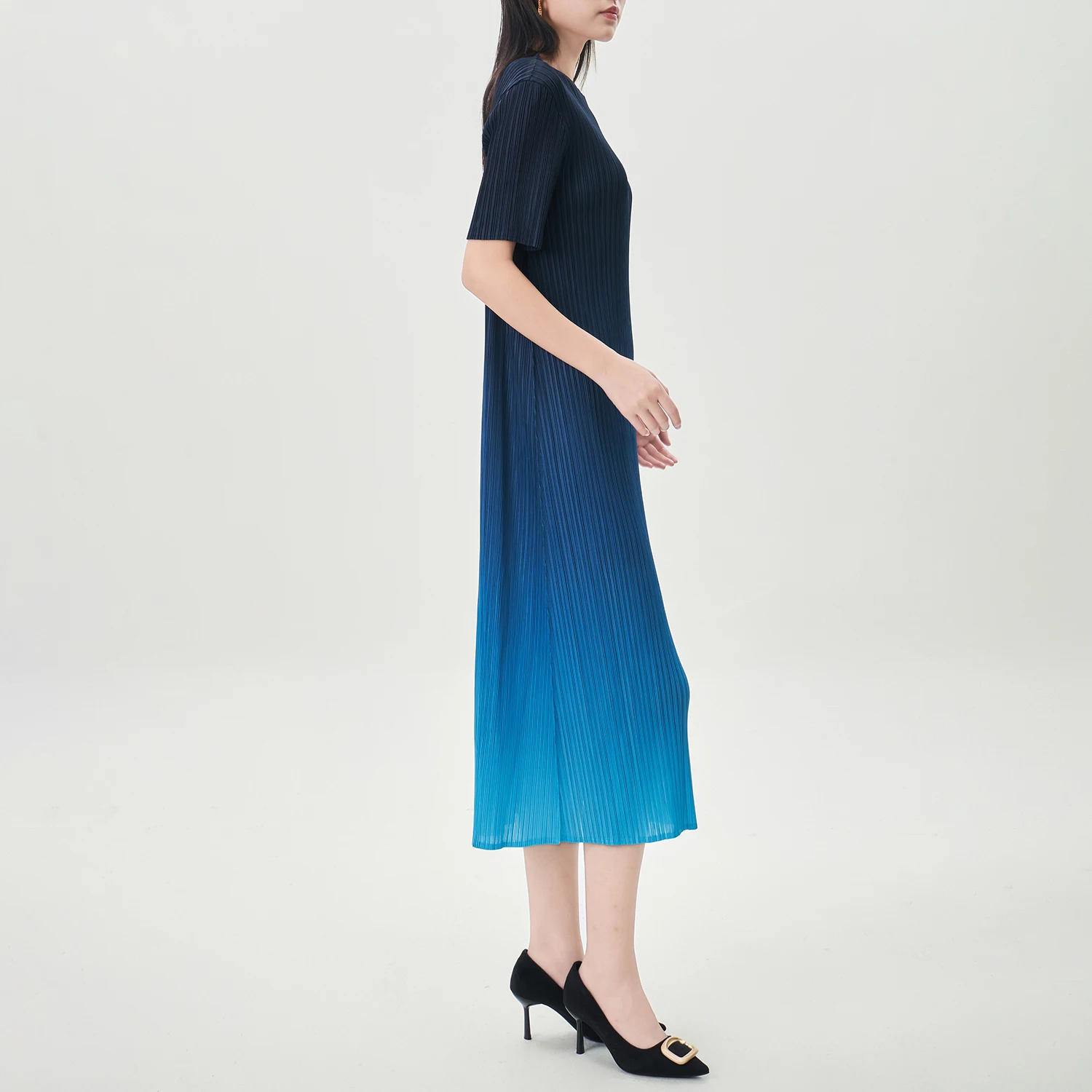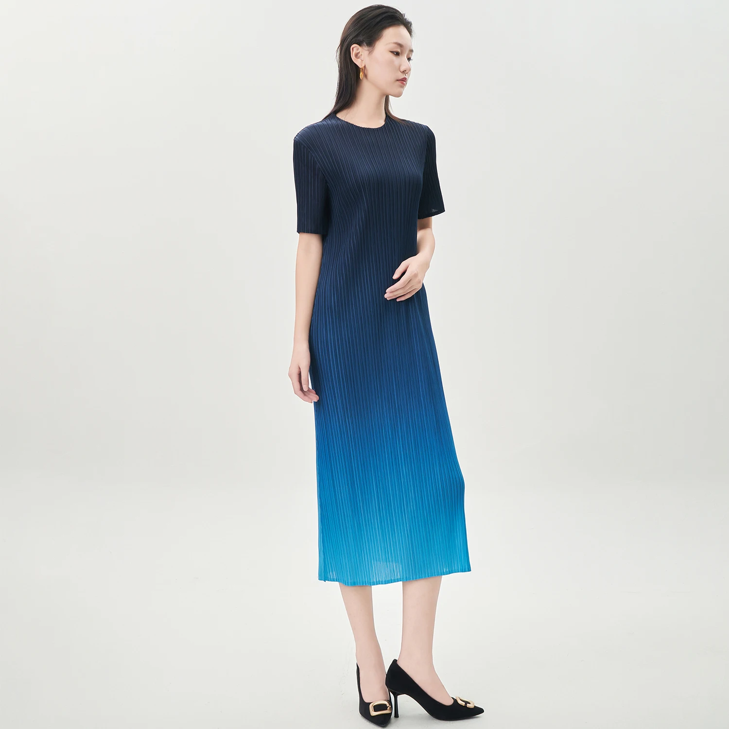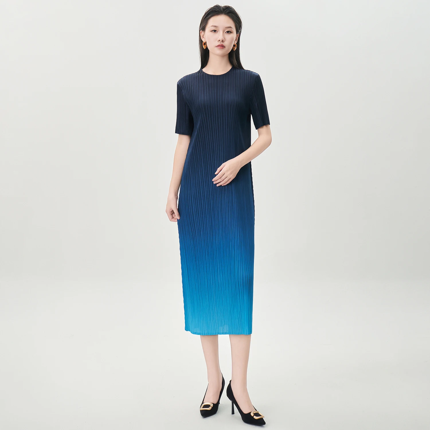 Elegance Redefined Miyake Pleated Dress Design Gradient Color Casual Dress Women's Fashion Dress