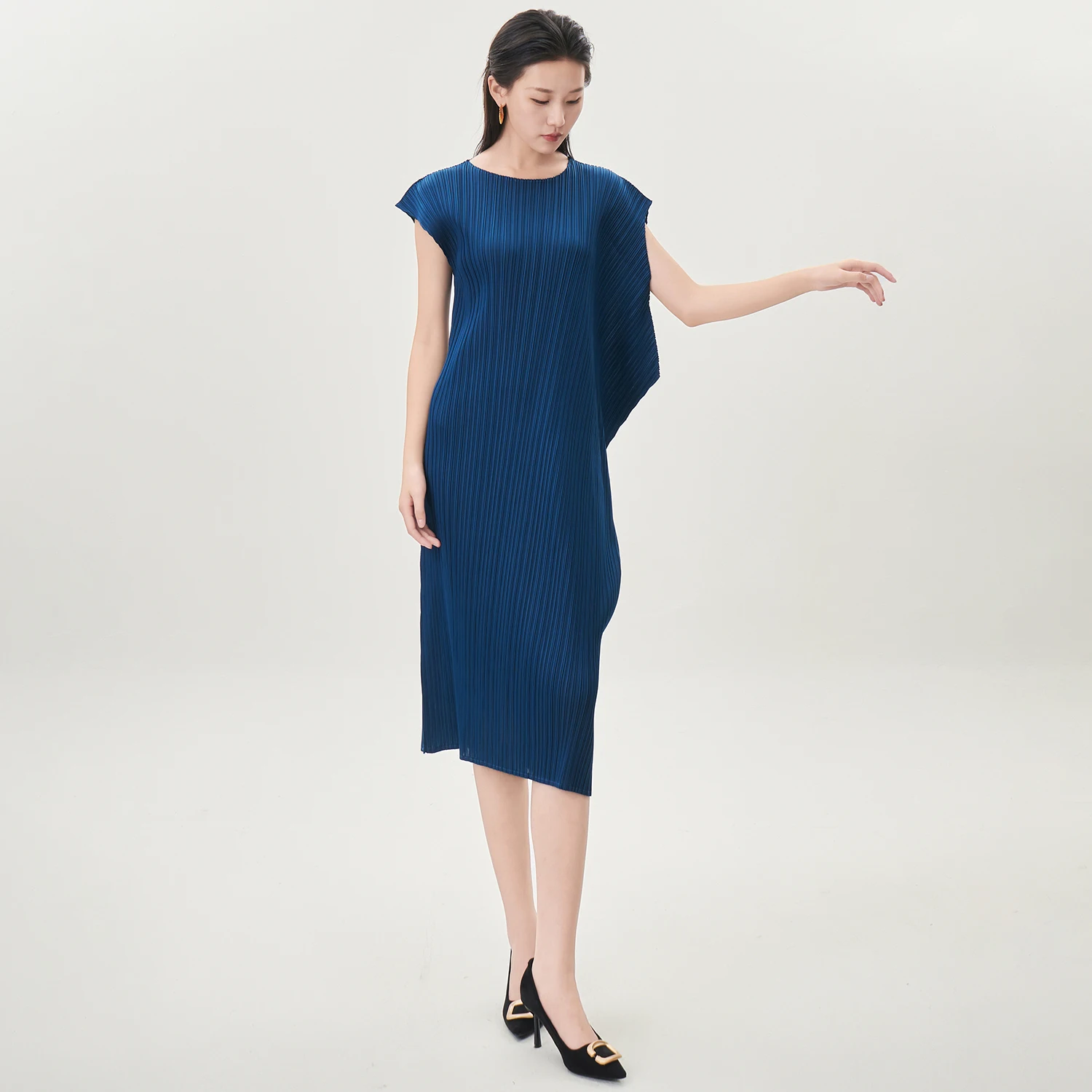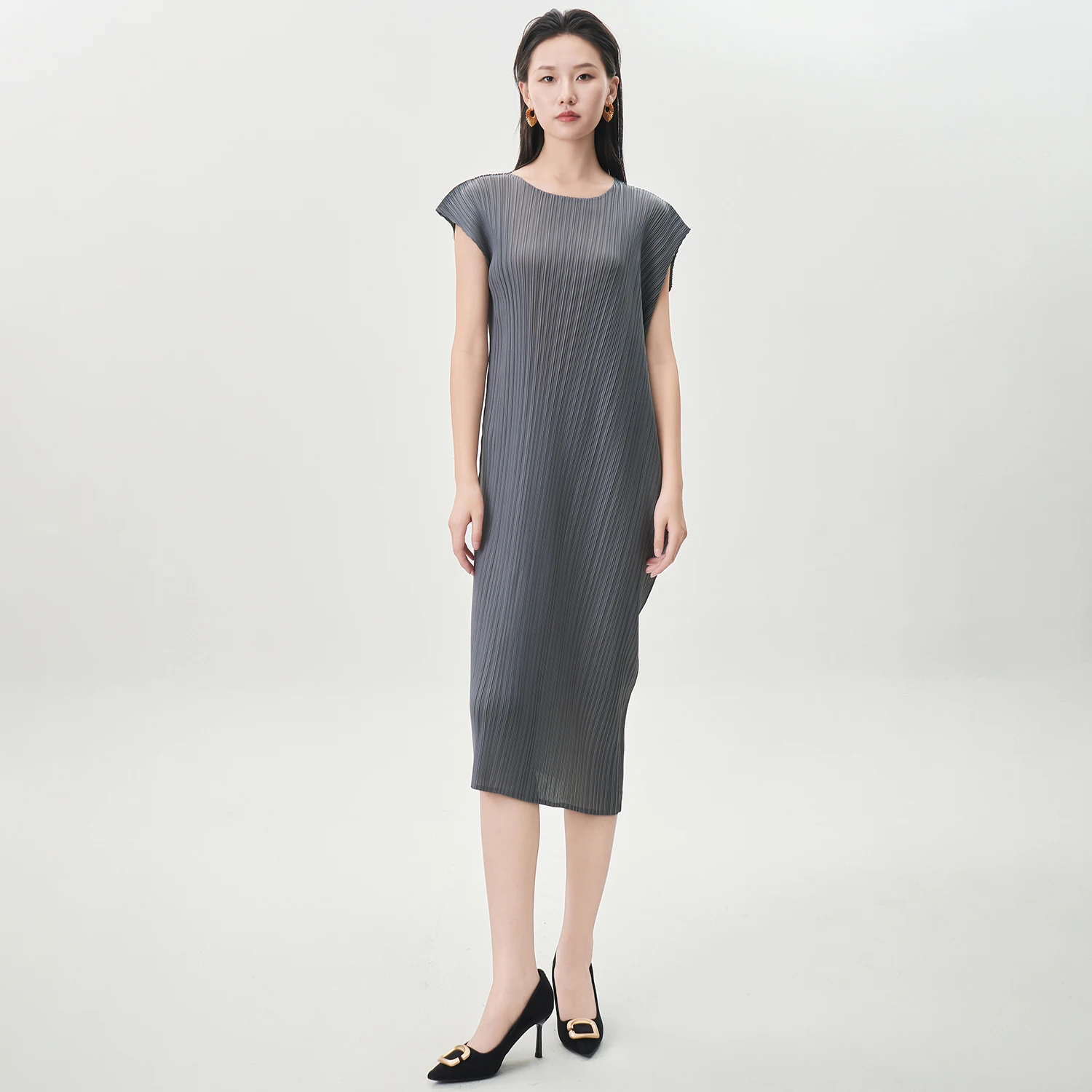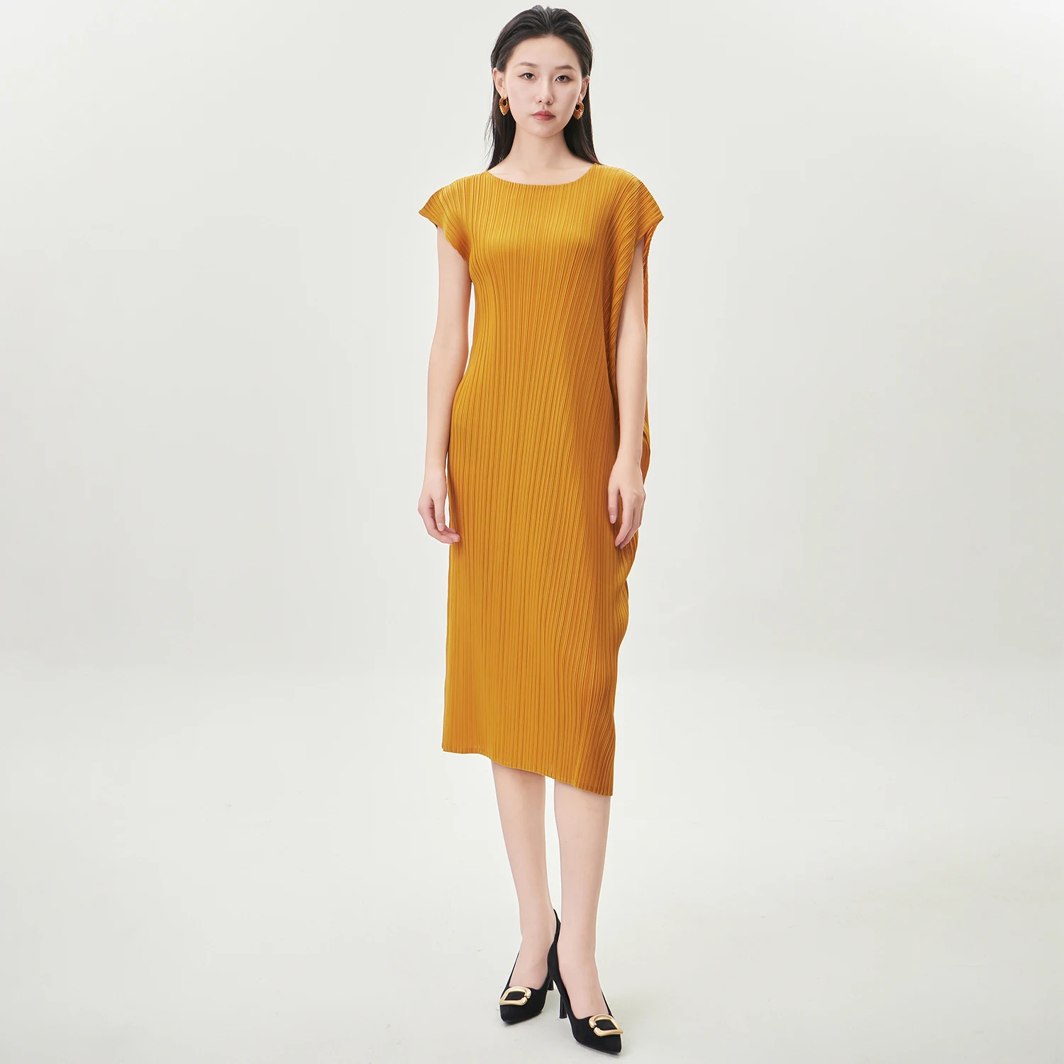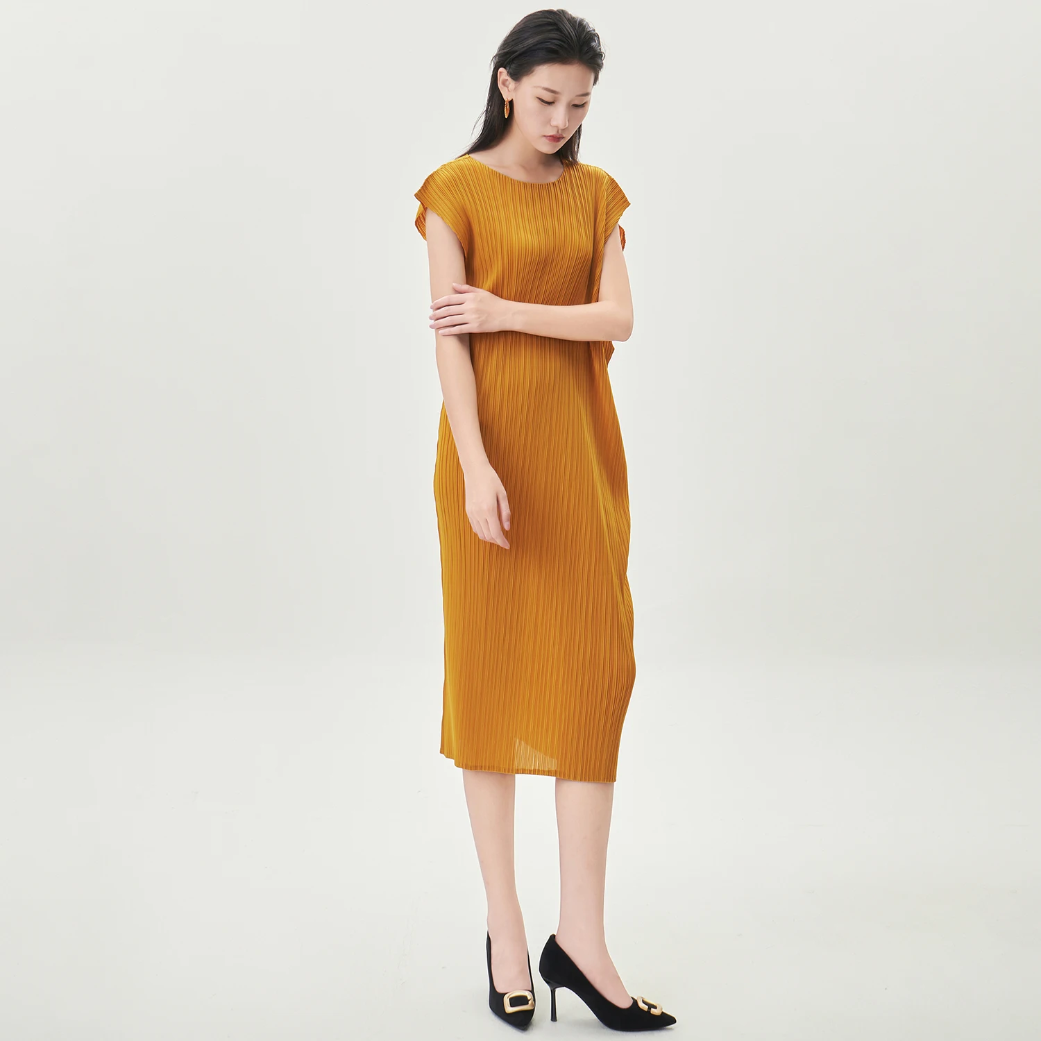 Wholesale Smocked Clothing Women's Fashion Dress Design Sense Stretch Solid Color Short Sleeve Dress Miyake Pleated Dress