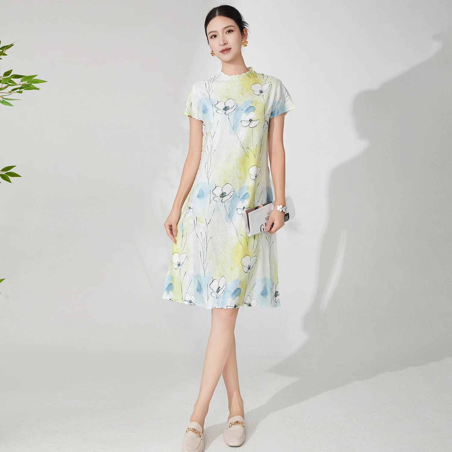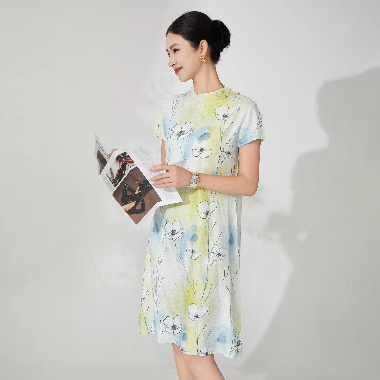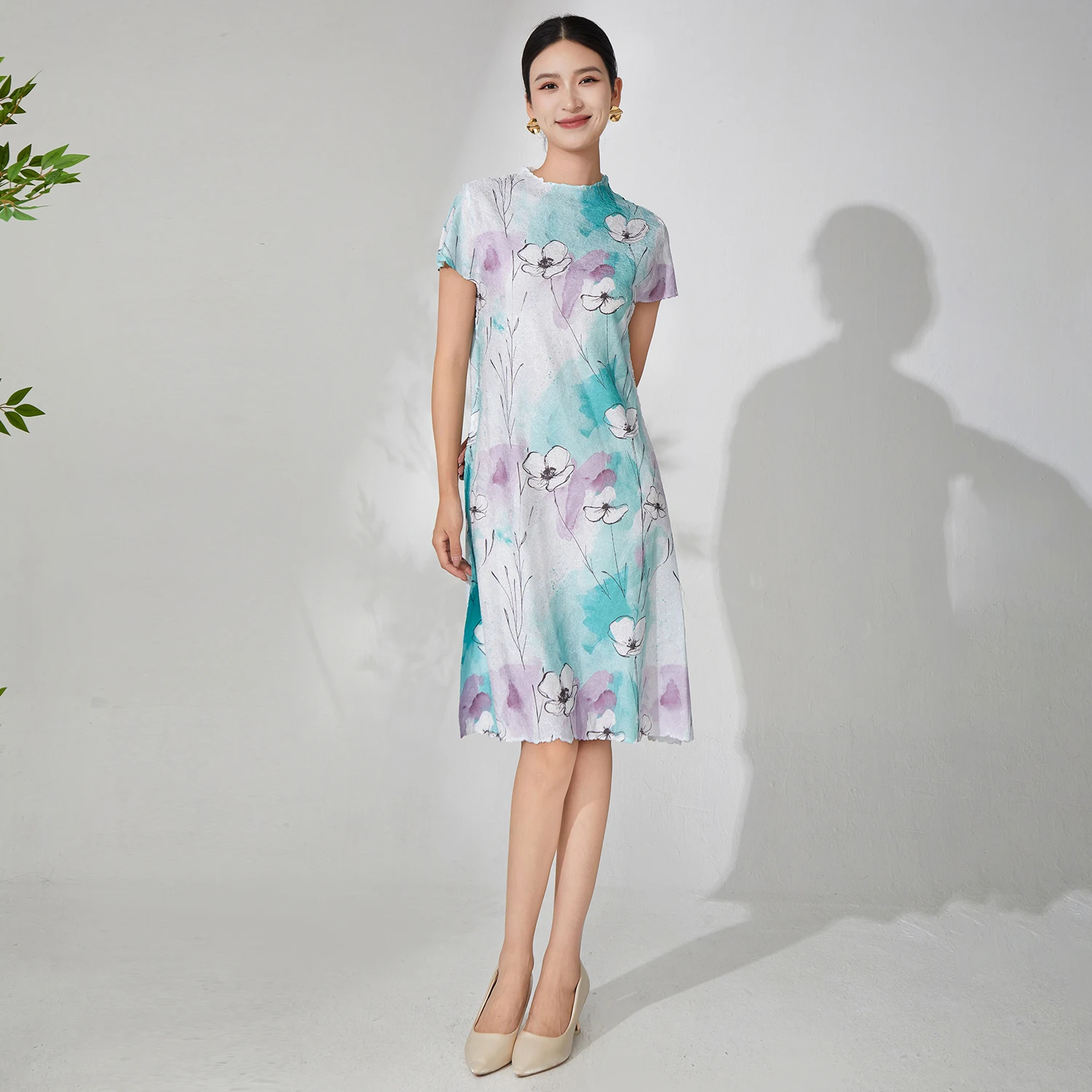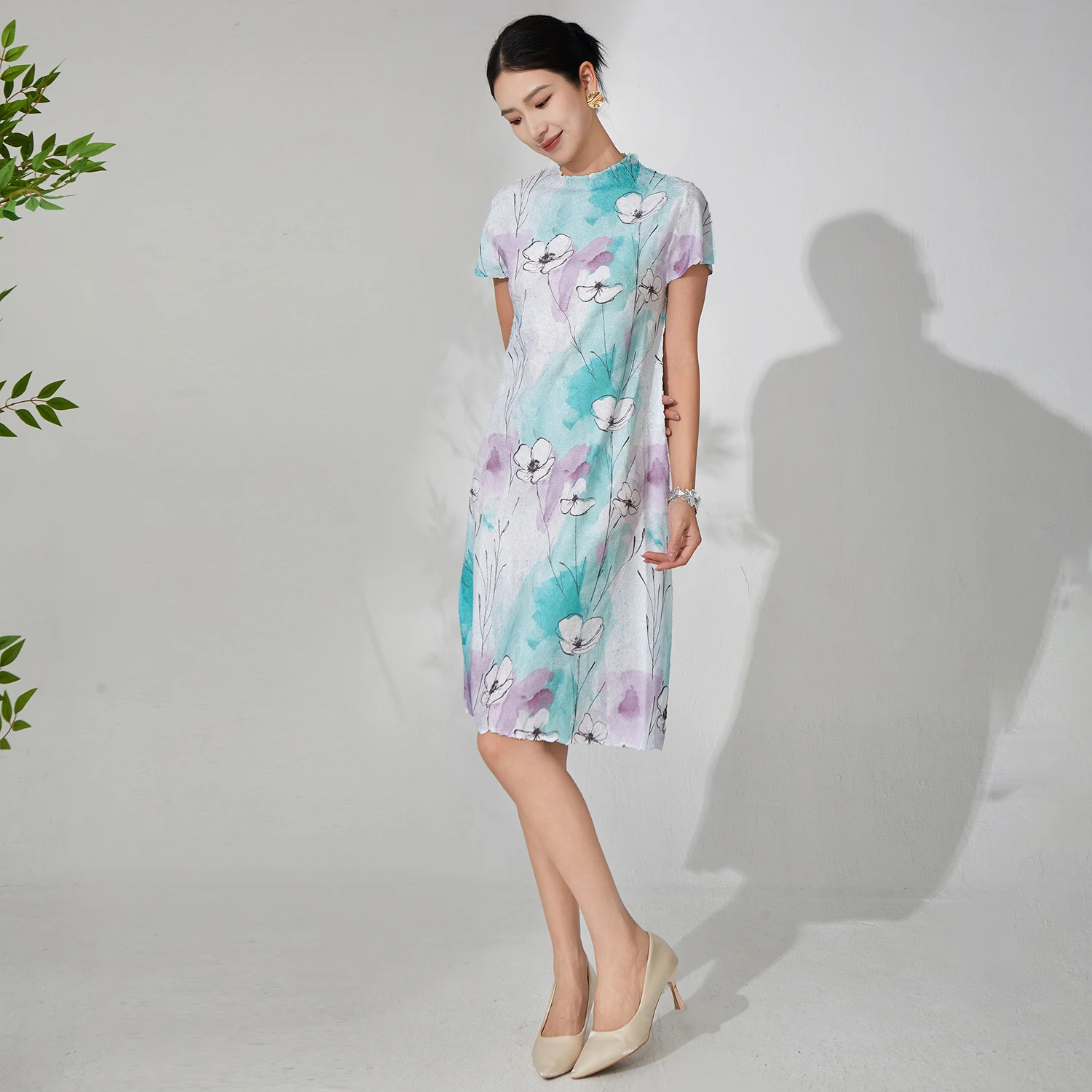 Grace in Every Fold Women's Designer Dress Summer Short Sleeve Dress Free Size Miyake Pleated Dress