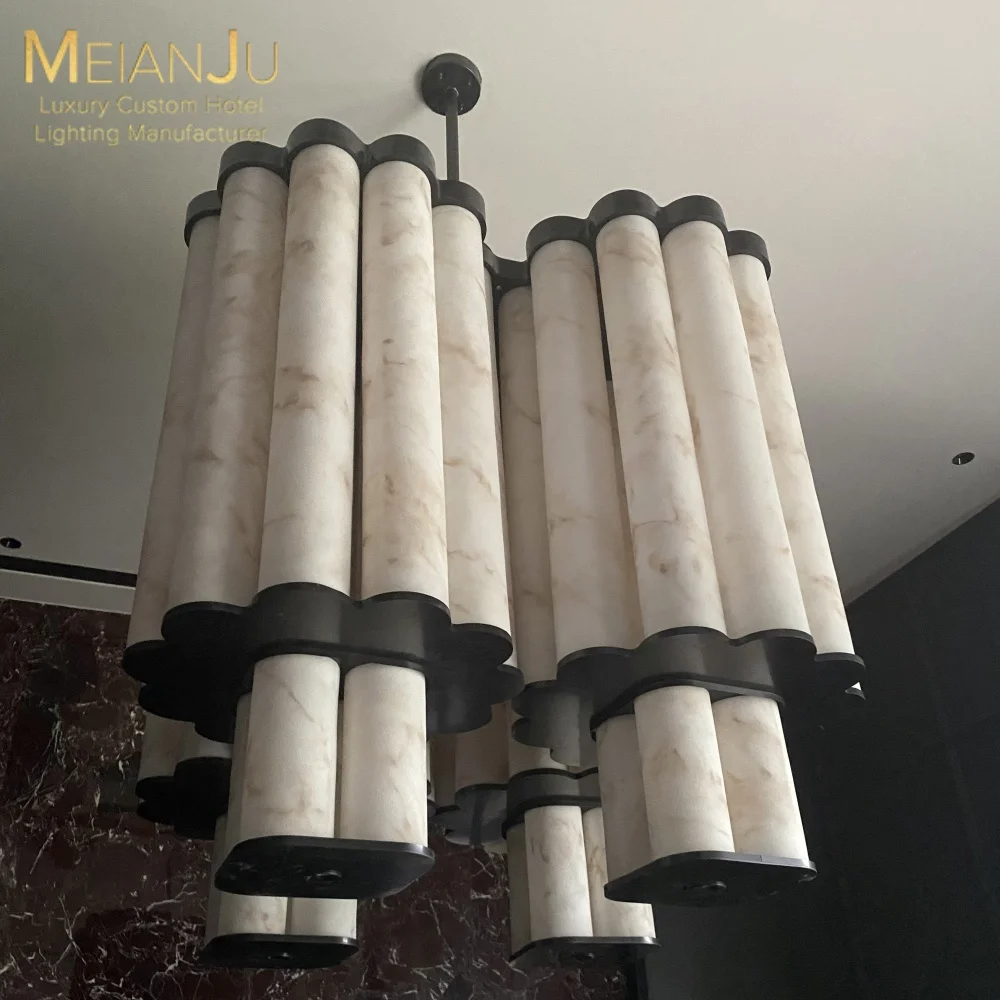 Zhongshan Customizable Multi-Color LED Pendant Light Ceiling Lamp Premium Stainless Steel Veined Marble Chandelier Hotel 5-Year