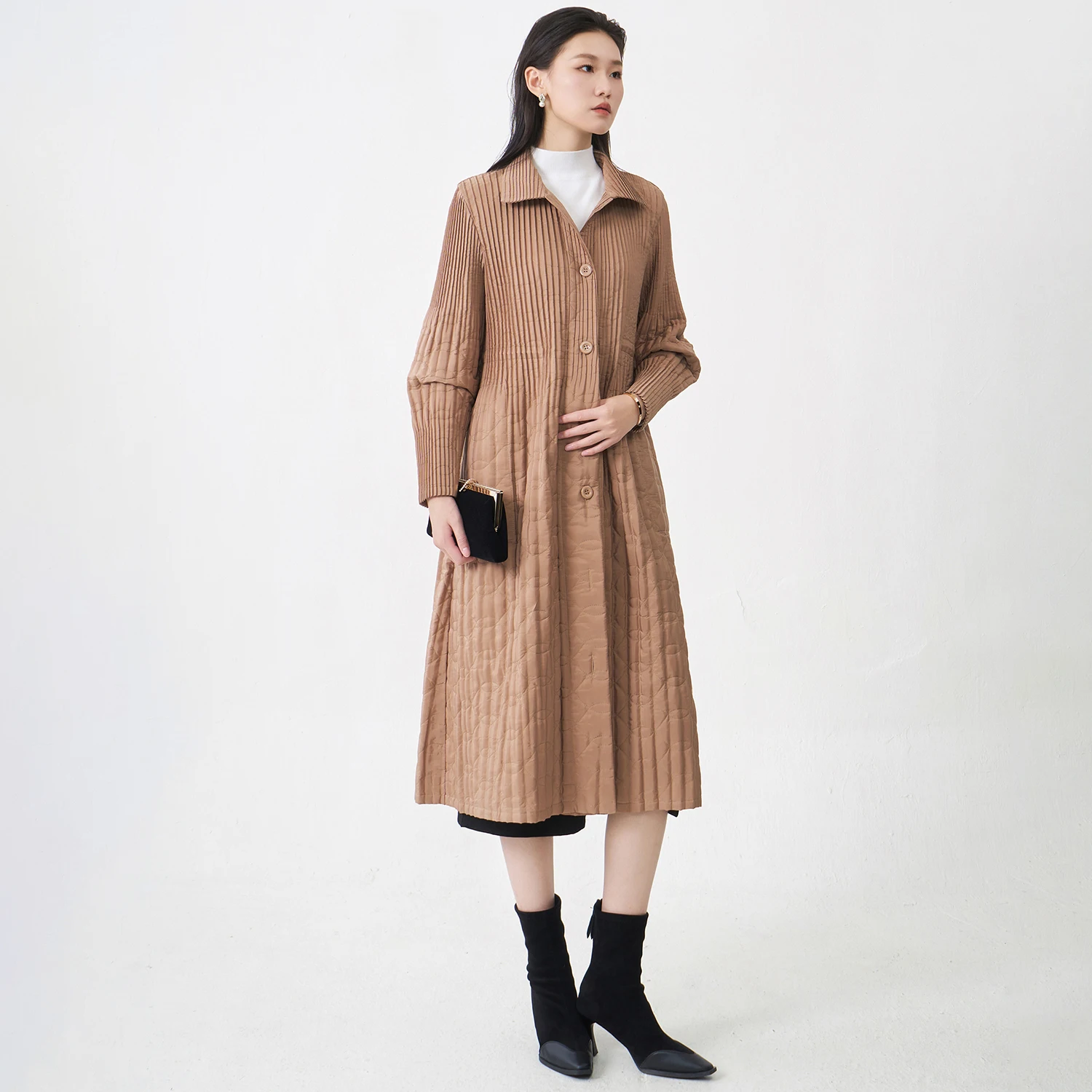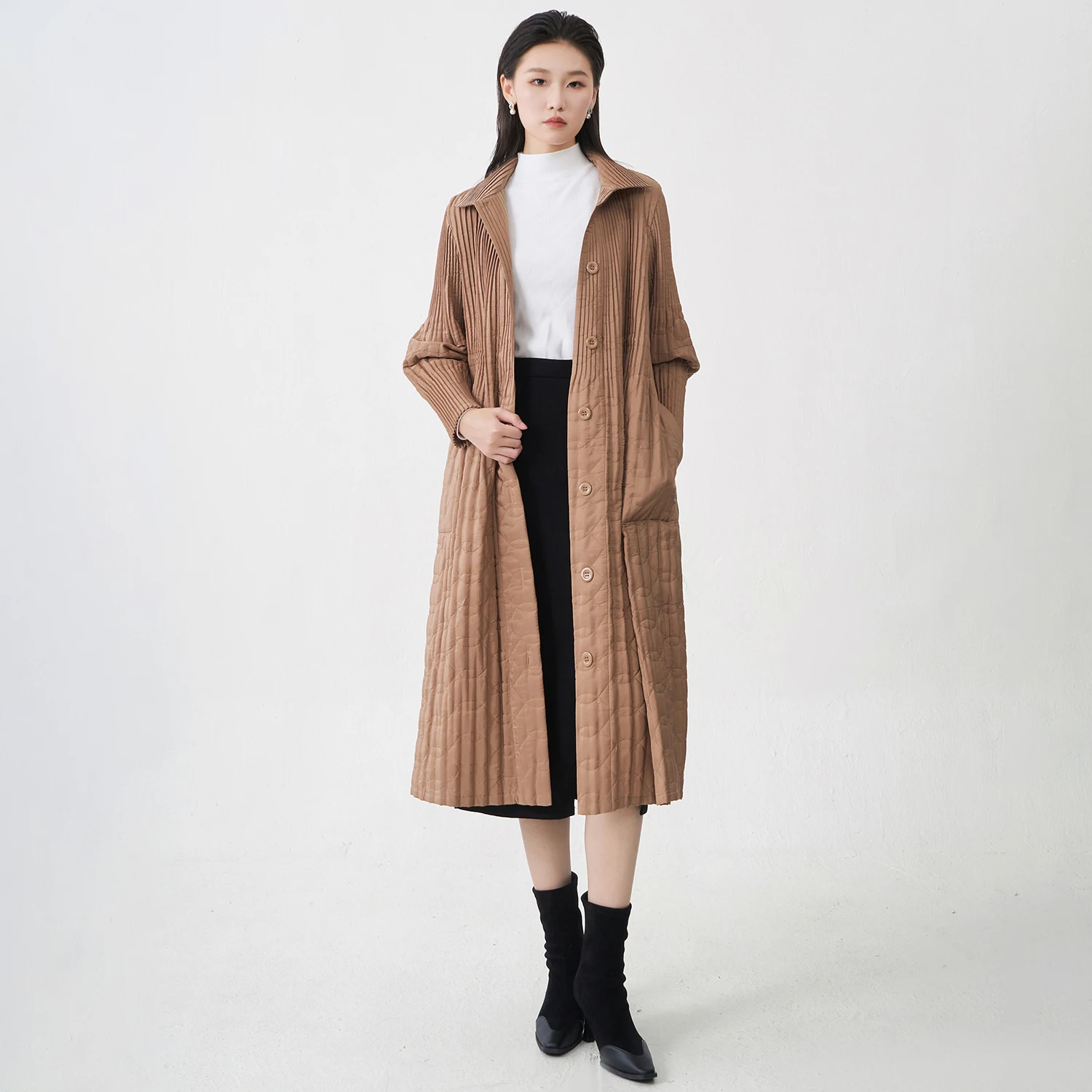 Miyake Pleated Cotton Coat 2025 Winter Korean Version Loose Mid-length Cotton Coat High Quality Women's Fashion Coat