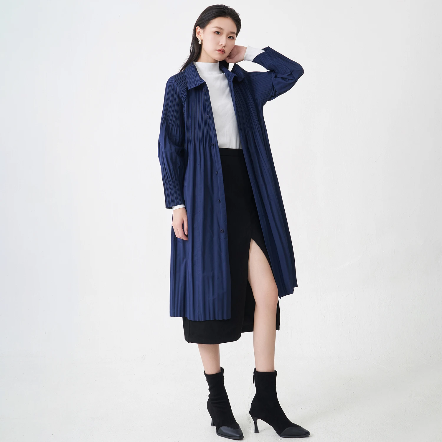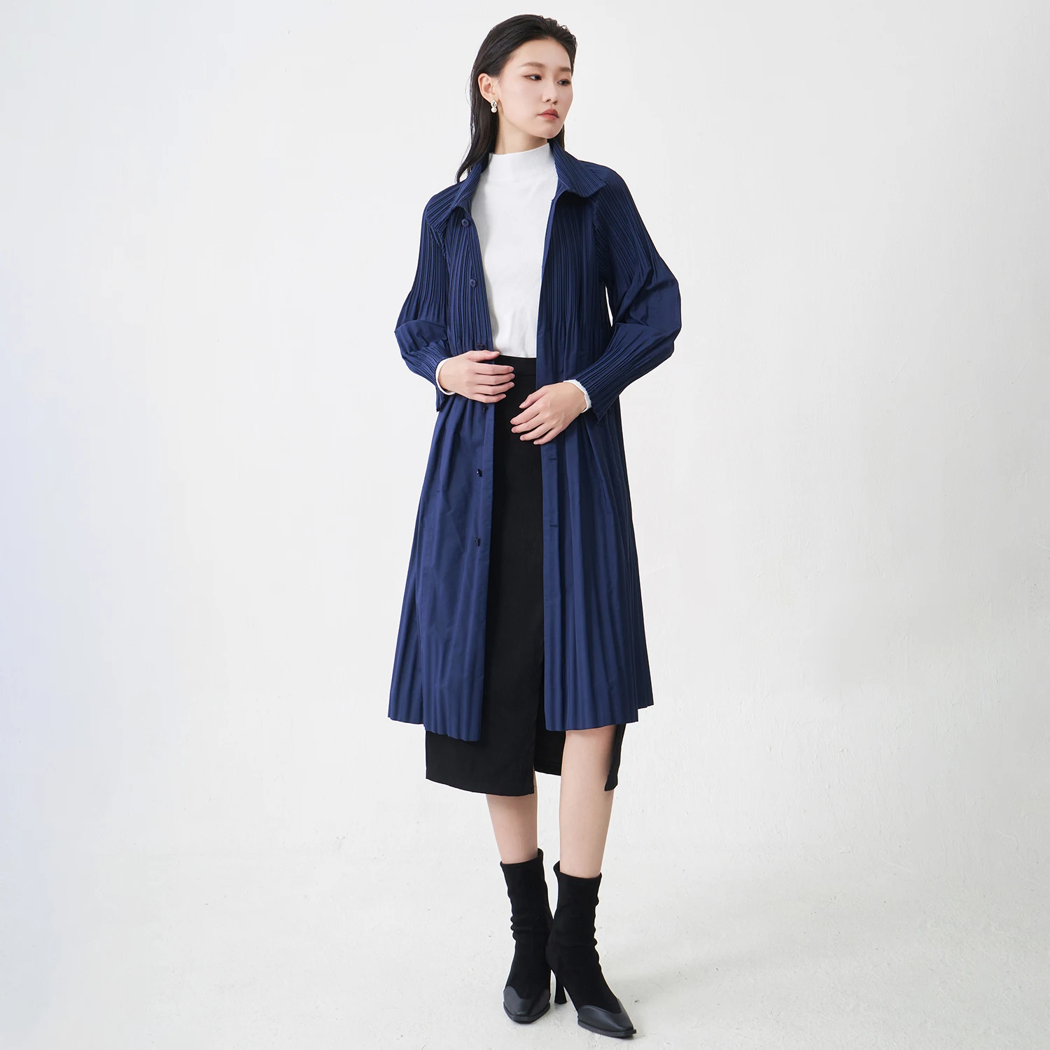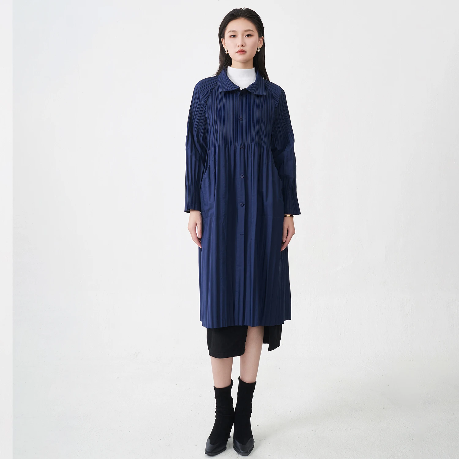 Miyake Pleated Windbreaker 2025 Autumn and Winter Solid Color Lapel Loose Temperament Coat Jacket Ladies Elegant Coat