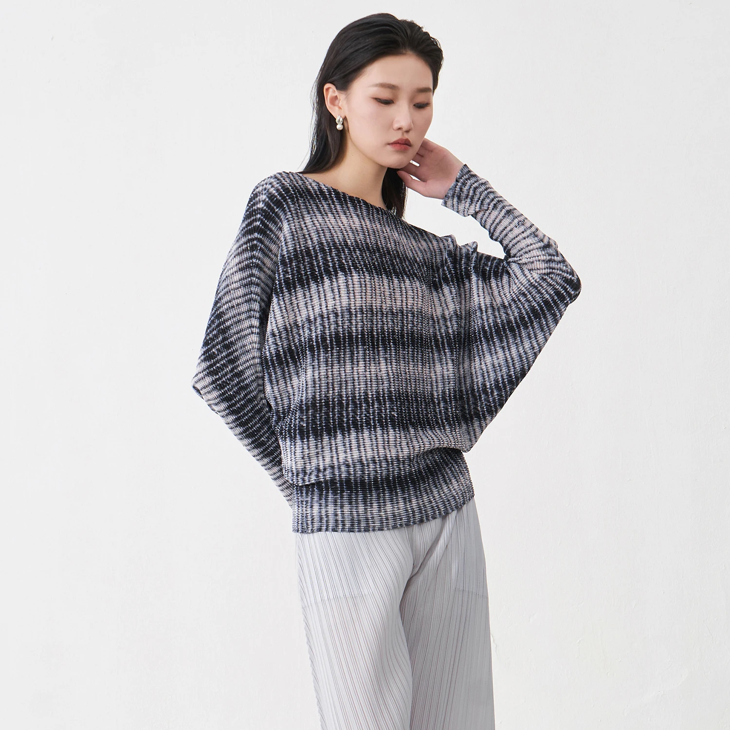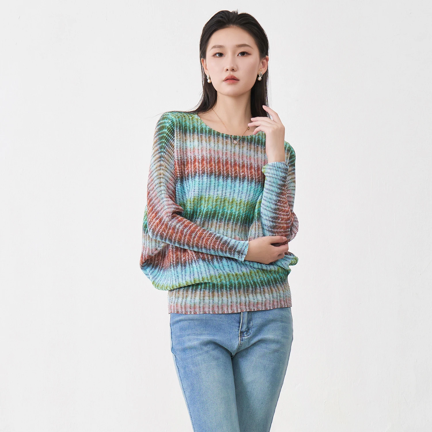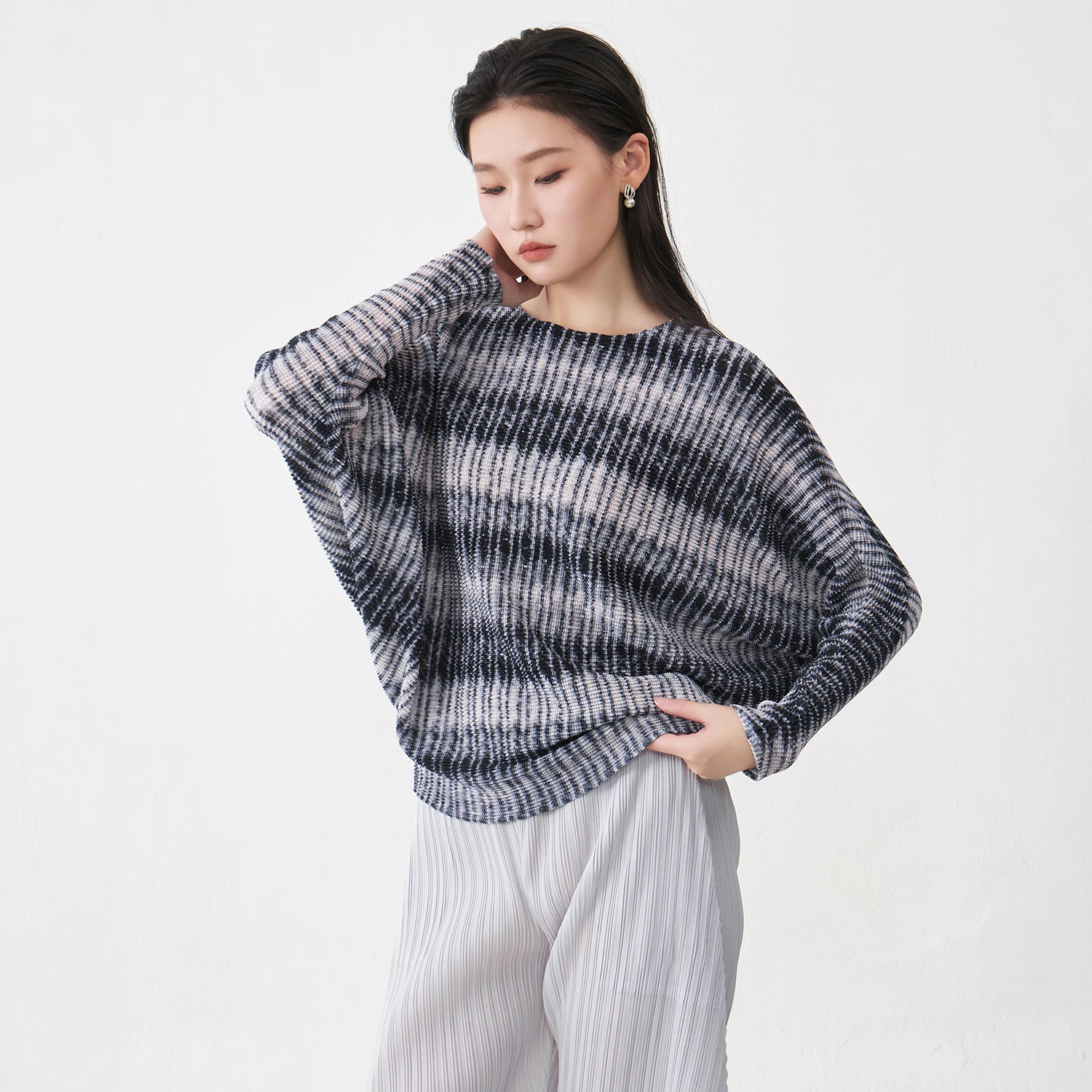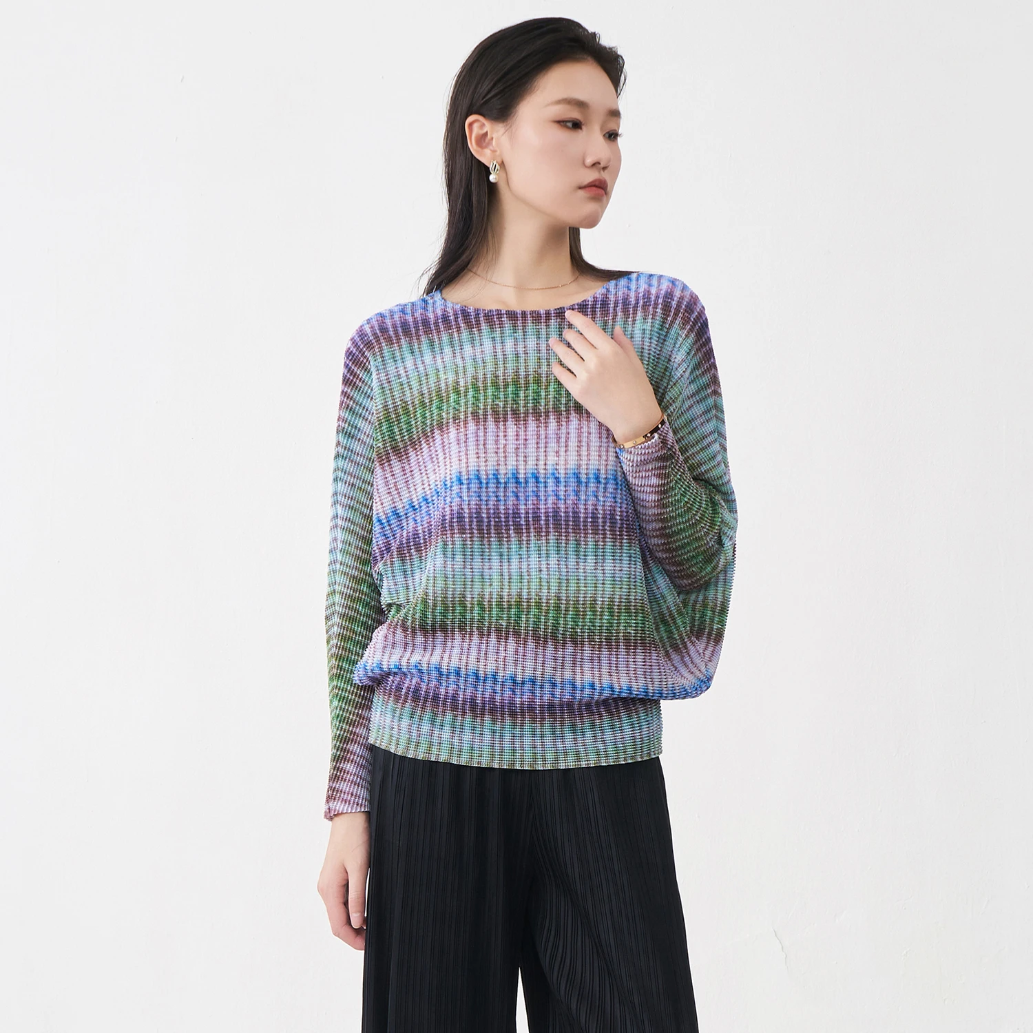 Quality Wholesale Fast Delivery Women's Batwing Sleeve Top Design Loose Casual T-shirt Pleated Print Fashion Top