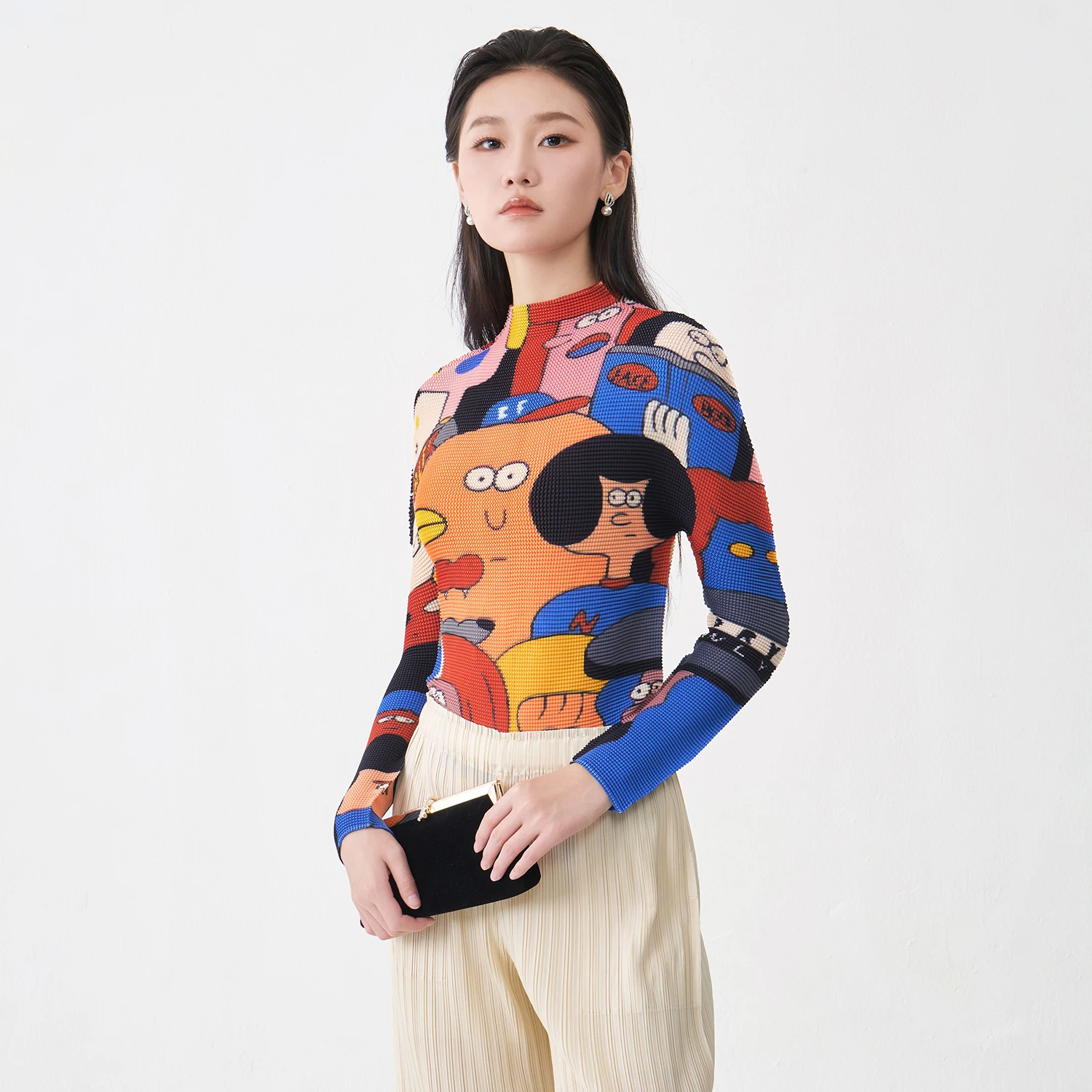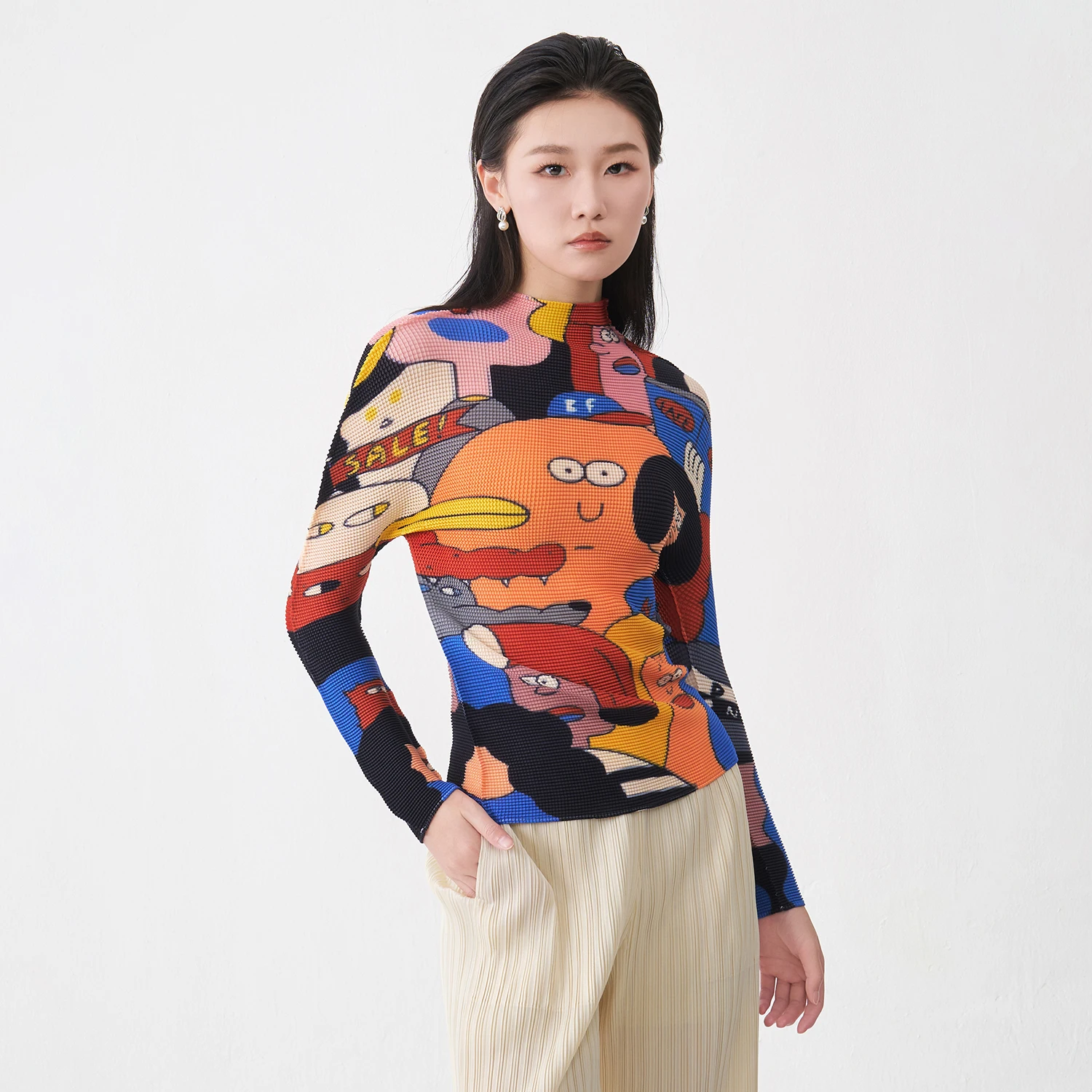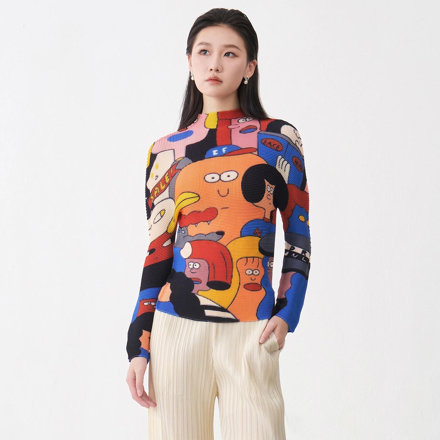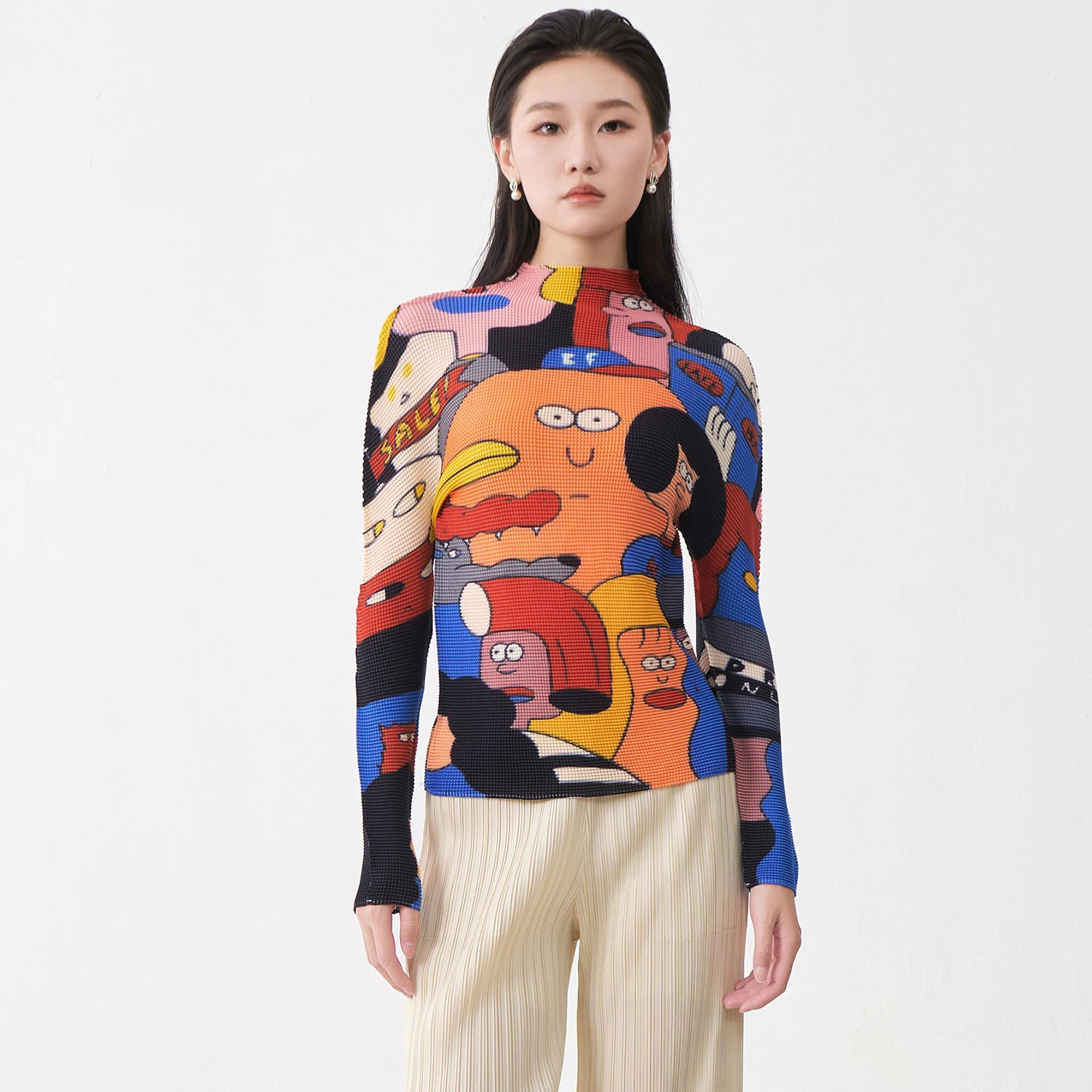 Miyake Pleated Top Latest Women's Fashion T-shirt Stretch Pleated Printed Shirt Loose Casual Top Factory Direct