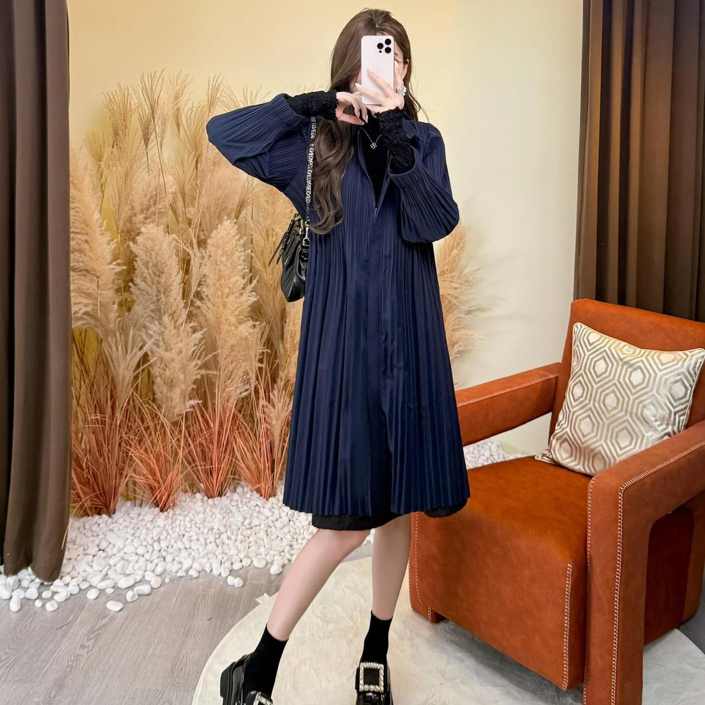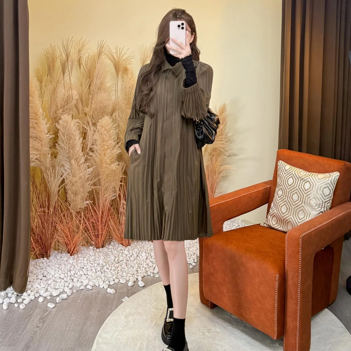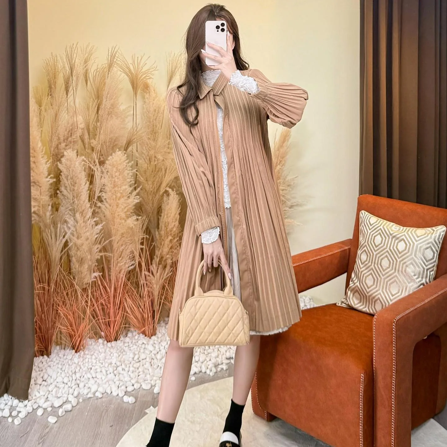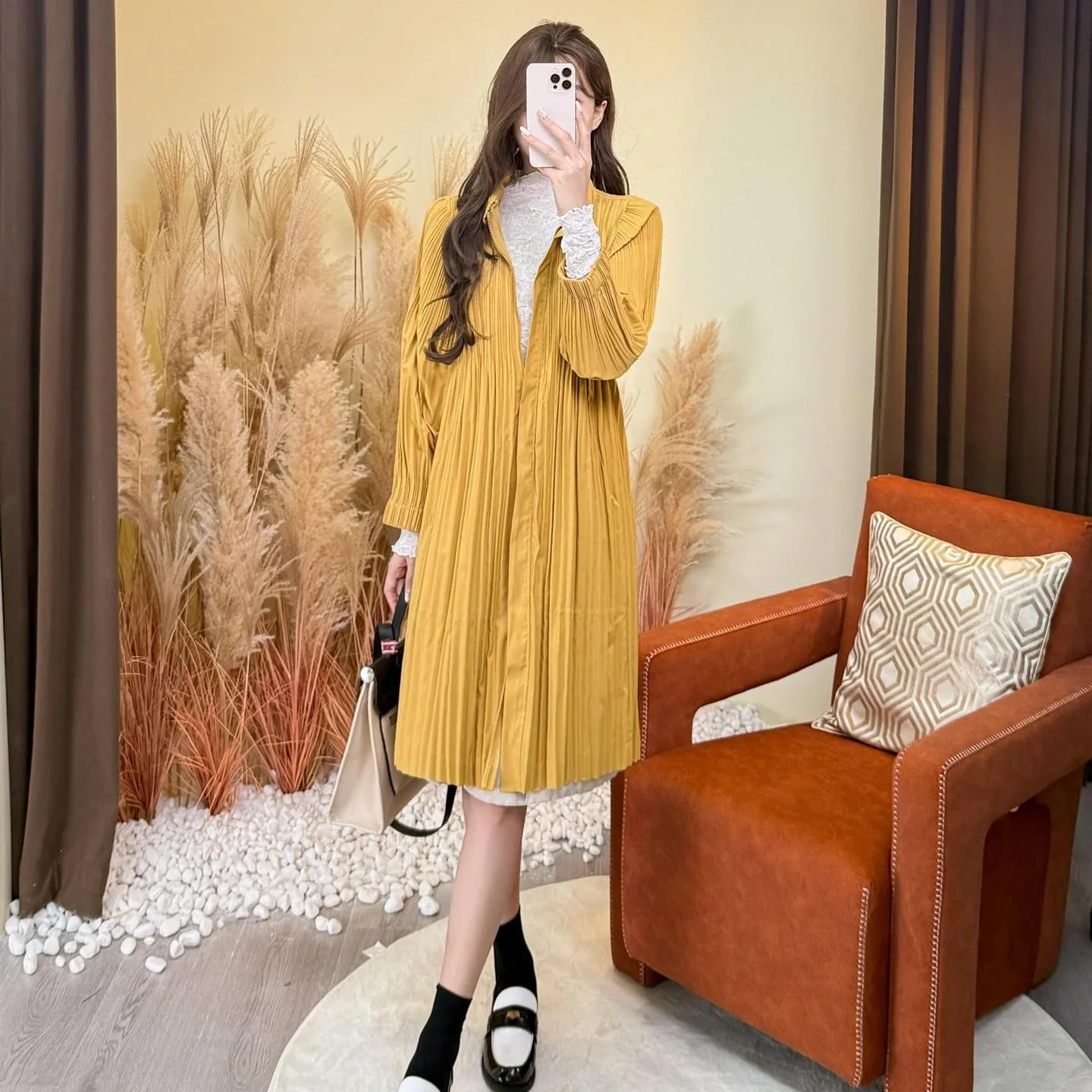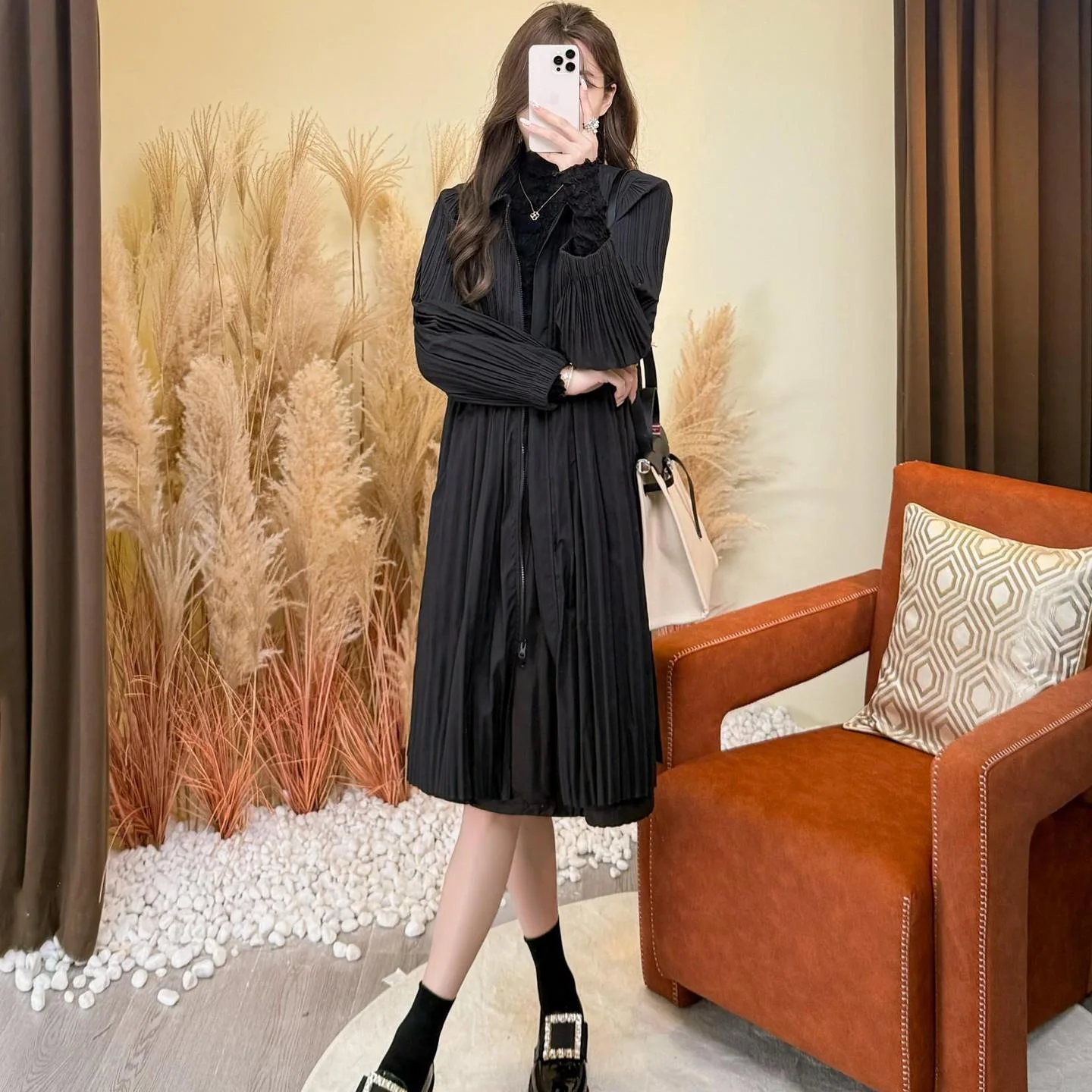 Miyake Basic Windbreaker Jacket 2025 Autumn and Winter New Loose Casual Mid-length Coat Ladies Elegant Jacket
