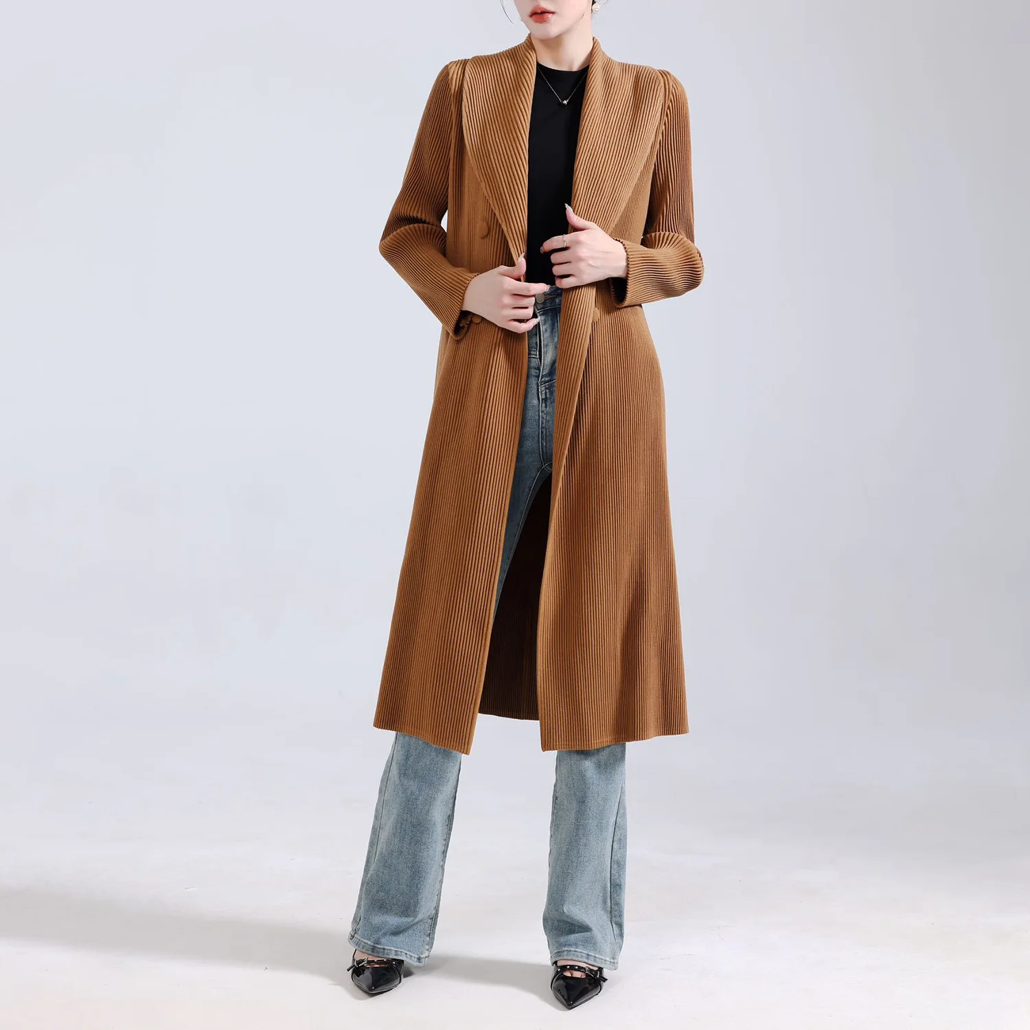 2025 Autumn and Winter New Miyake Pleated Coat Loose Casual Jacket High Quality Women's Elegant Coat Polyester Fabric